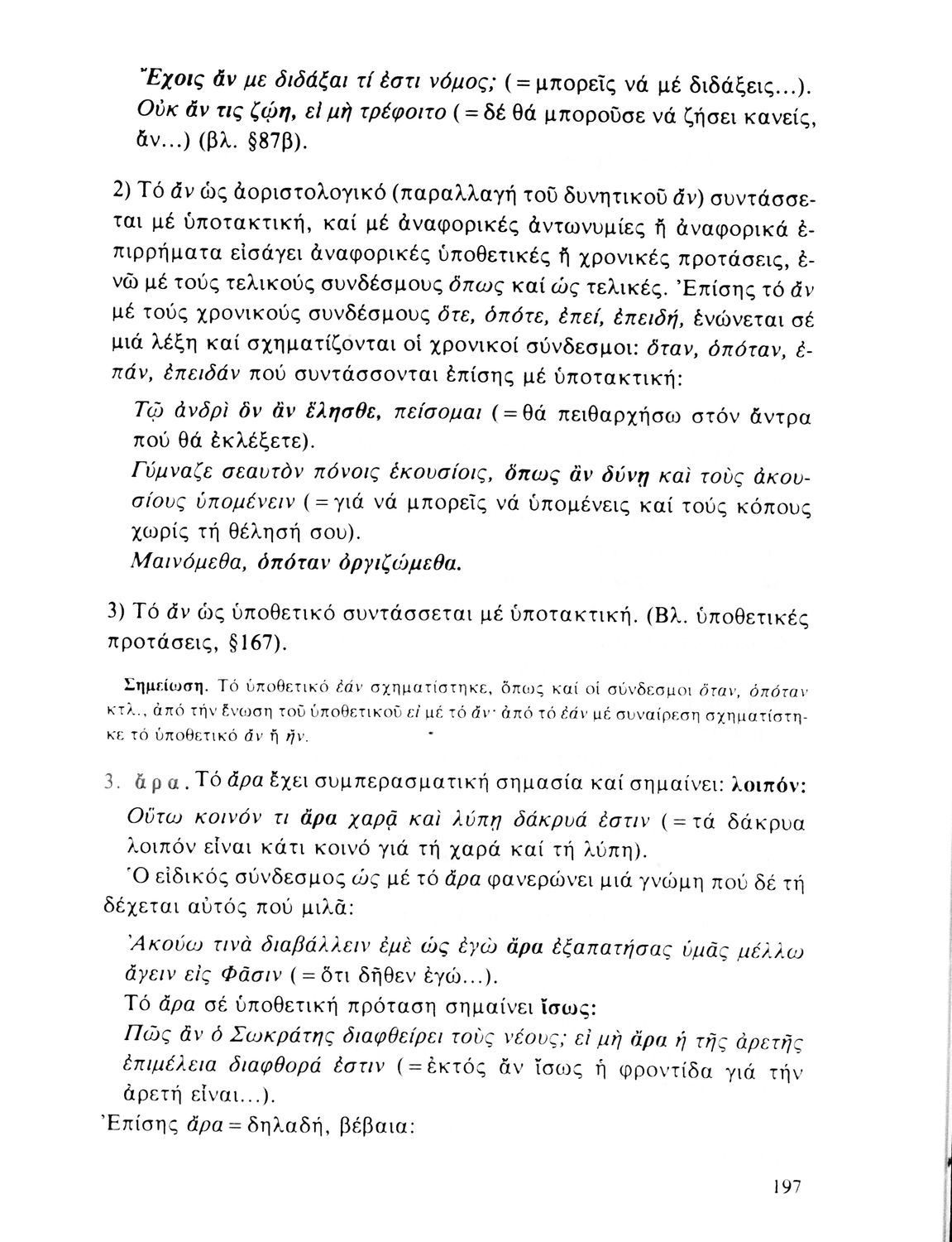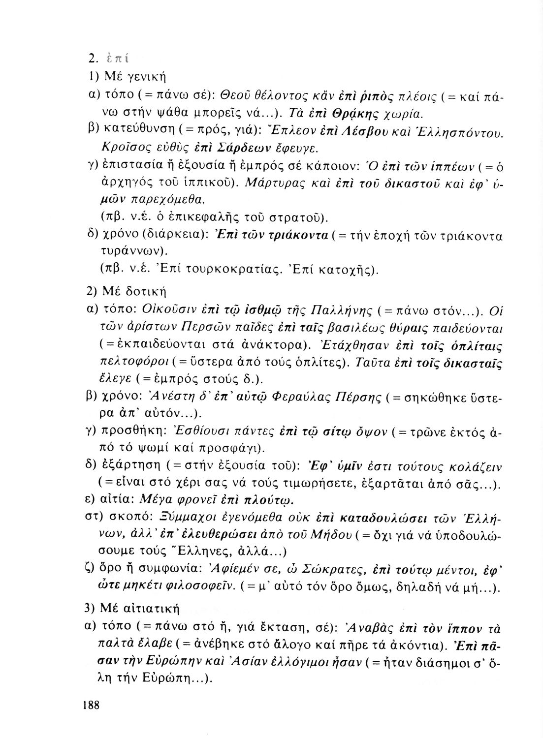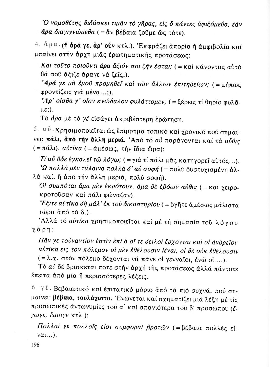 Σχολικό εγχειρίδιο Αρχαίων Ελληνικών Α', Β', και Γ' Γυμνασίου που περιέχει τους κανόνες γραμματικής και είναι χωρισμένο σε φθογγολογικό, τυπολογικό και ετυμολογικό μέρος. Περιέχει και κατάλογο ανωμάλων ρημάτων.