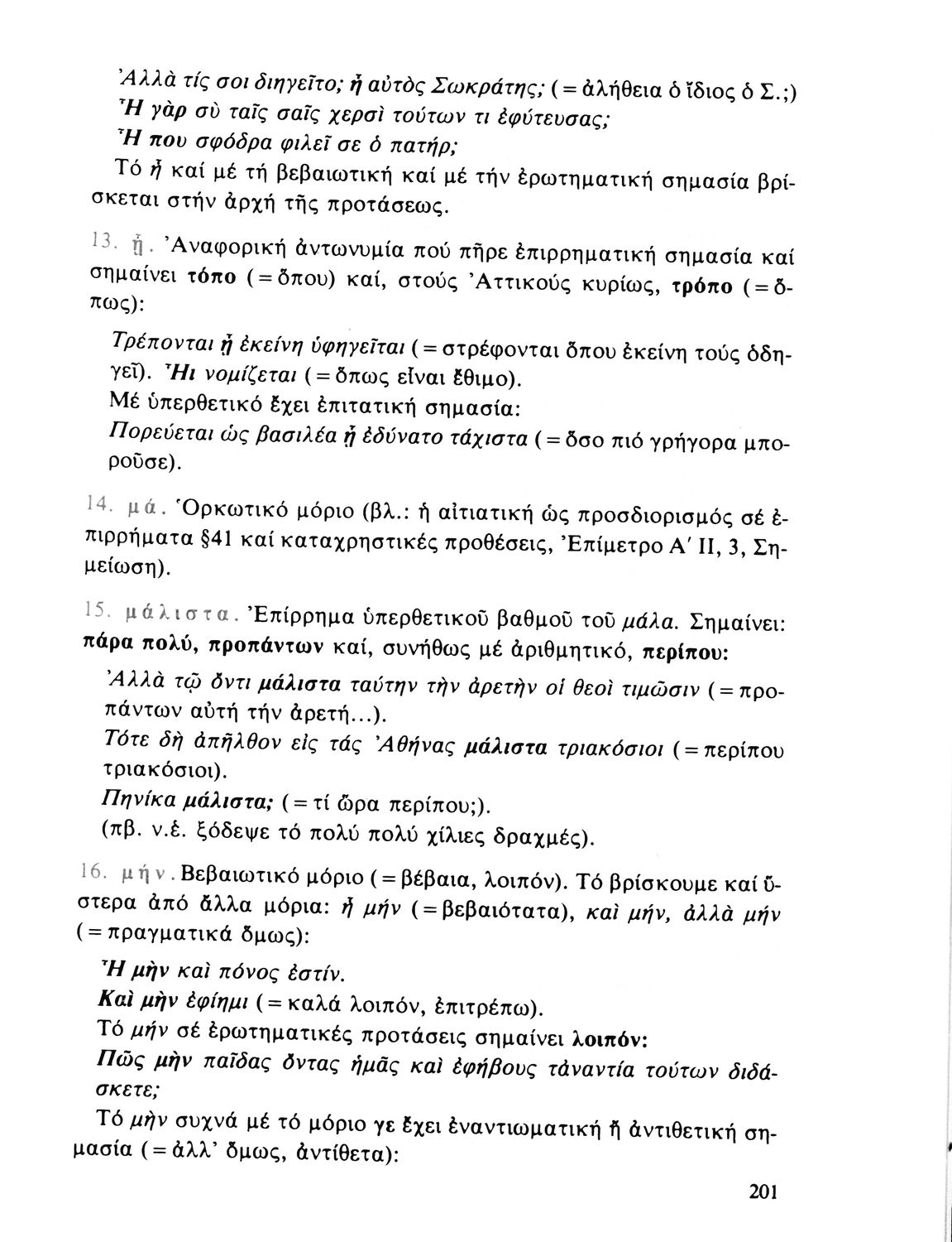 Σχολικό εγχειρίδιο Αρχαίων Ελληνικών Γ΄ Γυμνασίου και Α΄ Λυκείου που εξετάζει τα μέρη του λόγου και την σύνταξή τους.