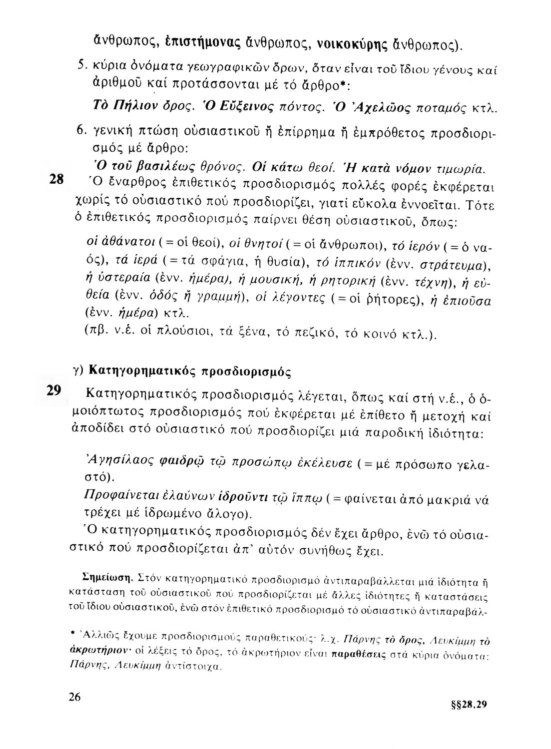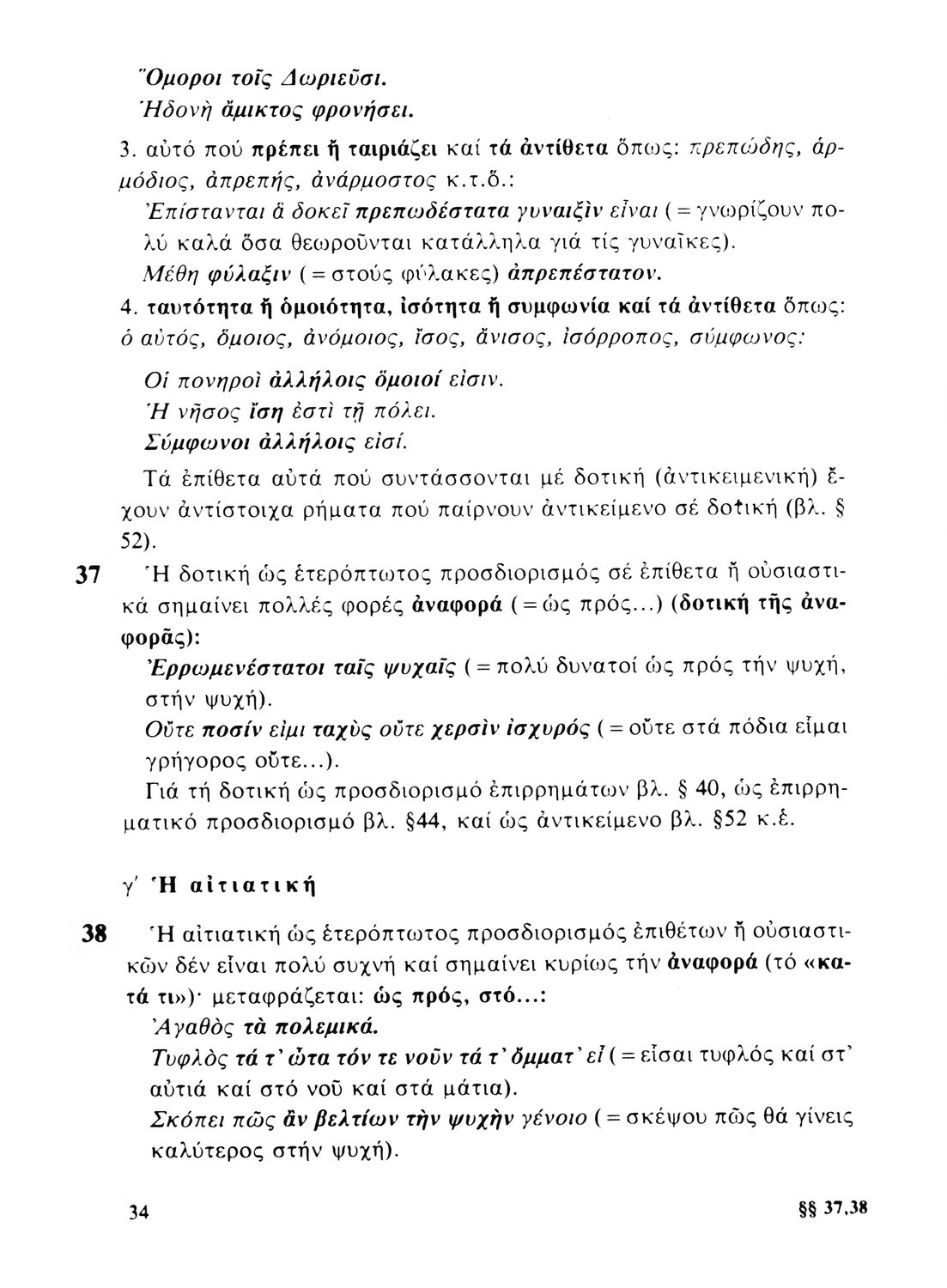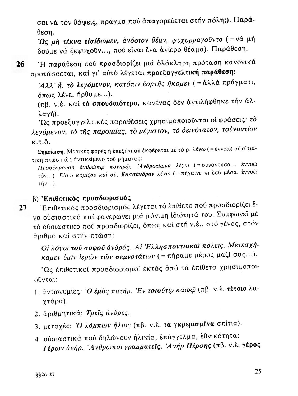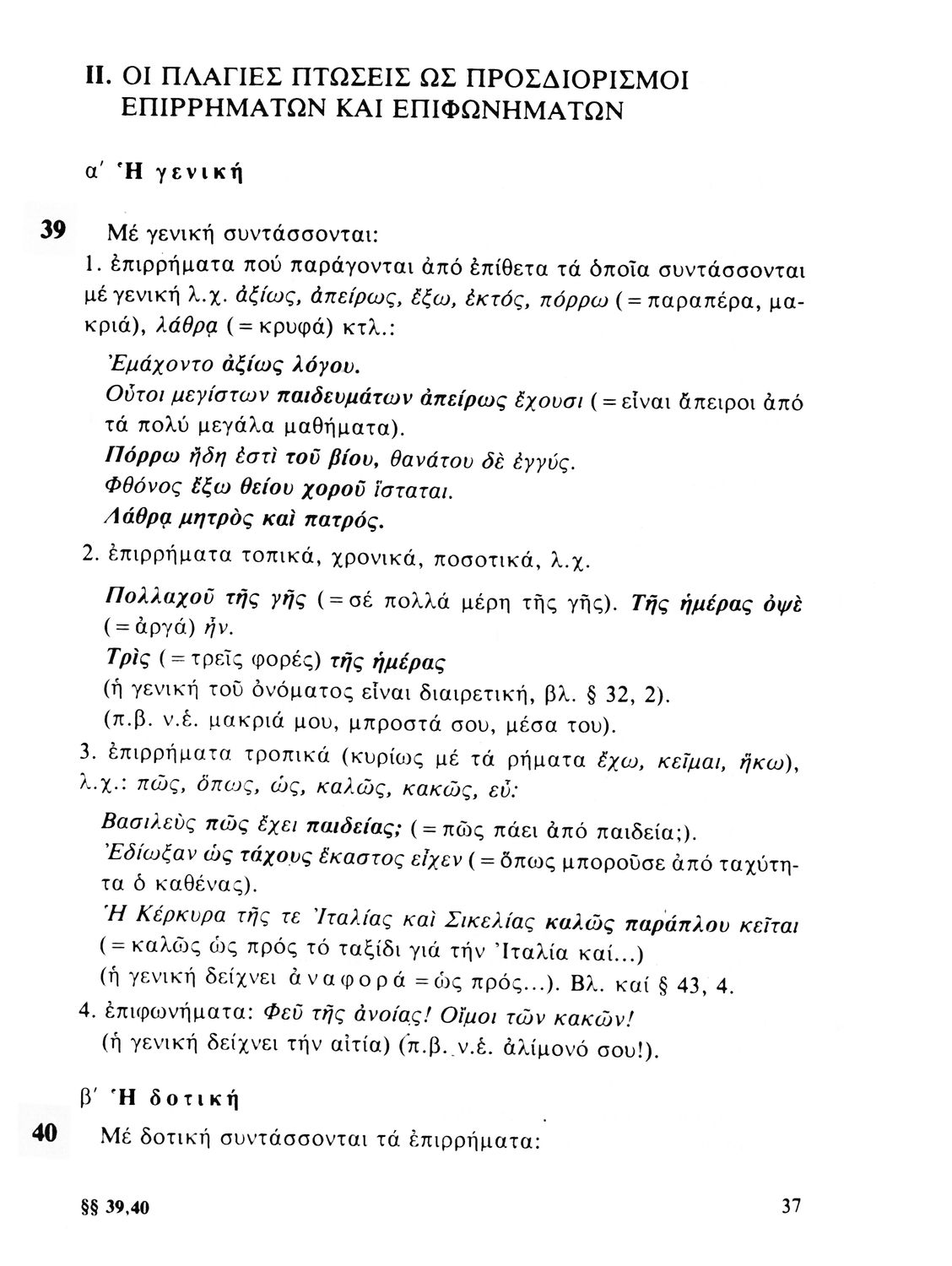 Σχολικό εγχειρίδιο Αρχαίων Ελληνικών Γ΄ Γυμνασίου και Α΄ Λυκείου που εξετάζει τα μέρη του λόγου και την σύνταξή τους.