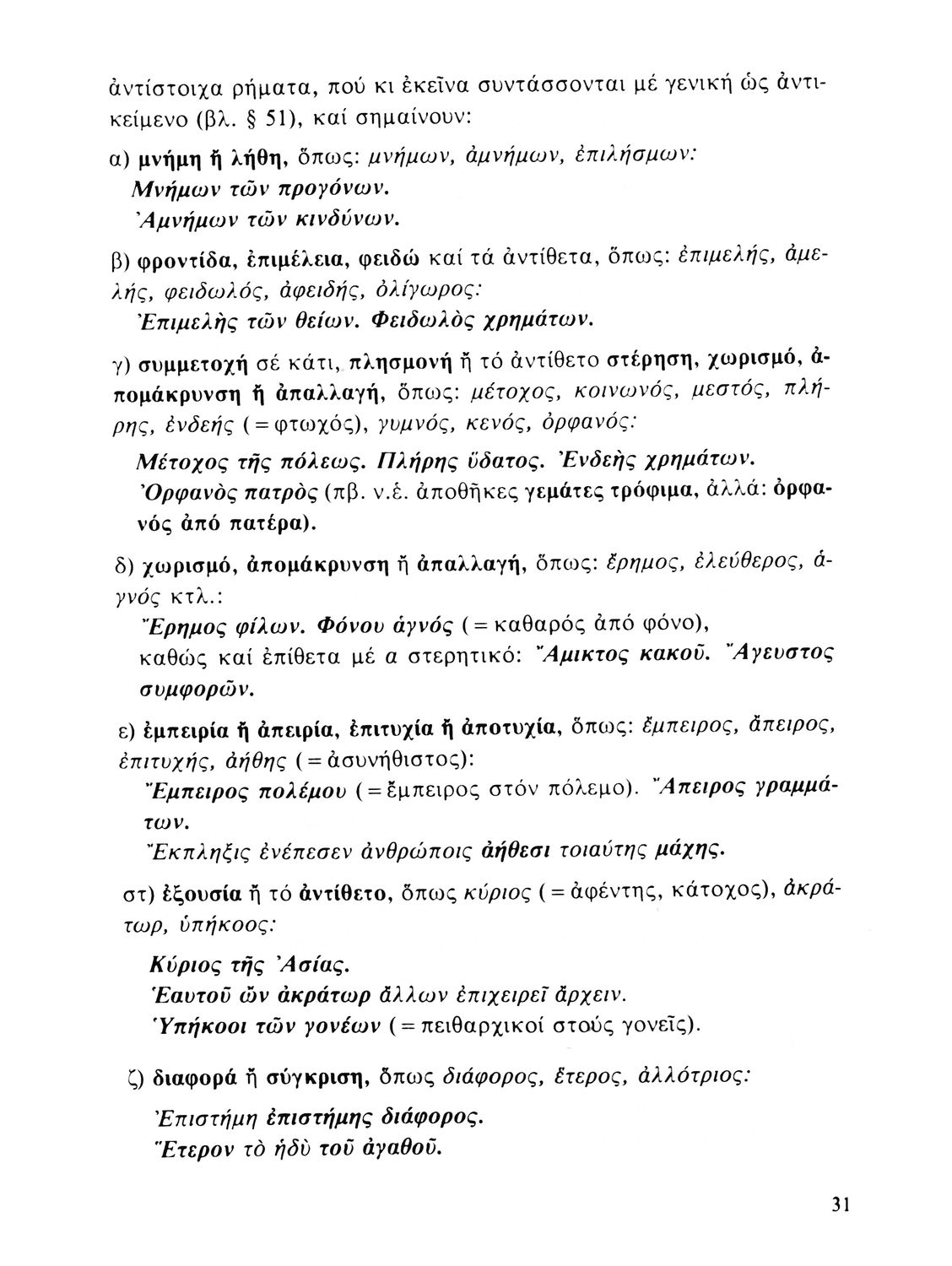 Σχολικό εγχειρίδιο Αρχαίων Ελληνικών Α', Β', και Γ' Γυμνασίου που περιέχει τους κανόνες γραμματικής και είναι χωρισμένο σε φθογγολογικό, τυπολογικό και ετυμολογικό μέρος. Περιέχει και κατάλογο ανωμάλων ρημάτων.