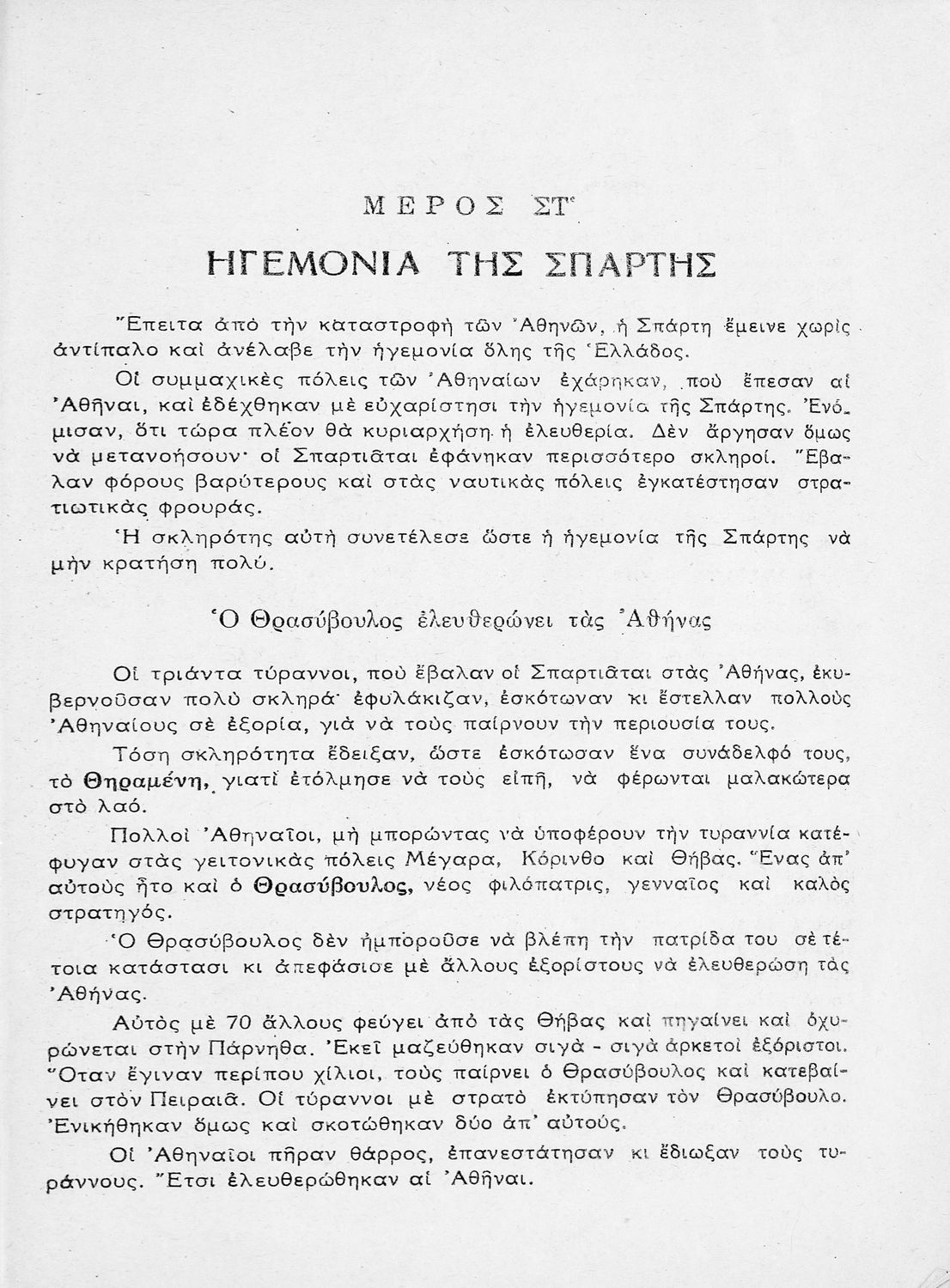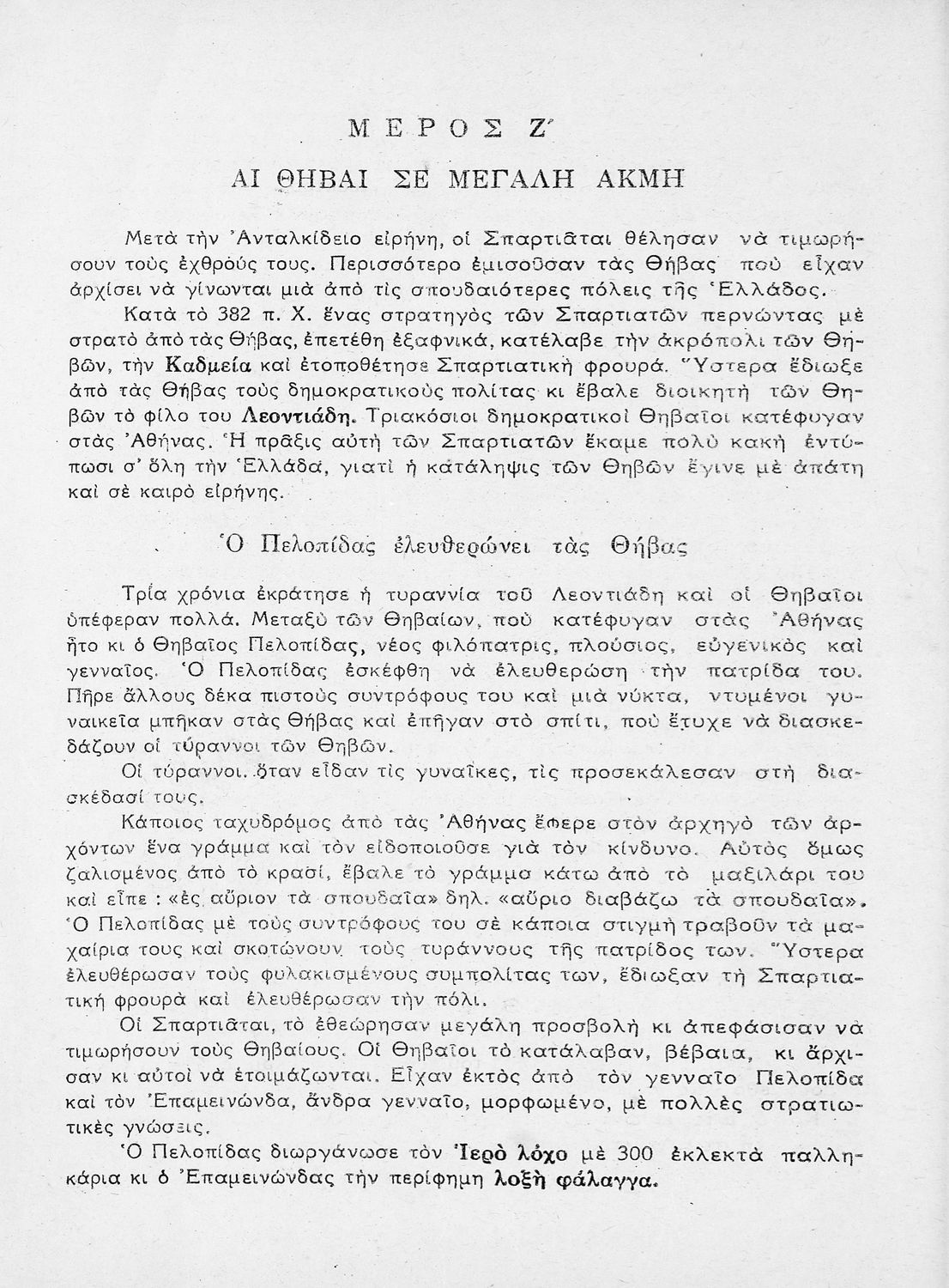 Μαθητικό βοήθημα Ιστορίας. Γ΄ και Δ΄ Δημοτικού Παρθεναγωγείου που καλύπτει το διάστημα από τους προϊστορικούς χρόνους ως τη μάχη της Μαντίνειας