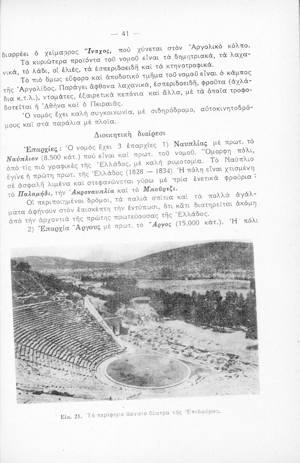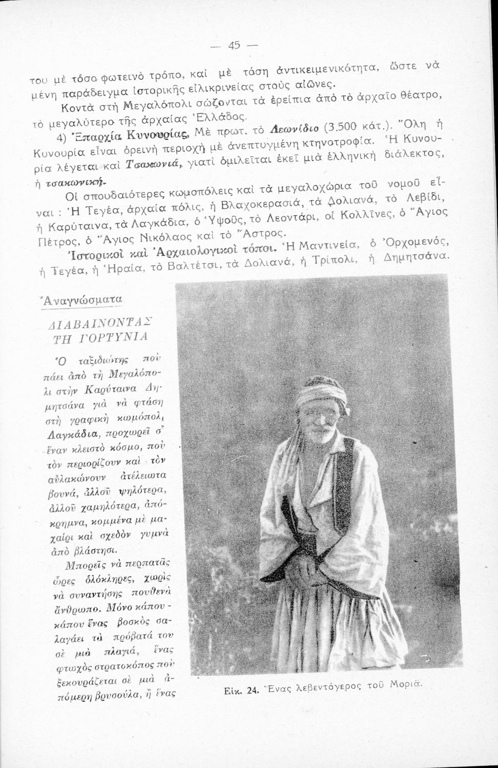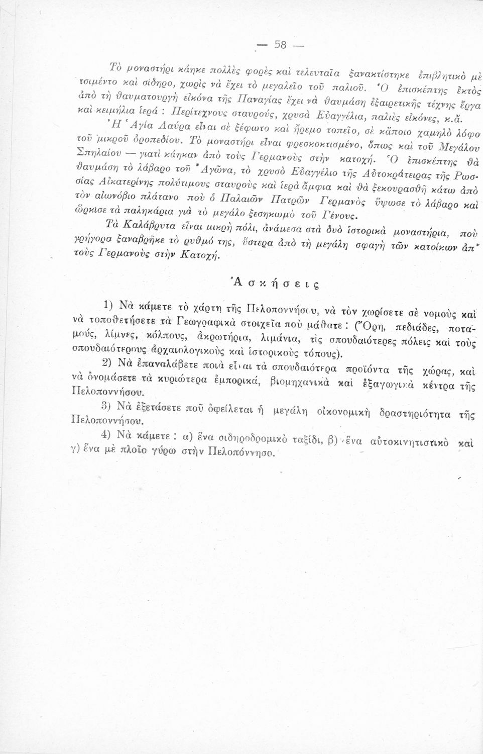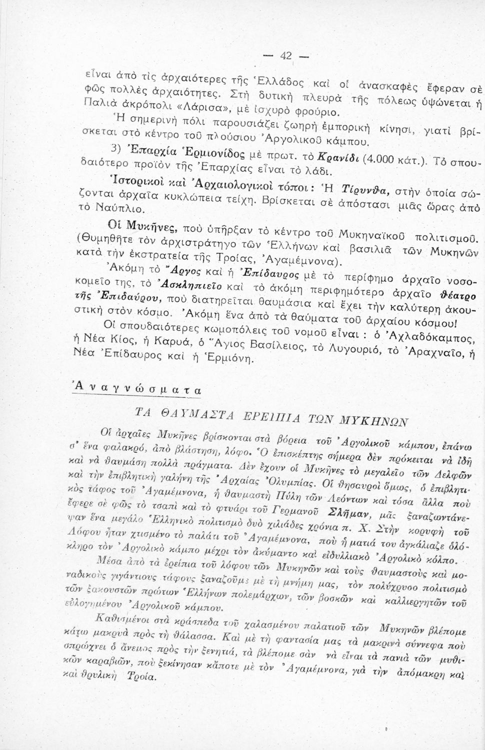 Σχολικό εγχειρίδιο Γεωγραφίας για τη Γ΄, Δ΄ Δημοτικού. Μελετά την Ελλάδα ανά γεωγραφικό νομό με πληροφορίες από το χάρτη της περιοχής και στοιχεία της ιστορίας και της οικονομικής ζωής.