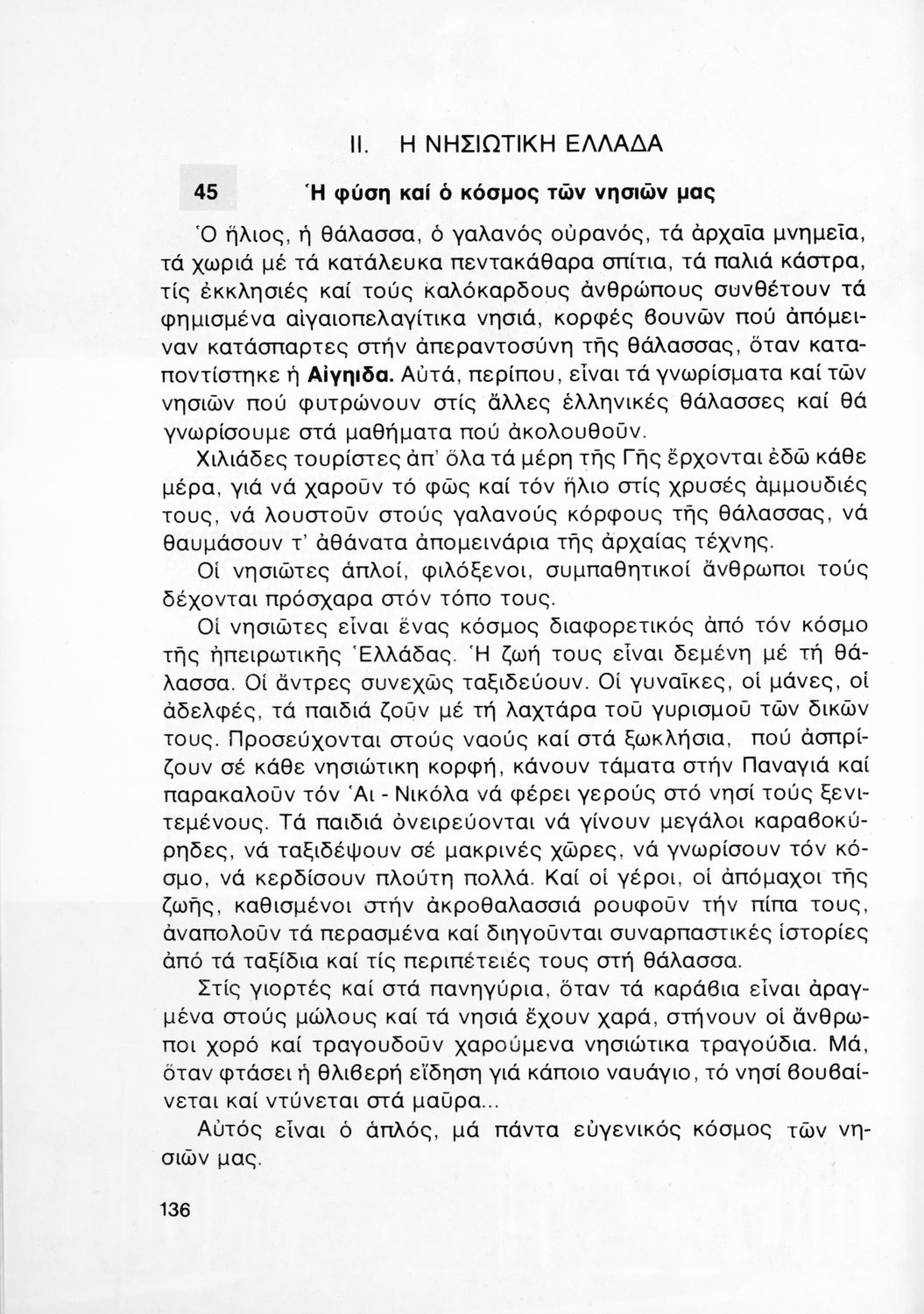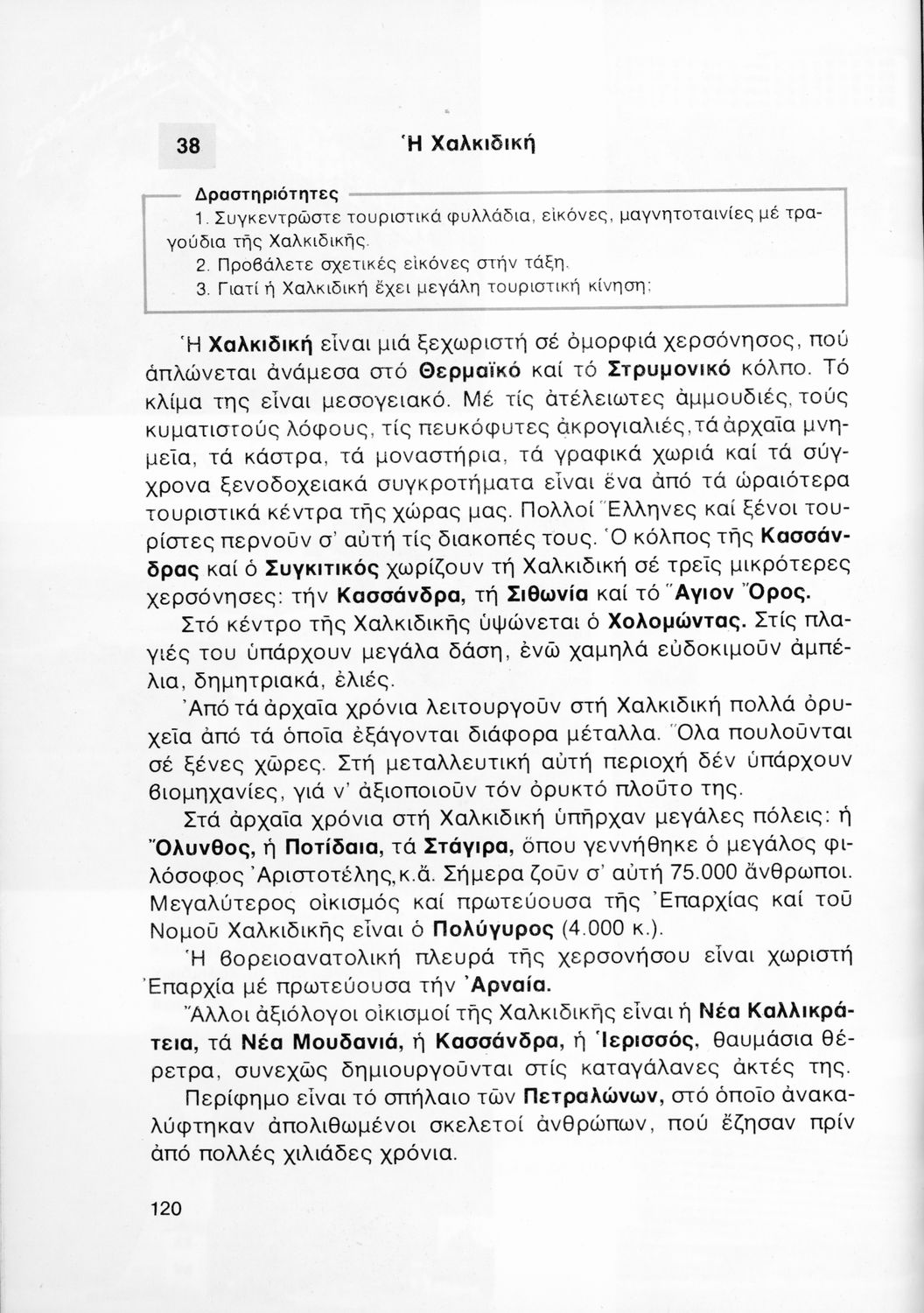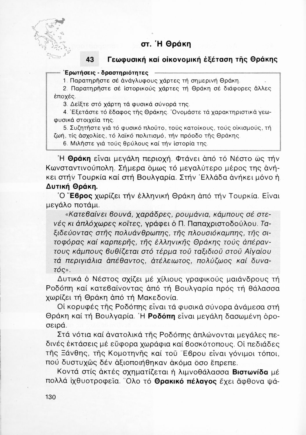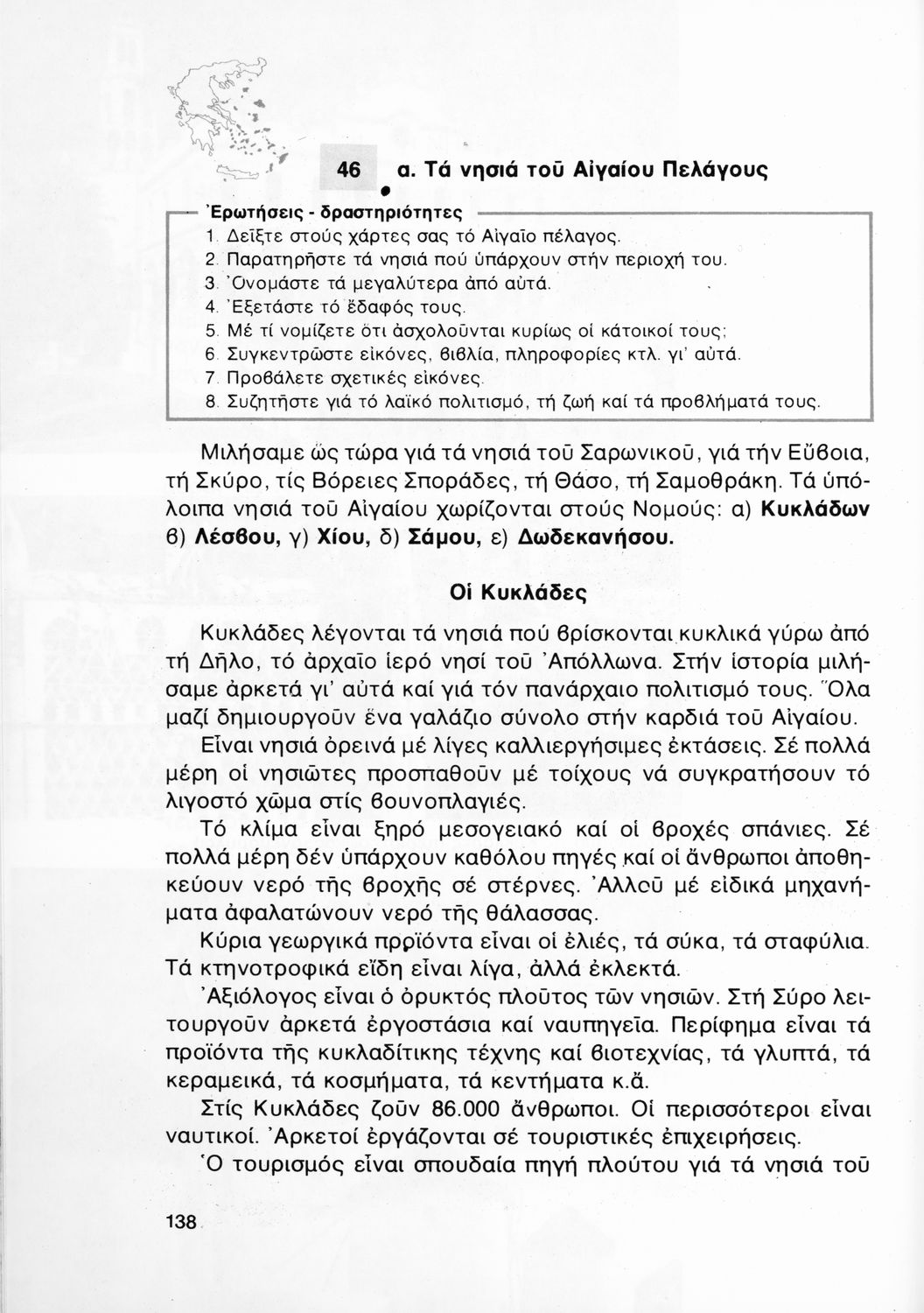 Σχολικό εγχειρίδιο Γεωγραφίας για την Δ΄ Δημοτικού που εξετάζει την Ελλάδα ανά γεωγραφικό διαμέρισμα από γεωφυσική, οικονομική και πολιτική άποψη.