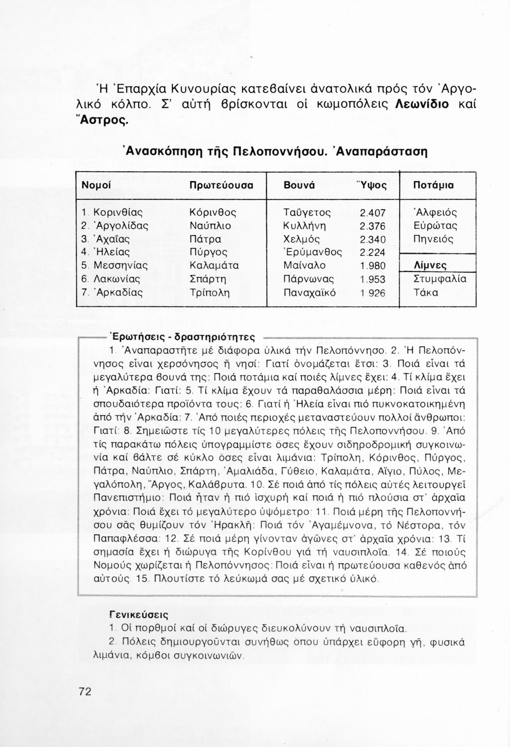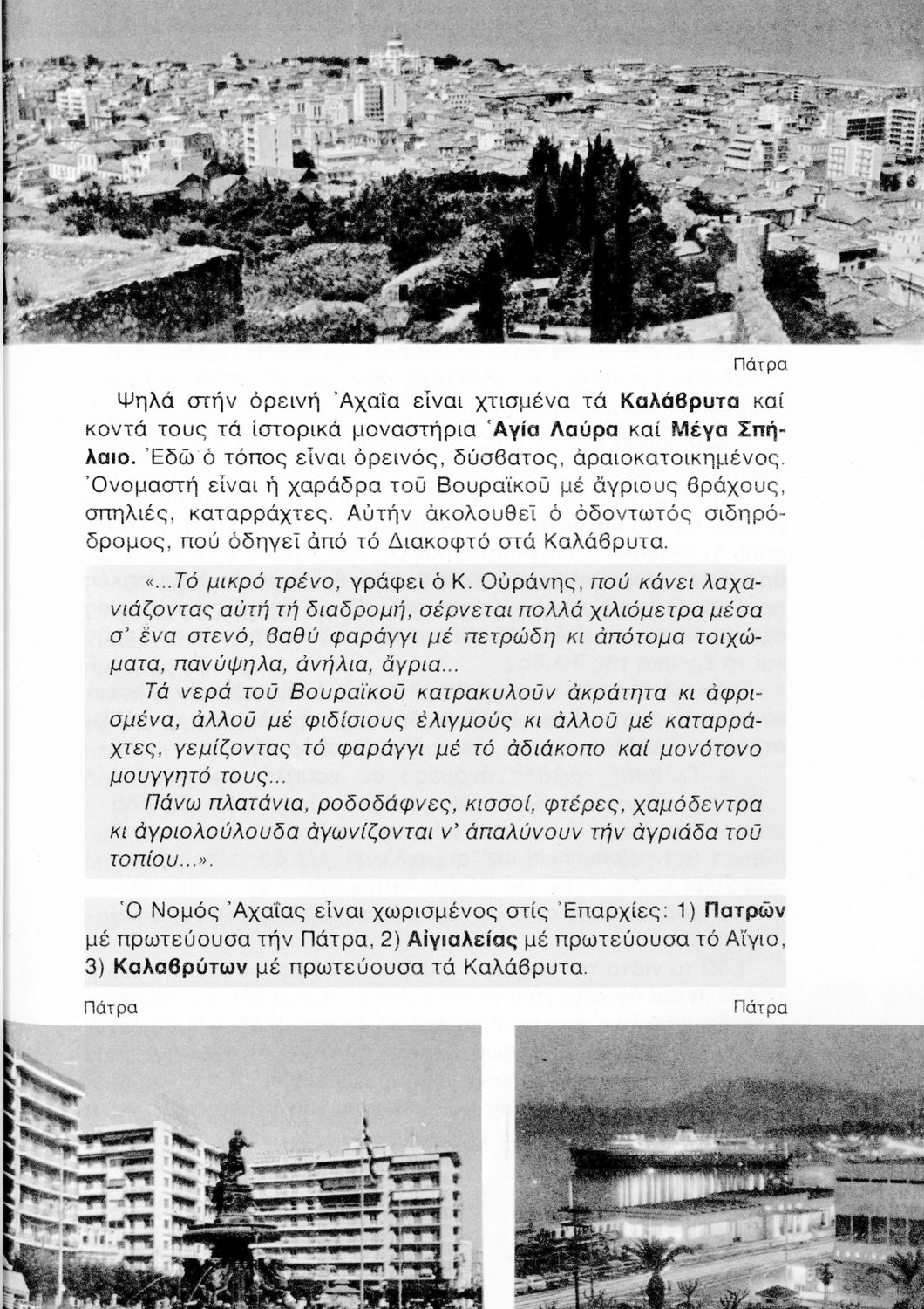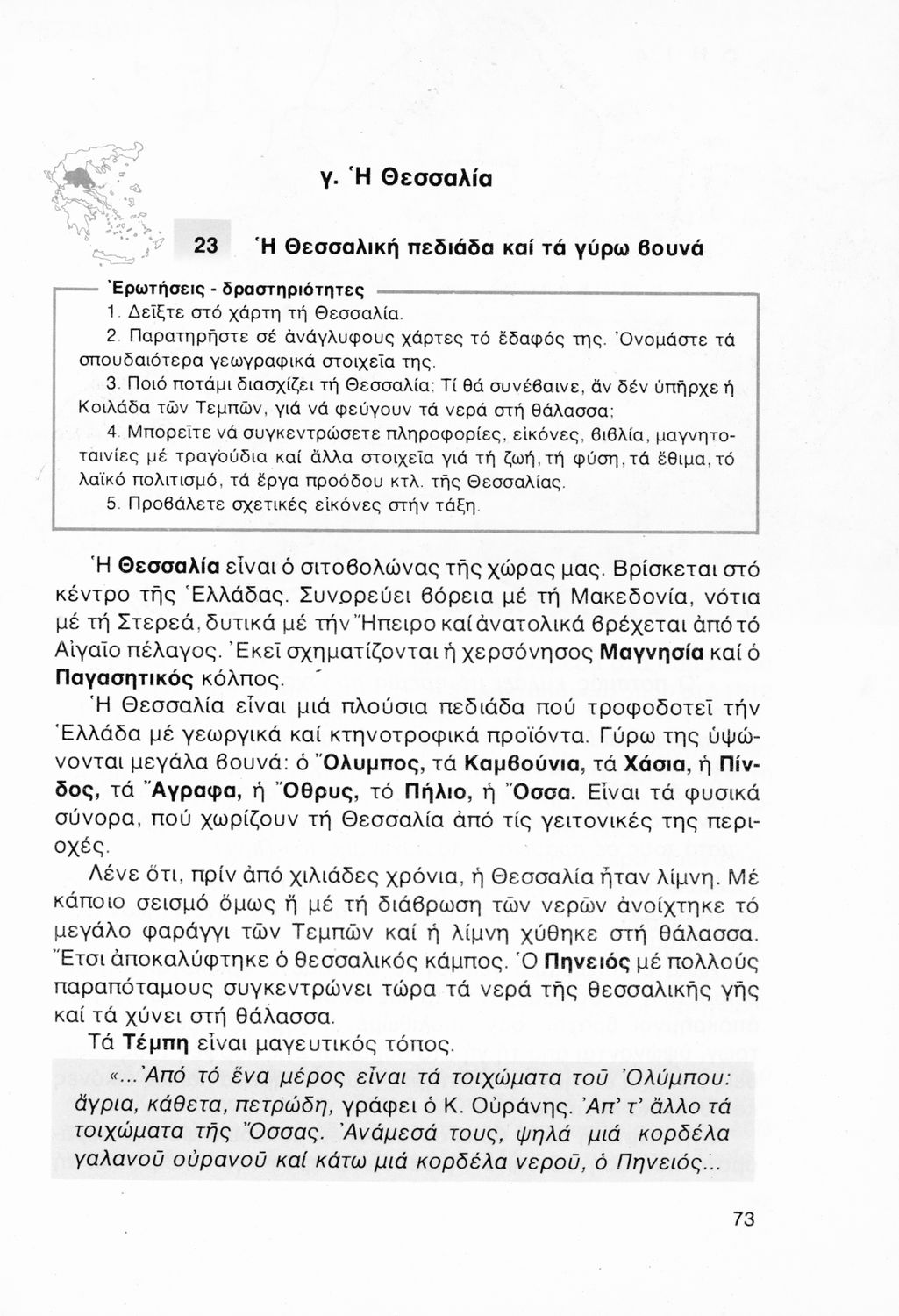Σχολικό εγχειρίδιο Γεωγραφίας για την Δ΄ Δημοτικού που εξετάζει την Ελλάδα ανά γεωγραφικό διαμέρισμα από γεωφυσική, οικονομική και πολιτική άποψη.