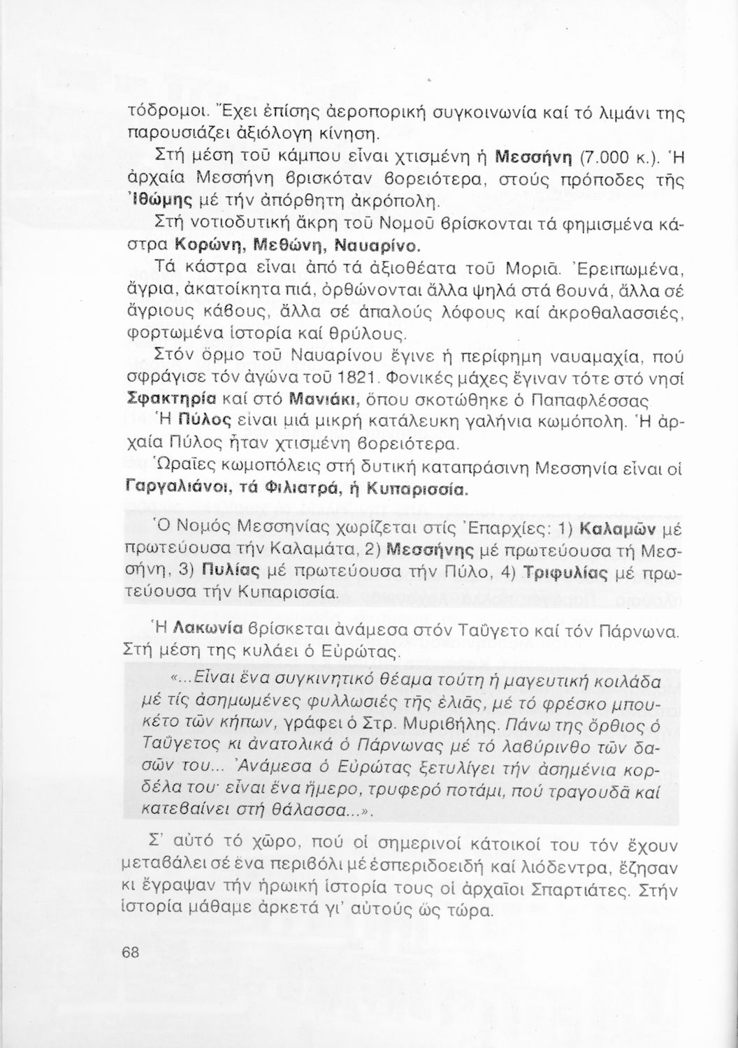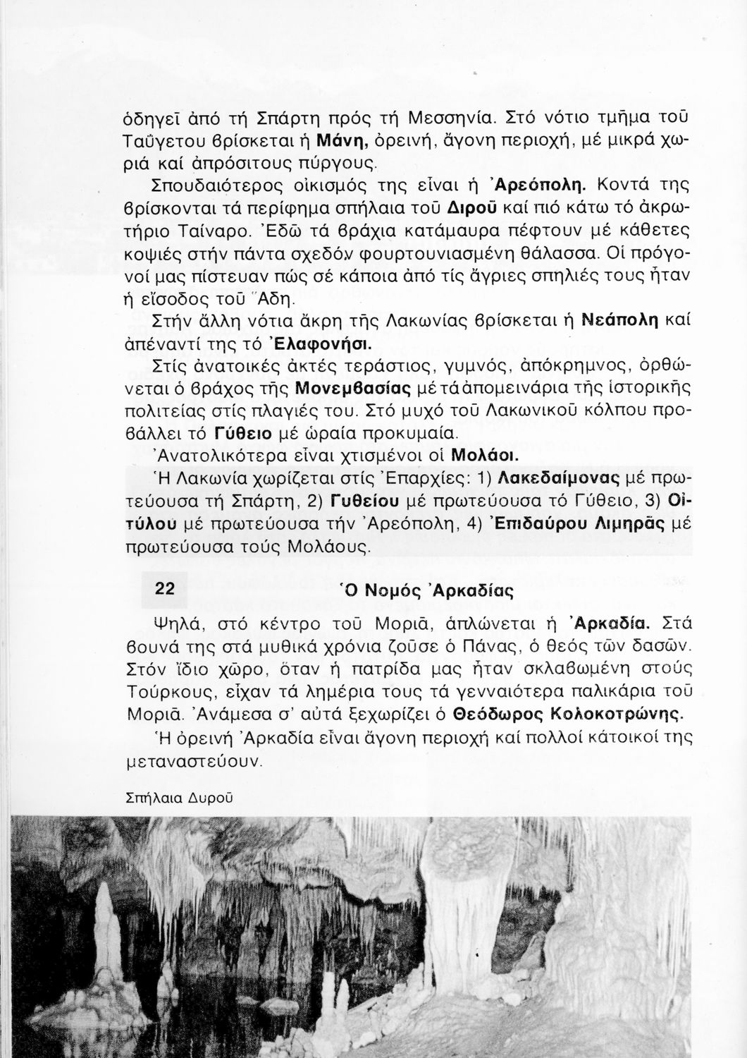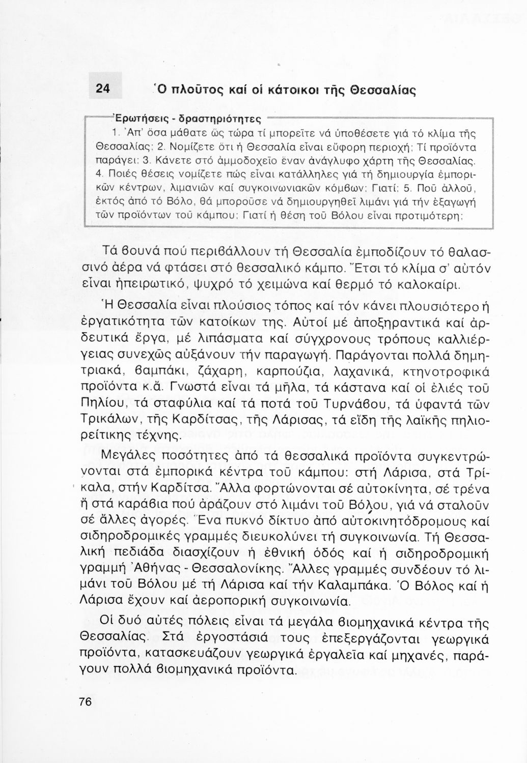 Σχολικό εγχειρίδιο Γεωγραφίας για την Δ΄ Δημοτικού που εξετάζει την Ελλάδα ανά γεωγραφικό διαμέρισμα από γεωφυσική, οικονομική και πολιτική άποψη.