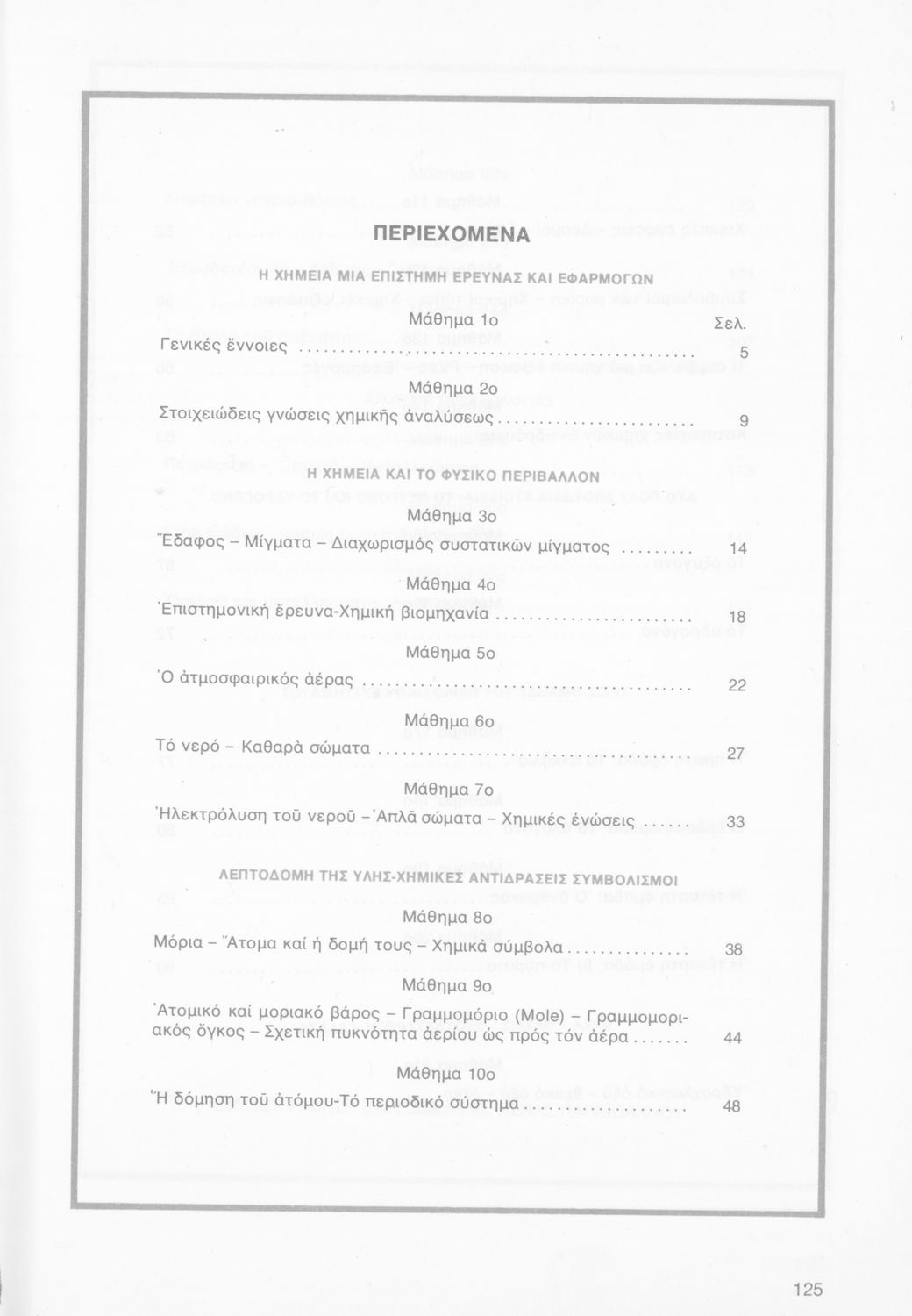 Σχολικό εγχειρίδιο Χημείας Β΄ Γυμνασίου που περιγράφει τη δομή των μορίων και των ατόμων, τις χημικές ενώσεις και εξισώσεις, και τις ομάδες του περιοδικού συστήματος. Περιέχει και στοιχεία ορυκτολογίας.