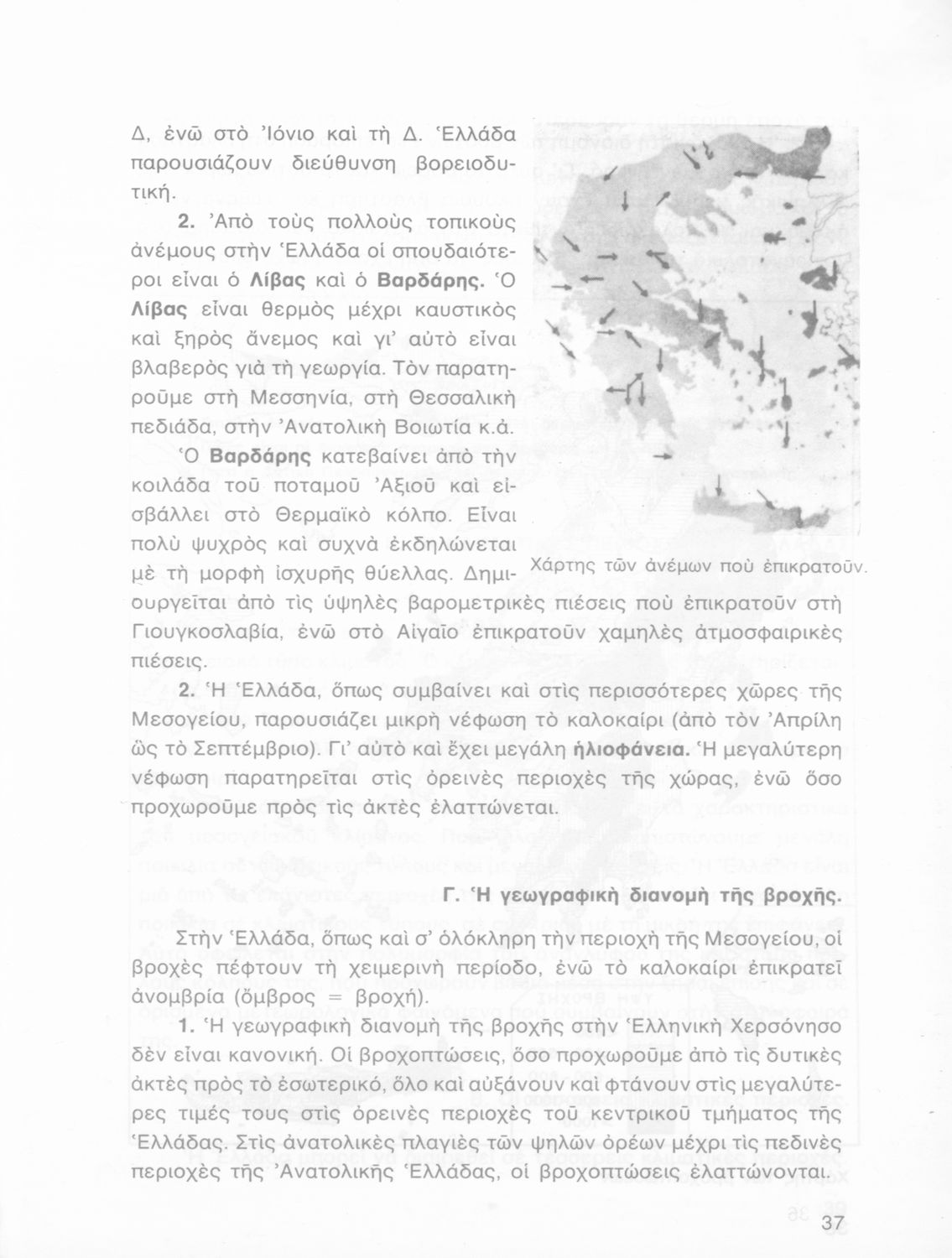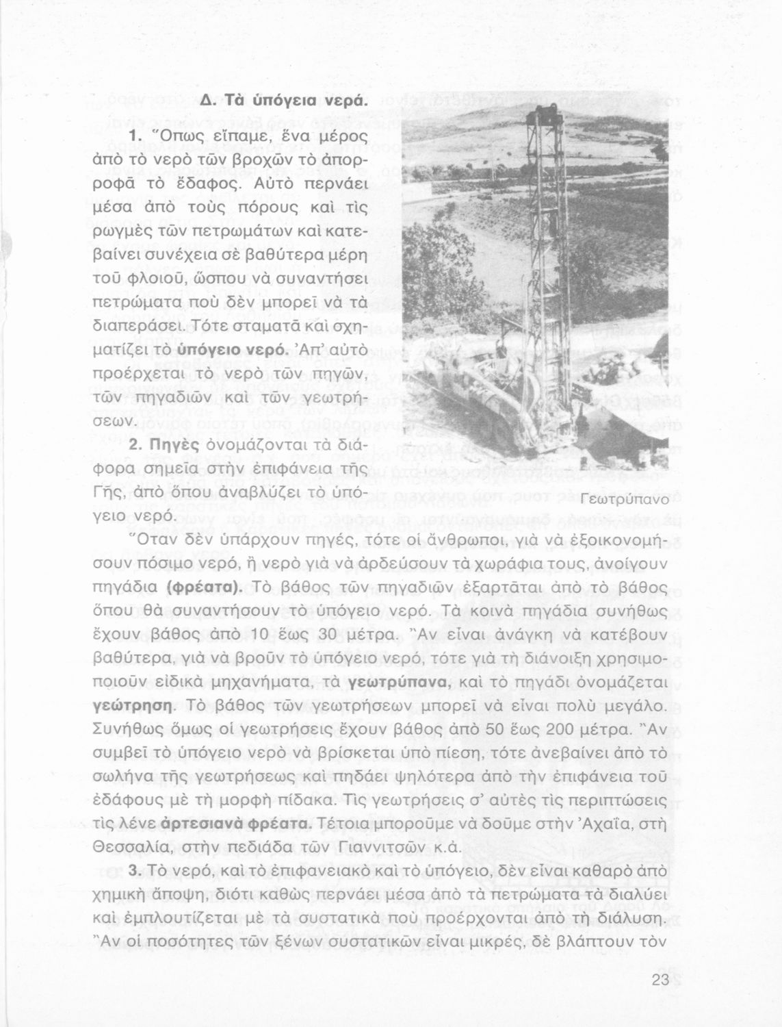 Σχολικό εγχειρίδιο Γεωγραφίας Α' Γυμνασίου που εξετάζει την Ελλάδα ανά διαμέρισμα και νομό από γεωφυσική, οικονομική και πολιτική άποψη.