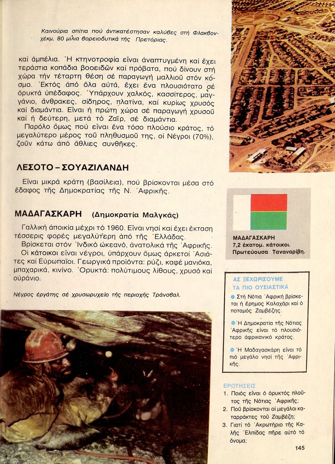 Σχολικό εγχειρίδιο Γεωγραφίας Α΄ Γυμνασίου που περιλαμβάνει εισαγωγή στη φυσική γεωγραφία και εξετάζει ενδεικτικές χώρες και περιοχές από τις πέντε ηπείρους εκτός της Ευρώπης από γεωφυσική και οικονομική πλευρά.