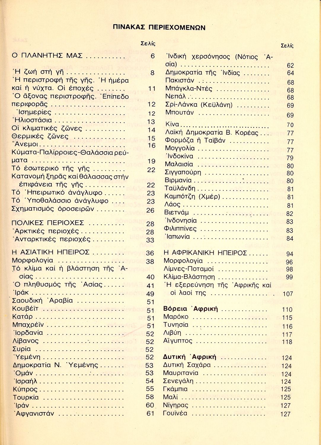 Σχολικό εγχειρίδιο Γεωγραφίας Α΄ και Γ΄ Γυμνασίου που περιλαμβάνει εισαγωγή στη φυσική γεωγραφία και εξετάζει ενδεικτικές χώρες και περιοχές από τις πέντε ηπείρους εκτός της Ευρώπης από γεωφυσική και ...