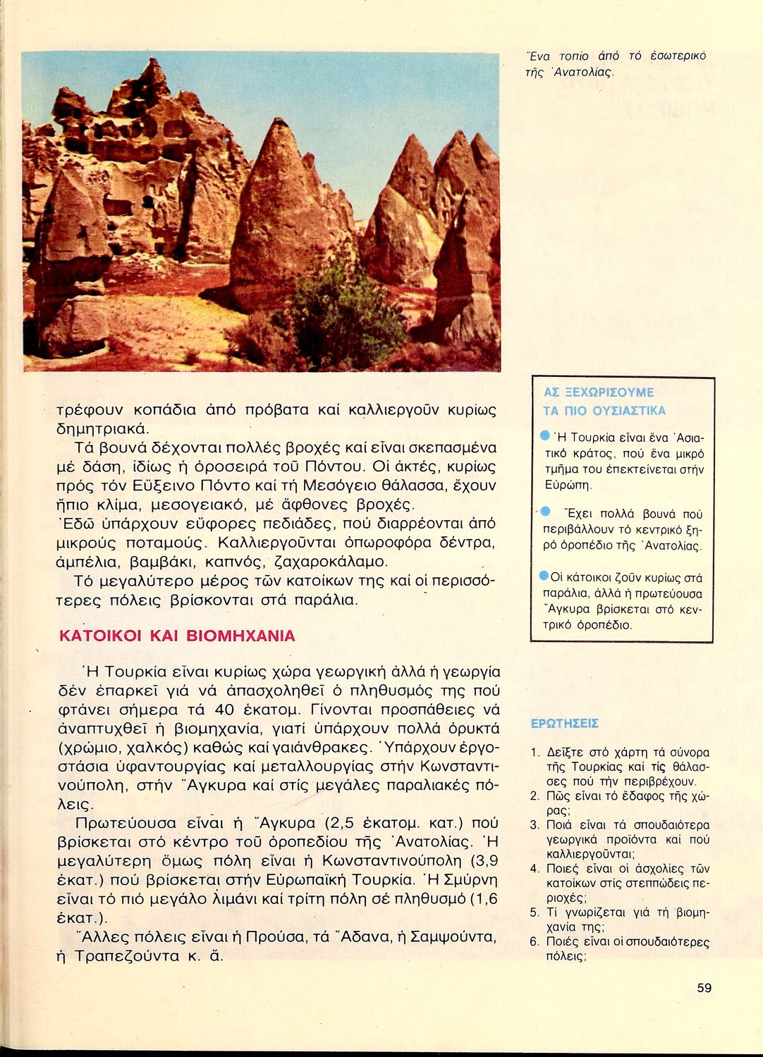 Βαθμίδα εκπαίδευσης: Δευτεροβάθμια Τάξη: Α' Γυμνασίου Μάθημα: Γεωγραφία Γλώσσα: Δημοτική Παρουσίαση περιεχομένου: Σχολικό εγχειρίδιο Γεωγραφίας Α΄ Γυμνασίου που περιλαμβάνει εισαγωγή στη φυσική γεωγραφία και εξετάζει ενδεικτικές χώρες και περιοχές από τις πέντε ηπείρους εκτός της Ευρώπης από γεωφυσική και οικονομική πλευρά. |