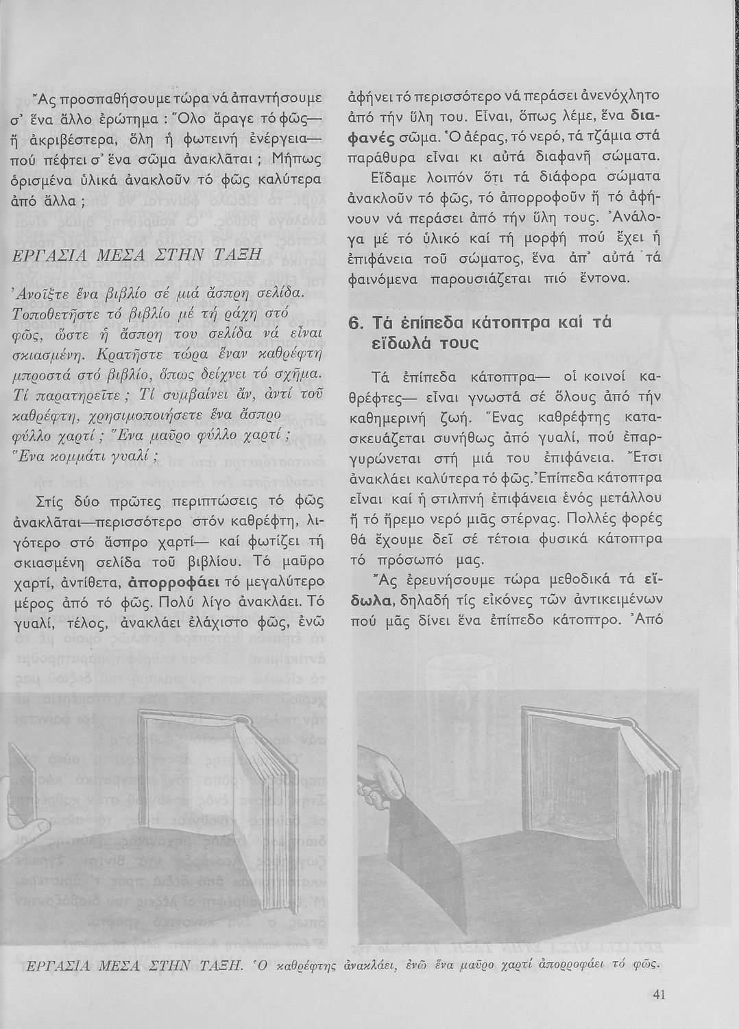 Σχολικό εγχειρίδιο Φυσικής και Χημείας ΣΤ΄ Δημοτικού που εστιάζει στα φυσικά φαινόμενα της ακουστικής, οπτικής, του ηλεκτρισμού, της ατομικής φυσικής. Περιέχει και στοιχεία χημείας.
