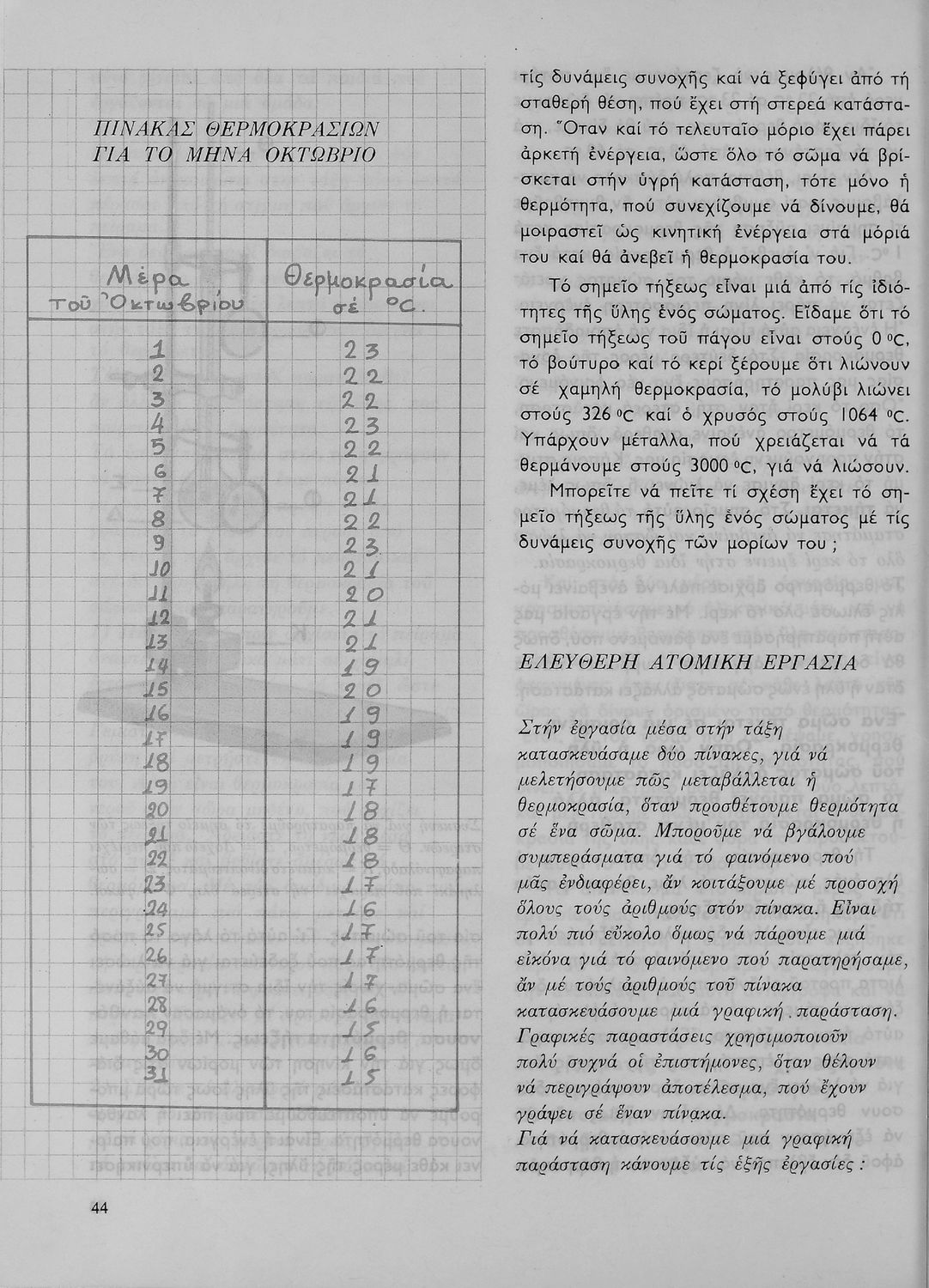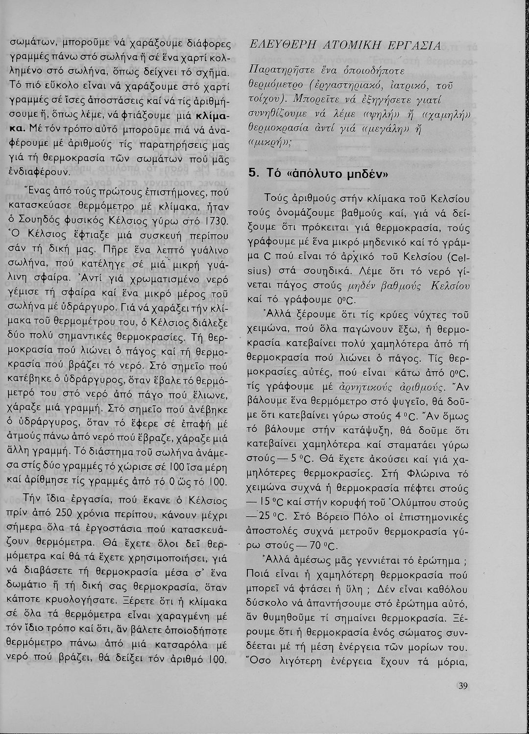 Παρουσίαση περιεχομένου: Σχολικό εγχειρίδιο Φυσικής και Χημείας Ε΄ Δημοτικού που αποτελεί μια εισαγωγή στις έννοιες της ύλης, της ενέργειας, της θερμότητας, της μηχανικής και της υδροστατικής. Περιέχει και στοιχεία χημείας.