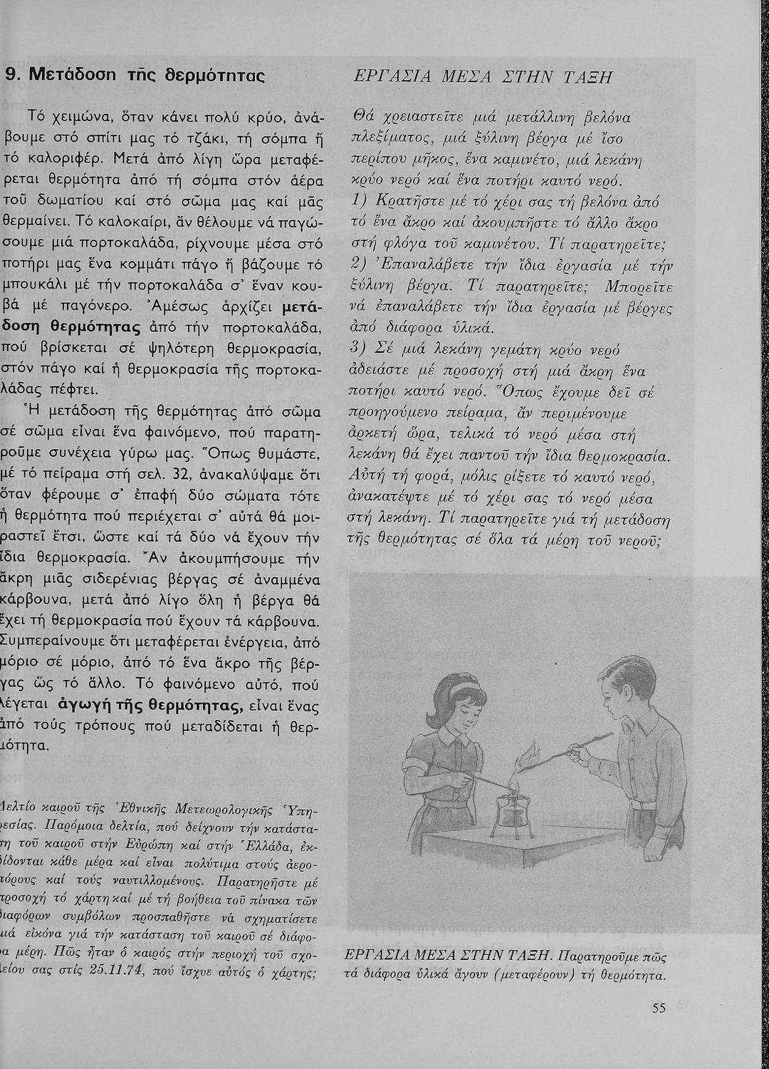 Σχολικό εγχειρίδιο Φυσικής και Χημείας Ε΄ Δημοτικού που αποτελεί μια εισαγωγή στις έννοιες της ύλης, της ενέργειας και της θερμότητας