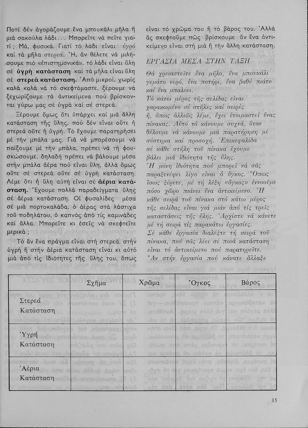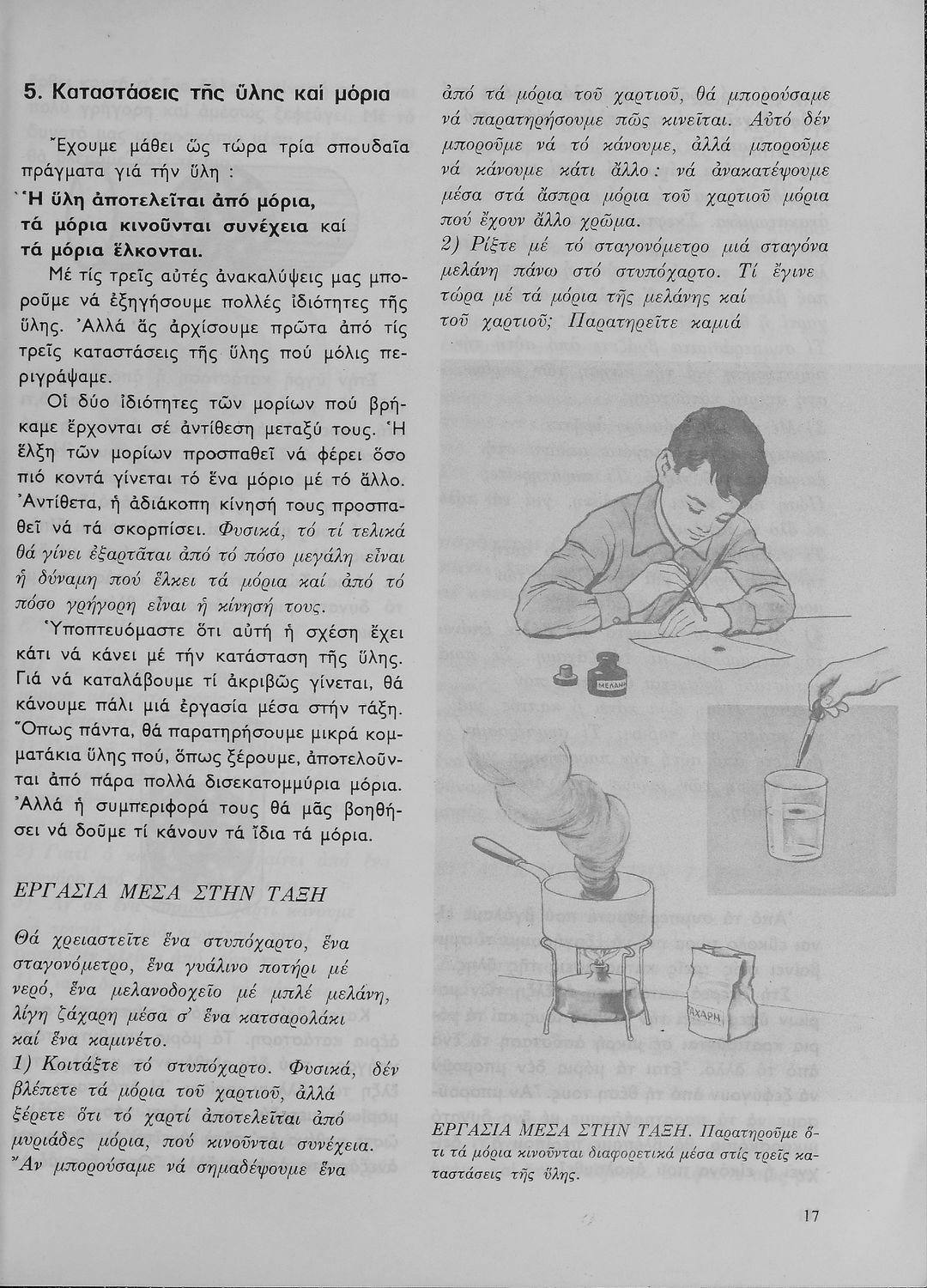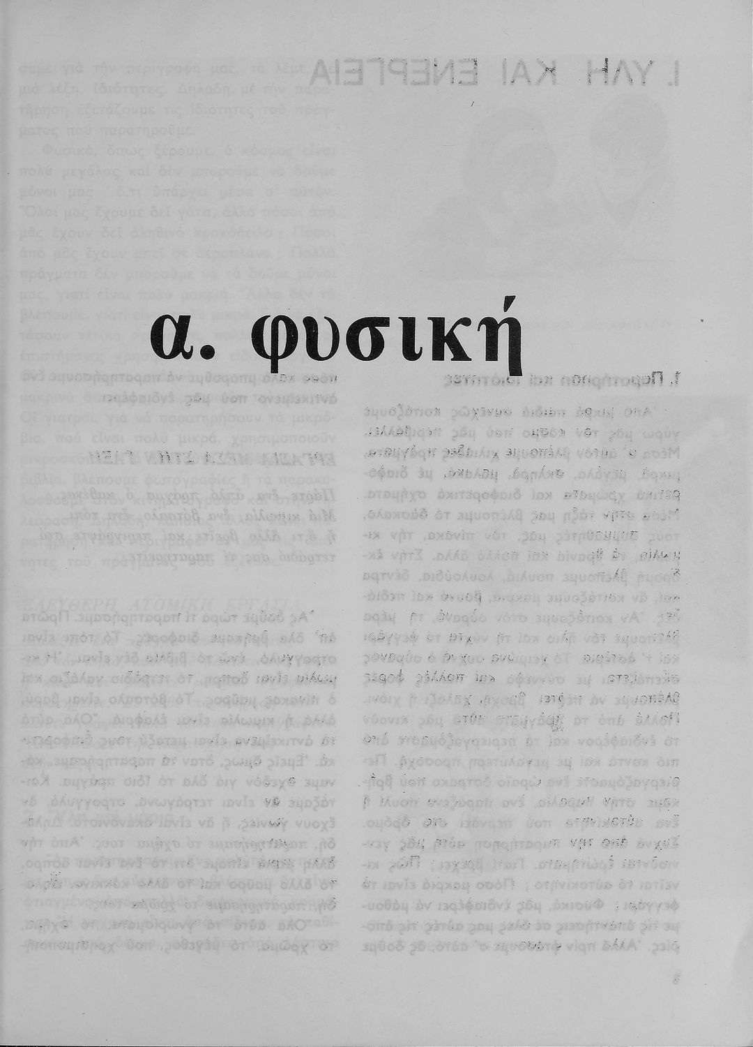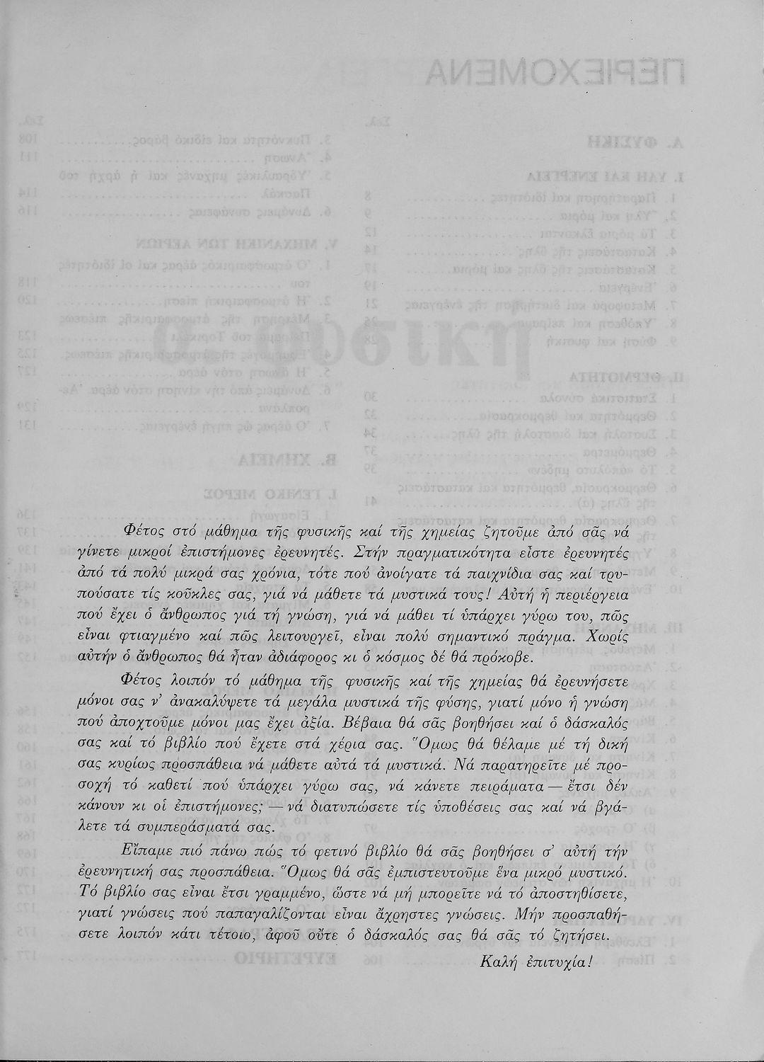 Σχολικό εγχειρίδιο Φυσικής και Χημείας Ε΄ Δημοτικού που αποτελεί μια εισαγωγή στις έννοιες της ύλης, της ενέργειας, της θερμότητας, της μηχανικής και της υδροστατικής. Περιέχει και στοιχεία χημείας.