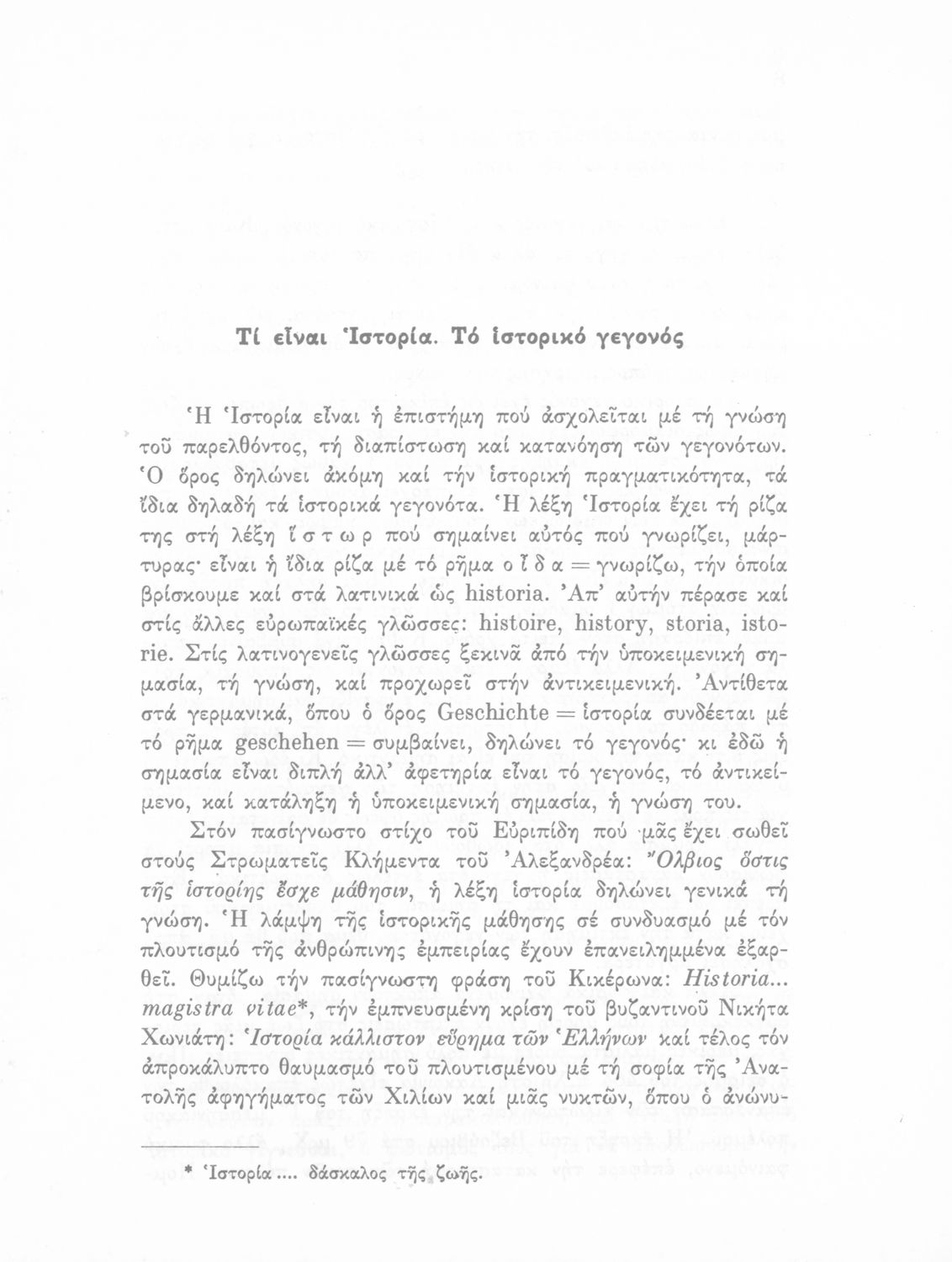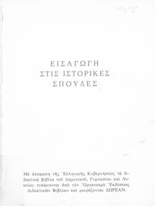 Σχολικό εγχειρίδιο Ιστορίας Γ΄ Λυκείου που περιλαμβάνει μια εισαγωγή στις ιστορικές σπουδές και μεθοδολογικά ζητήματα έρευνας της ιστορίας και σχολιάζει ζητήματα ιστορικών πηγών.