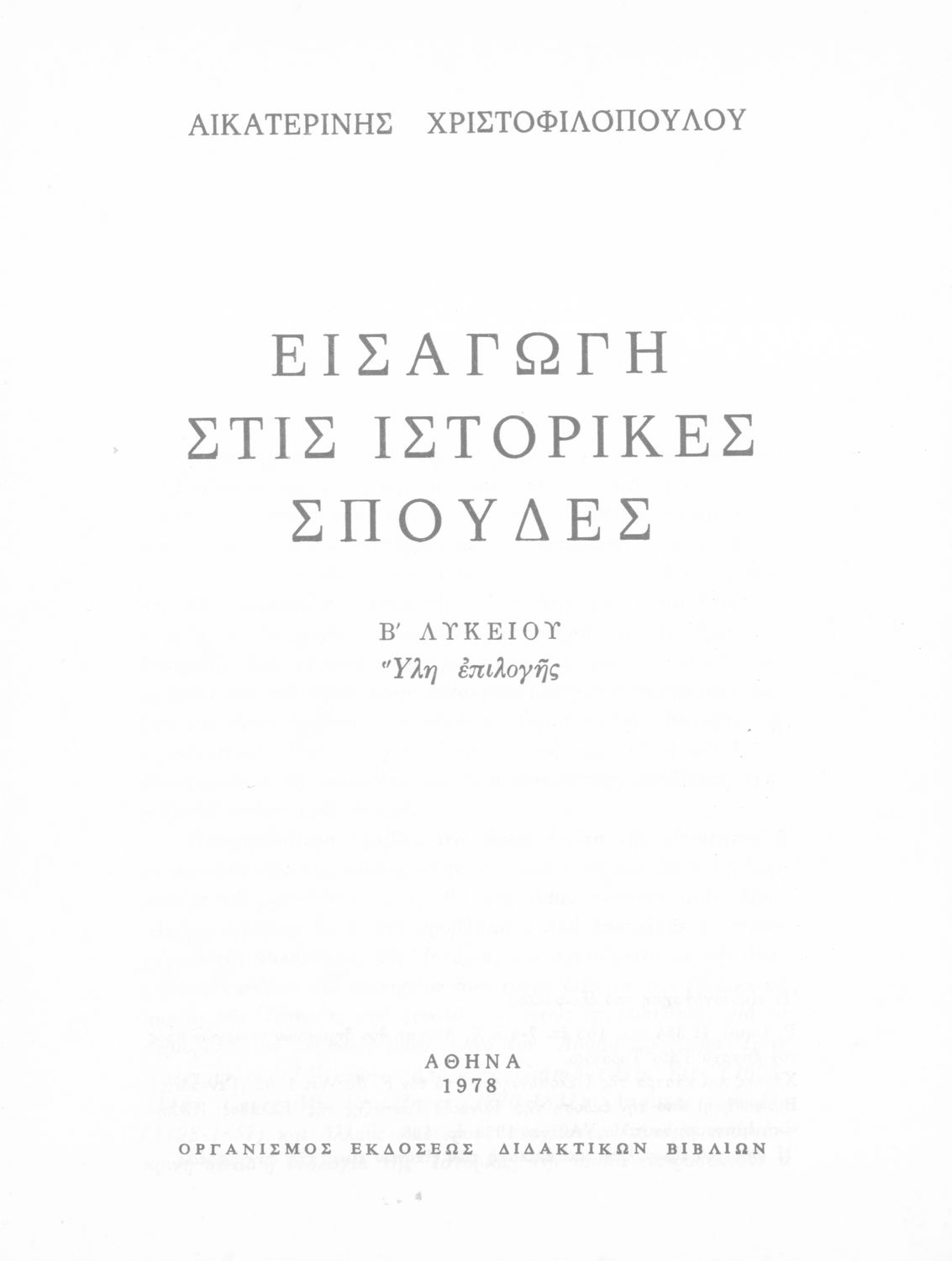 Τίτλος: Εισαγωγή στις Ιστορικές σπουδές Β΄ Λυκείου ύλη επιλογής