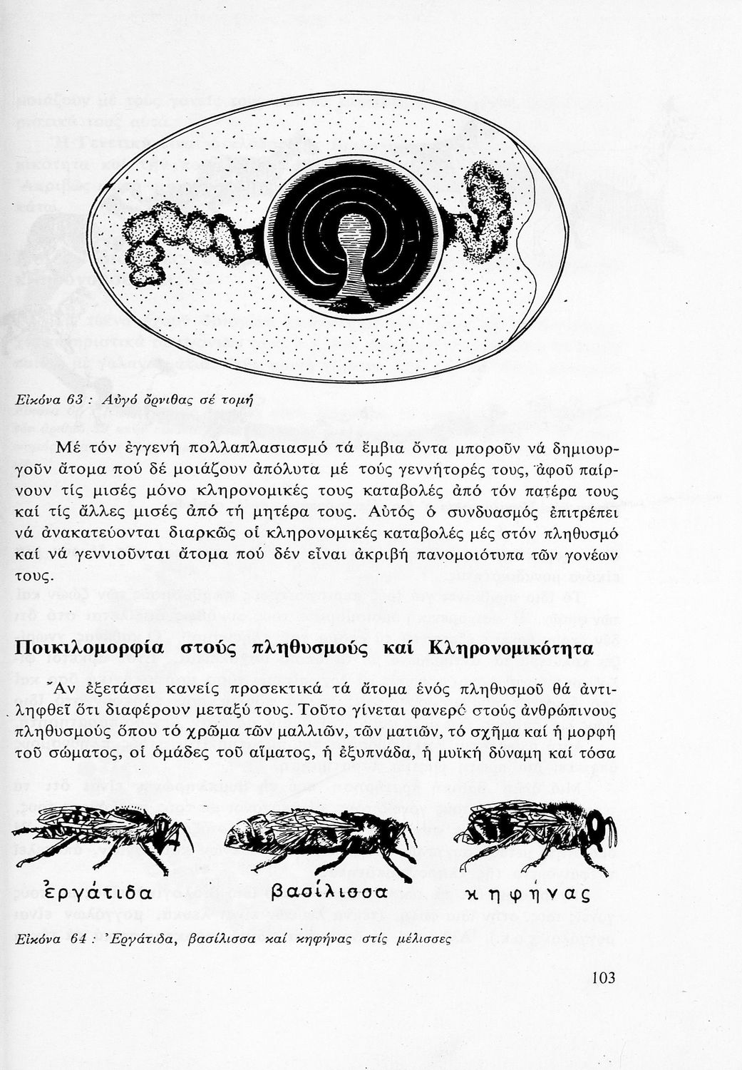 Σχολικό εγχειρίδιο Βιολογίας Γ΄ Γυμνασίου που εστιάζει στις συνθήκες γέννησης, μεταβολής και θανάτου των έμβιων οργανισμών. Φέρει το σύμβολο της δικτατορίας.
