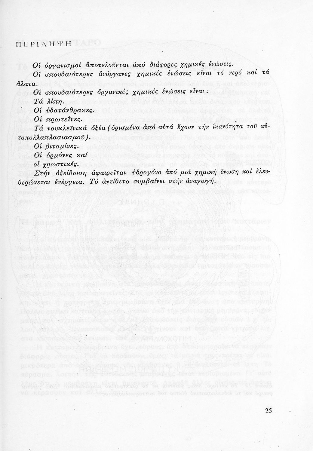 Σχολικό εγχειρίδιο Βιολογίας ΣΤ΄ Γυμνασίου που εστιάζει στις συνθήκες γέννησης, μεταβολής και θανάτου των έμβιων οργανισμών. Φέρει το σύμβολο της δικτατορίας. Ο συγγραφέας ήταν υφηγητής του Πανεπιστημίου ...