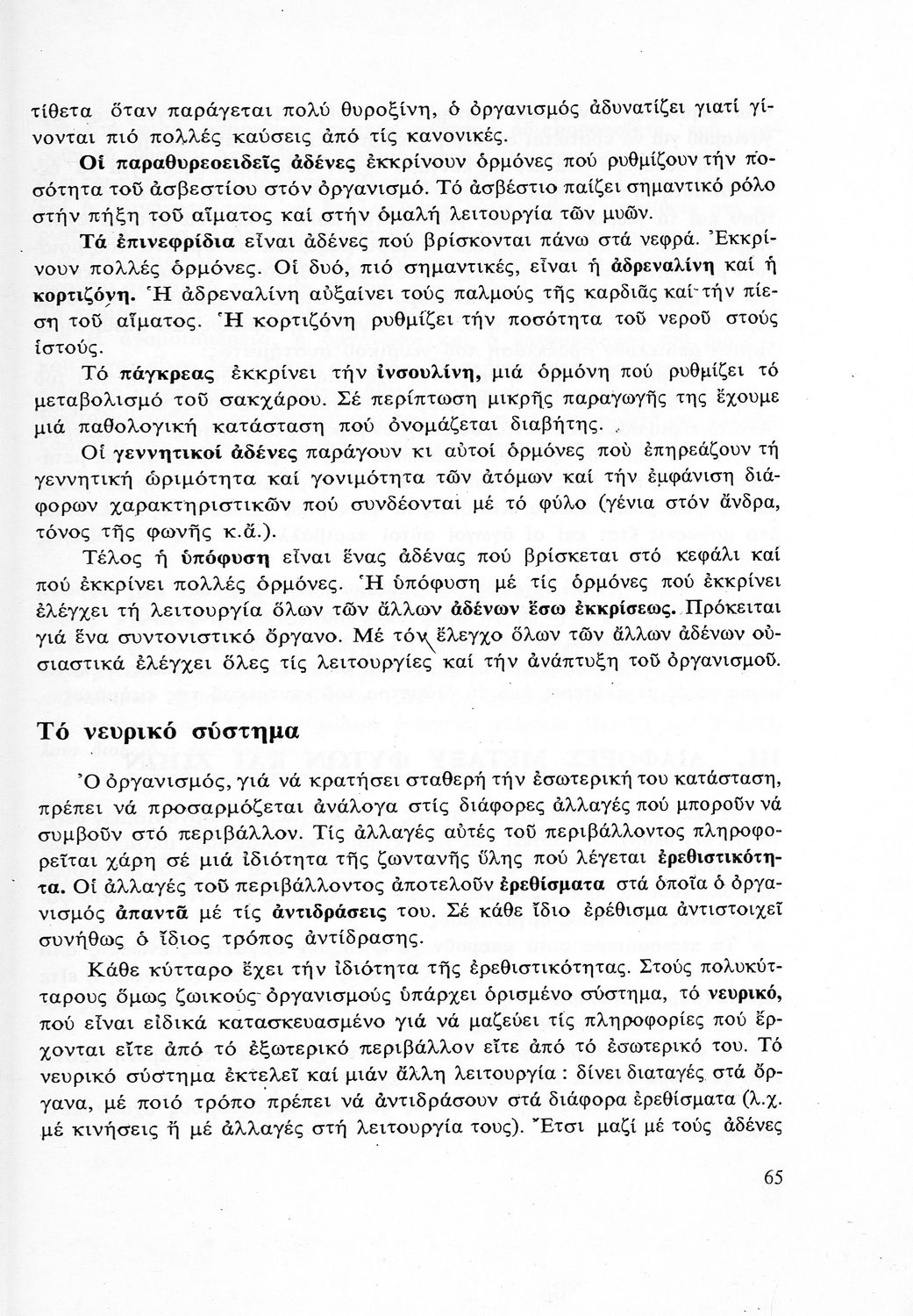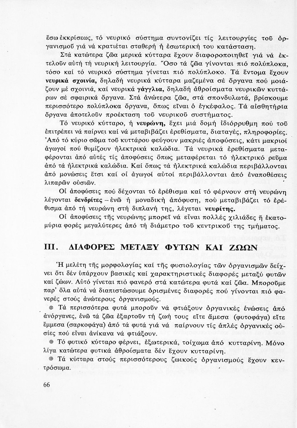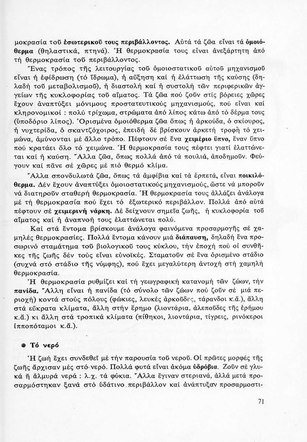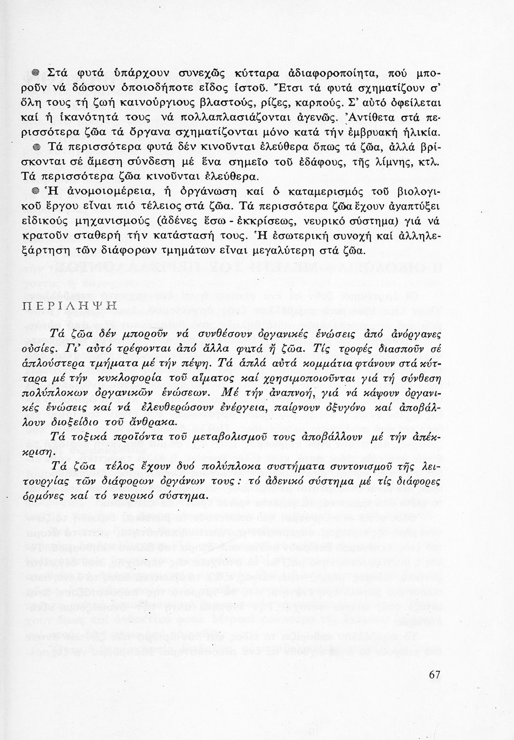 Σχολικό εγχειρίδιο Βιολογίας ΣΤ΄ Γυμνασίου που εστιάζει στις συνθήκες γέννησης, μεταβολής και θανάτου των έμβιων οργανισμών. Φέρει το σύμβολο της δικτατορίας. Ο συγγραφέας ήταν υφηγητής του Πανεπιστημίου ...
