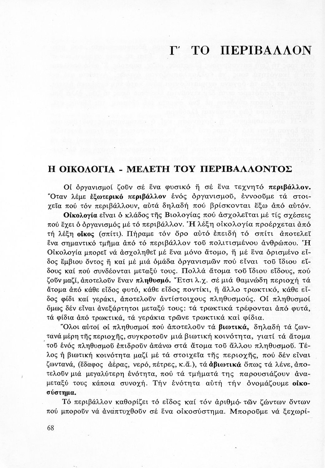 Παρουσίαση περιεχομένου: Σχολικό εγχειρίδιο Βιολογίας Γ΄ Γυμνασίου που εστιάζει στις συνθήκες γέννησης, μεταβολής και θανάτου των έμβιων οργανισμών. Περιέχει στοιχεία οικολογίας και λεξιλόγιο όρων.