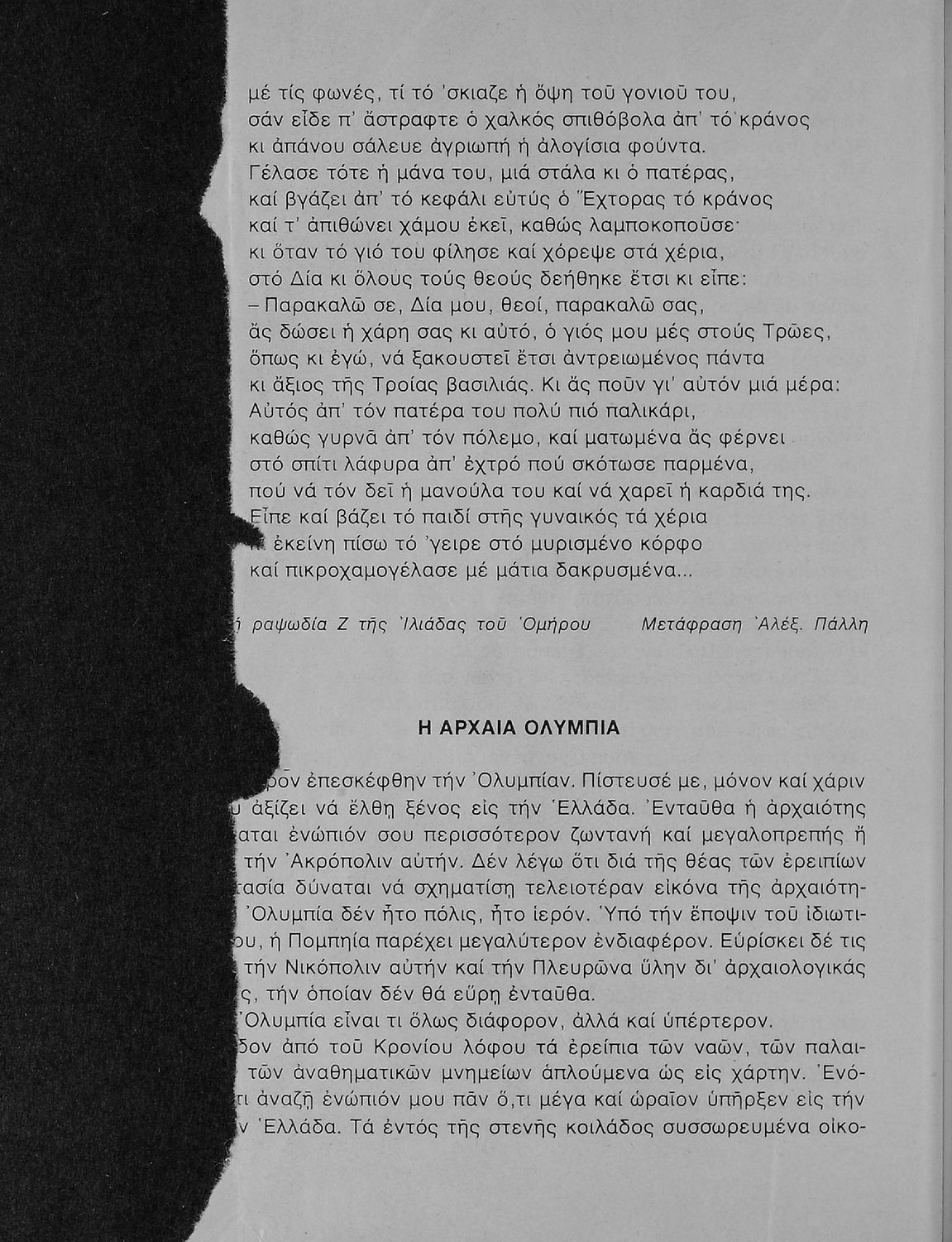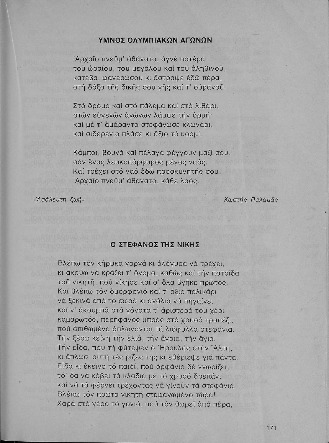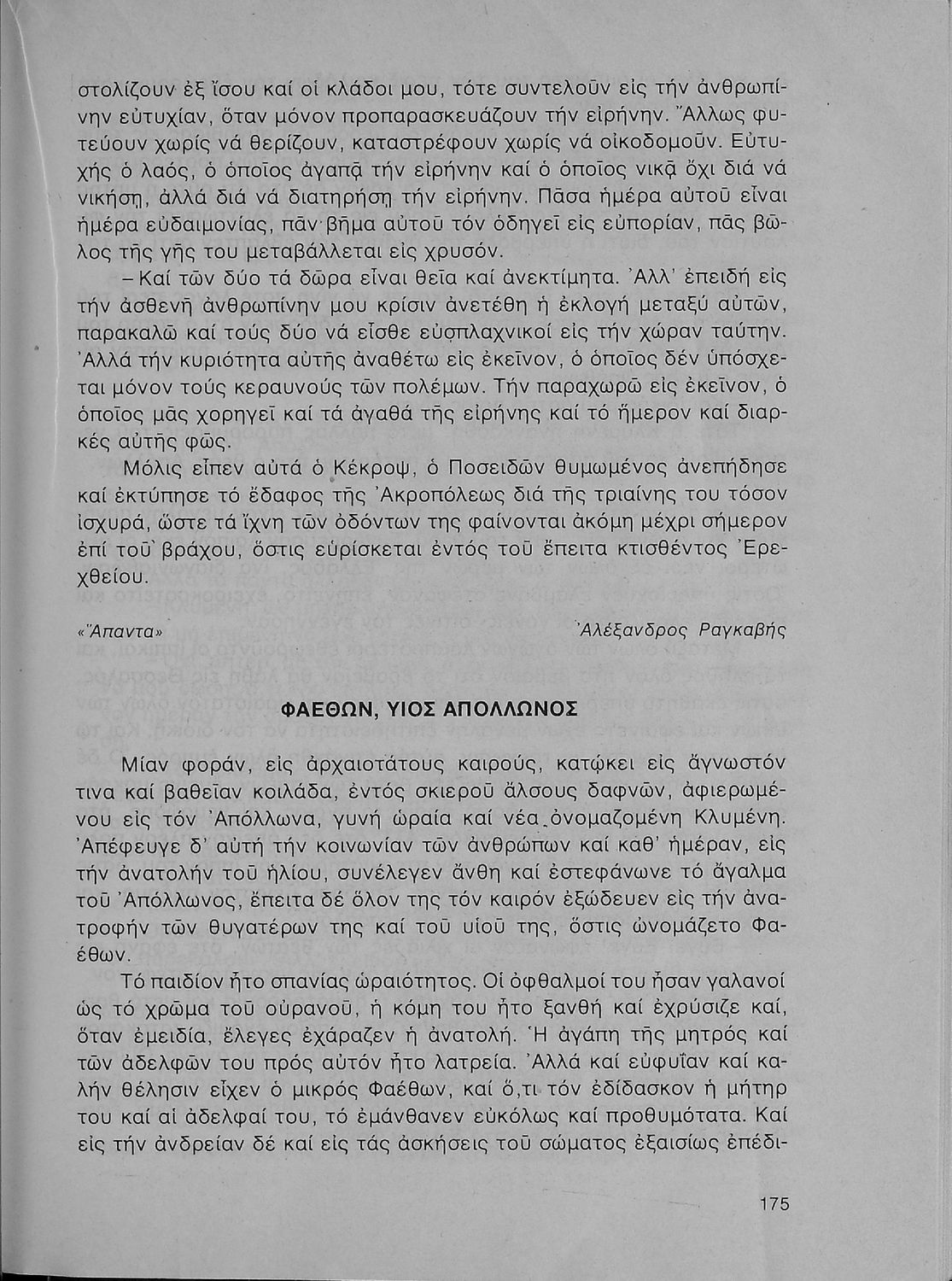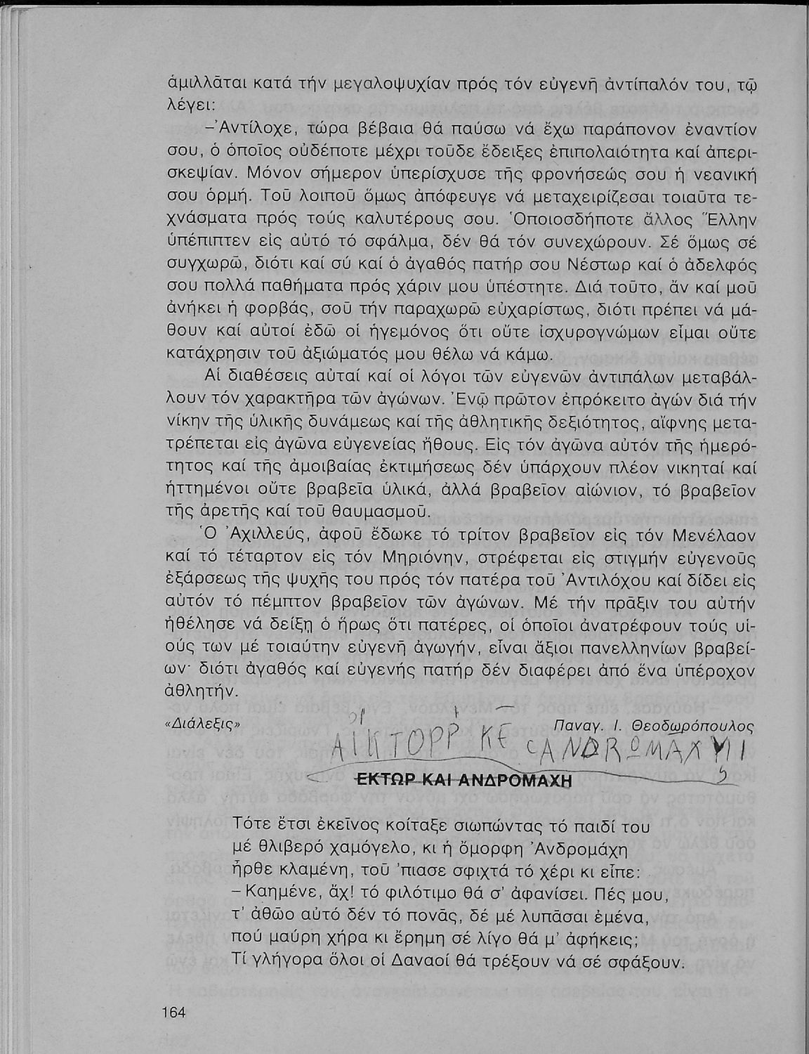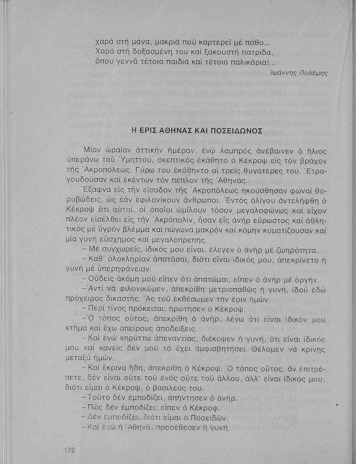 Σχολικό εγχειρίδιο Νέων Ελληνικών Γ΄ Γυμνασίου και Α' Αστικού Σχολείου που περιέχει πεζά και ποιήματα Ελλήνων συγγραφέων εμπνευσμένα από τη θρησκευτική και κοινωνική ζωή, την ελληνική μυθολογία, την αρχαία και