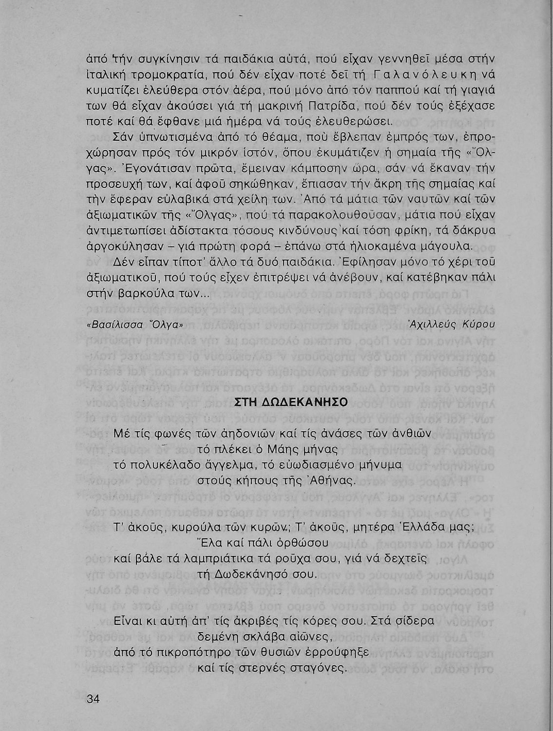 Σχολικό εγχειρίδιο Νέων Ελληνικών Γ΄ Γυμνασίου και Α' Αστικού Σχολείου που περιέχει πεζά και ποιήματα Ελλήνων συγγραφέων εμπνευσμένα από τη θρησκευτική και κοινωνική ζωή, την ελληνική μυθολογία, την αρχαία και