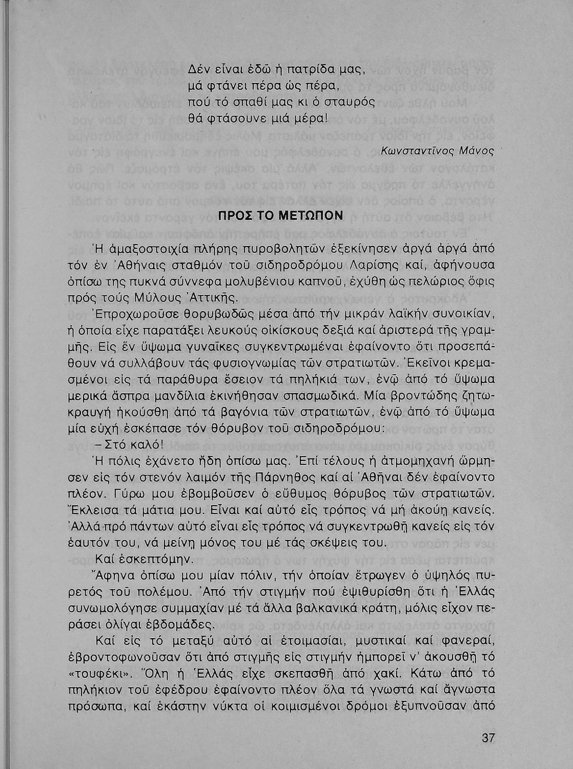 Σχολικό εγχειρίδιο Νέων Ελληνικών Α΄ Γυμνασίου που περιέχει πεζά και ποιήματα Ελλήνων συγγραφέων και δημοτικά τραγούδια εμπνευσμένα από την σύγχρονη ελληνική ιστορία, τη βυζαντινή ιστορία, την οικογενειακή και