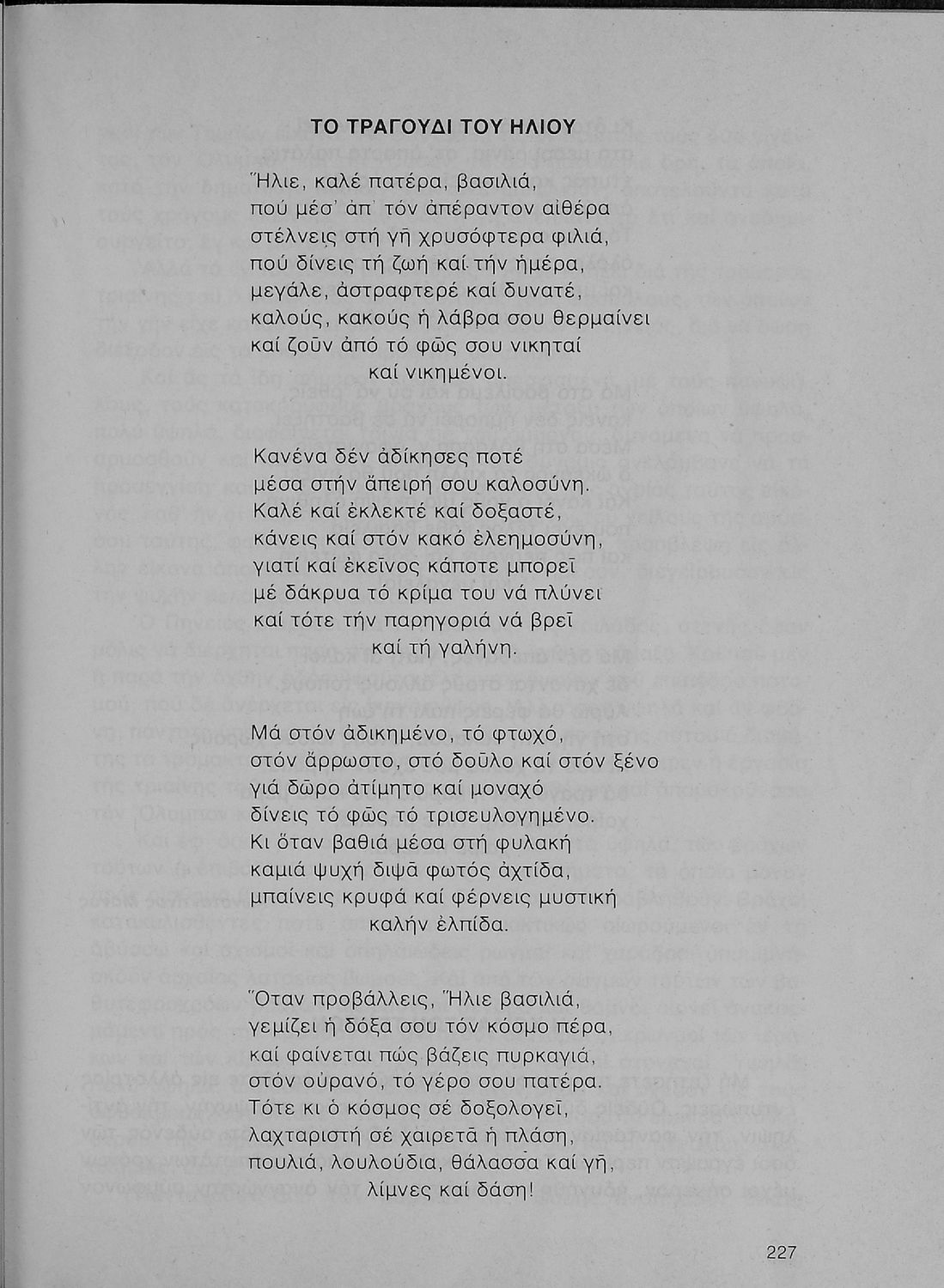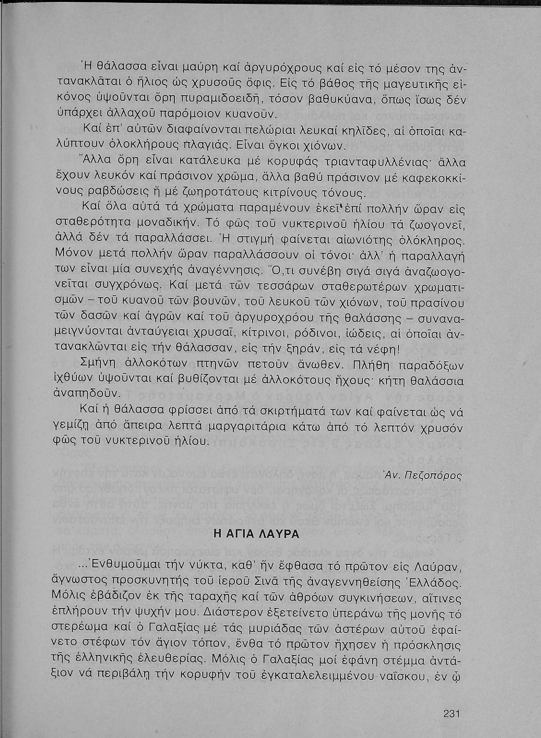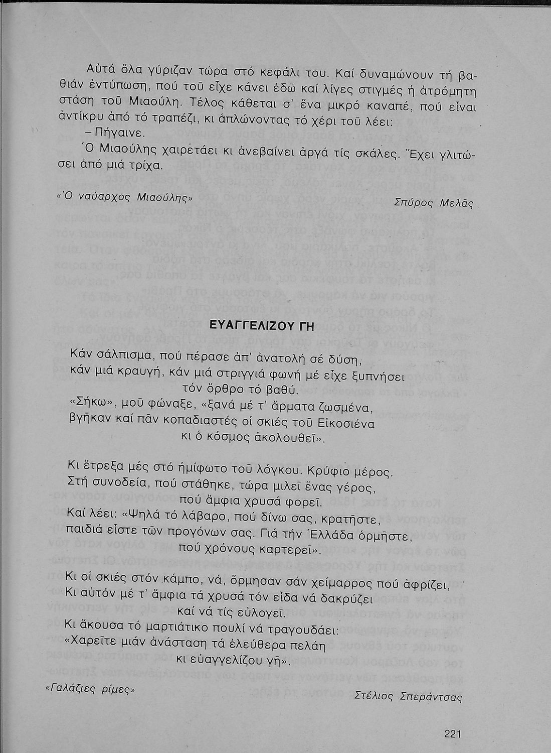 Σχολικό εγχειρίδιο Νέων Ελληνικών Γ΄ Γυμνασίου και Α' Αστικού Σχολείου που περιέχει πεζά και ποιήματα Ελλήνων συγγραφέων εμπνευσμένα από τη θρησκευτική και κοινωνική ζωή, την ελληνική μυθολογία, την αρχαία και