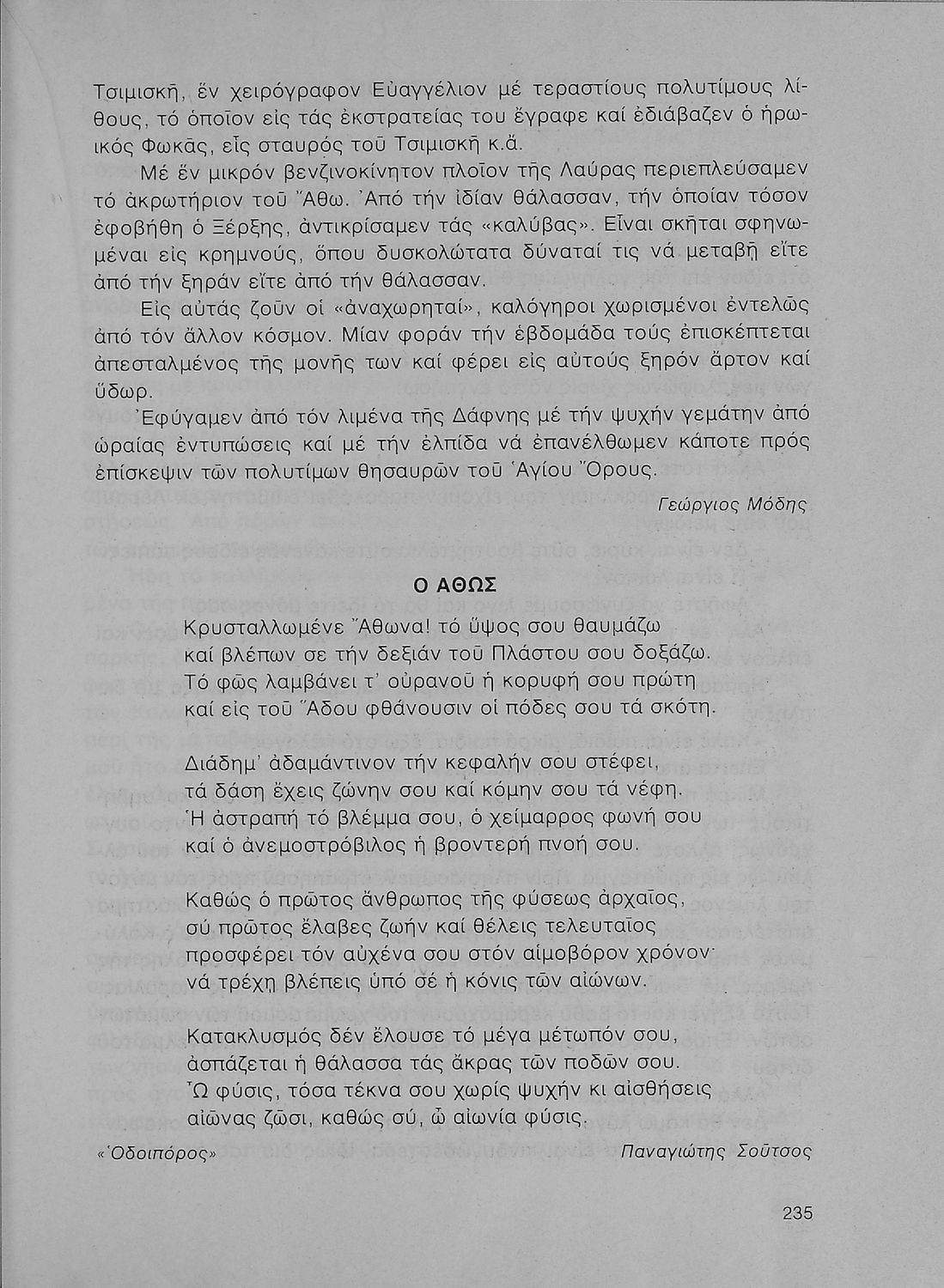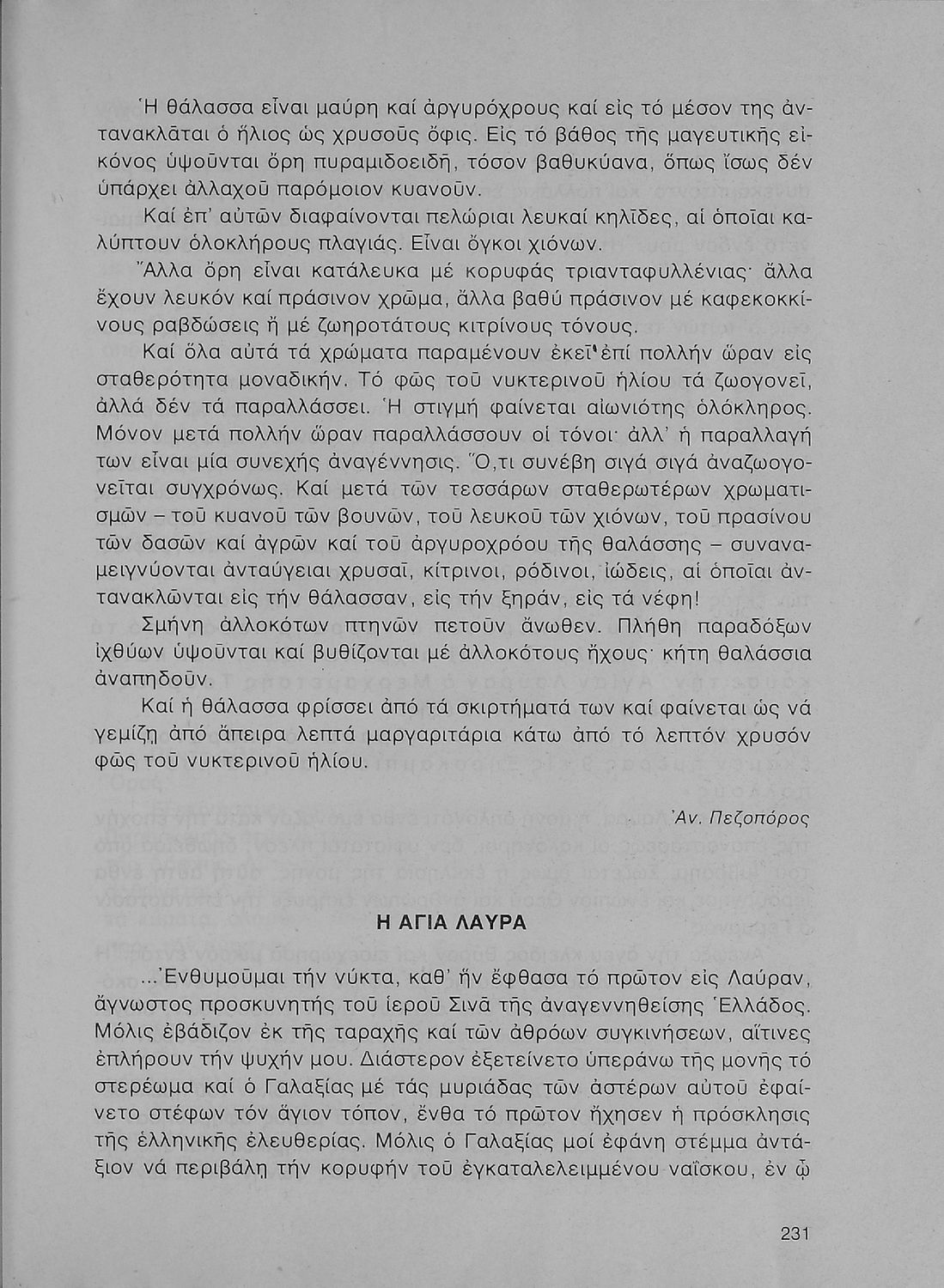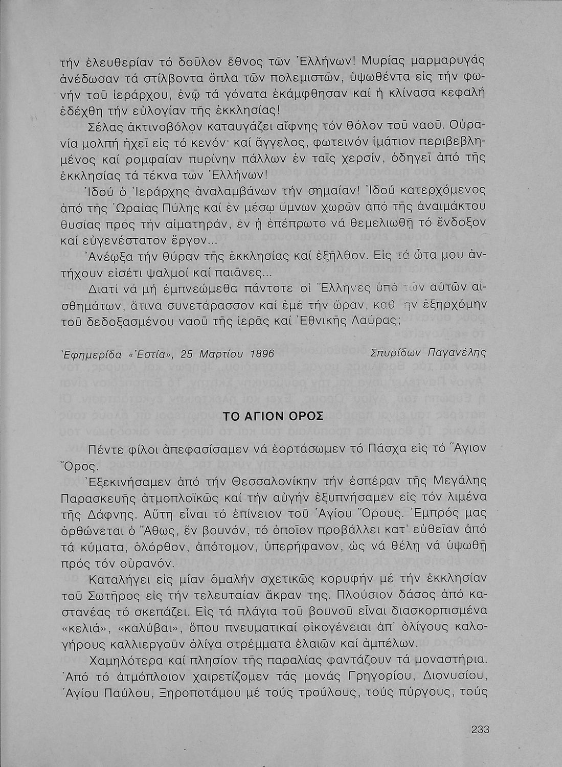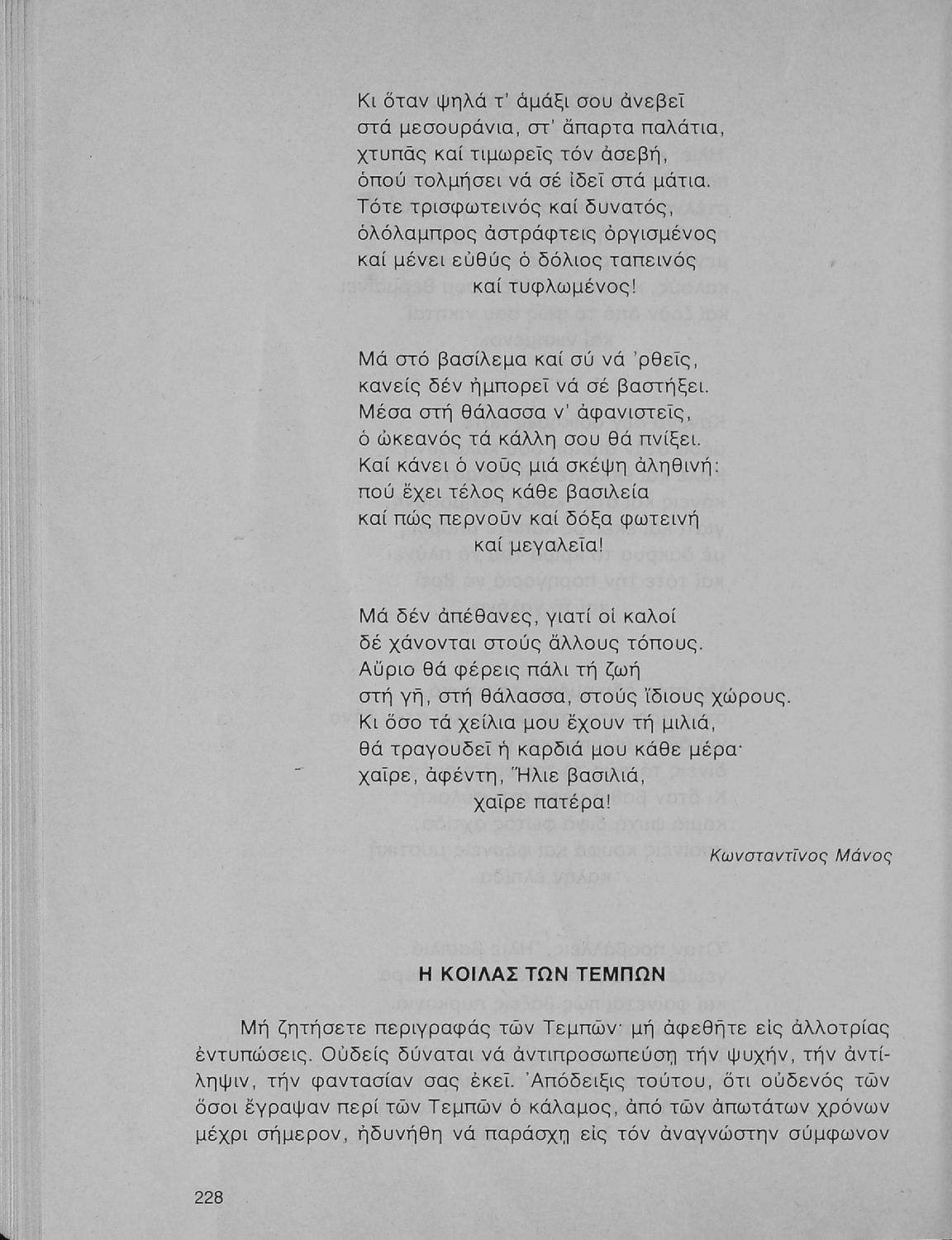 Σχολικό εγχειρίδιο Νέων Ελληνικών Γ΄ Γυμνασίου και Α' Αστικού Σχολείου που περιέχει πεζά και ποιήματα Ελλήνων συγγραφέων εμπνευσμένα από τη θρησκευτική και κοινωνική ζωή, την ελληνική μυθολογία, την αρχαία και