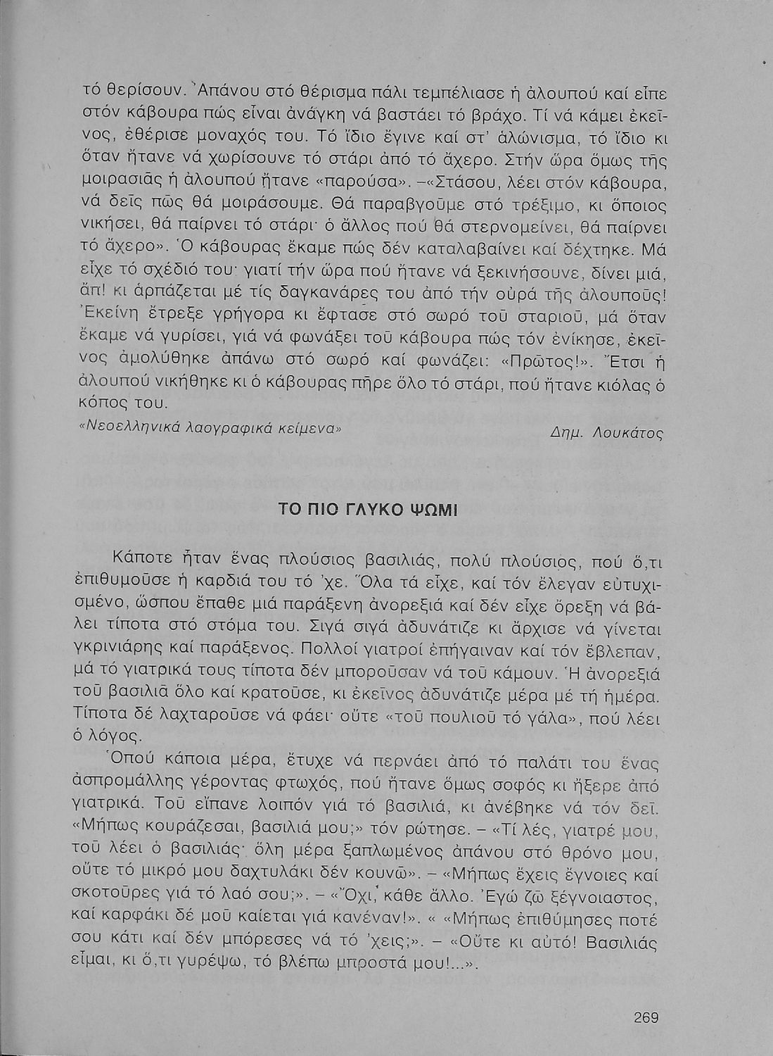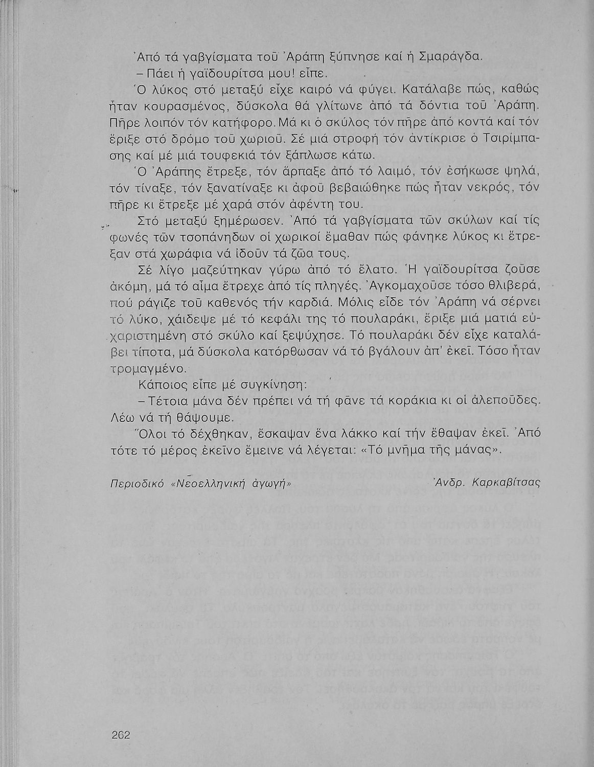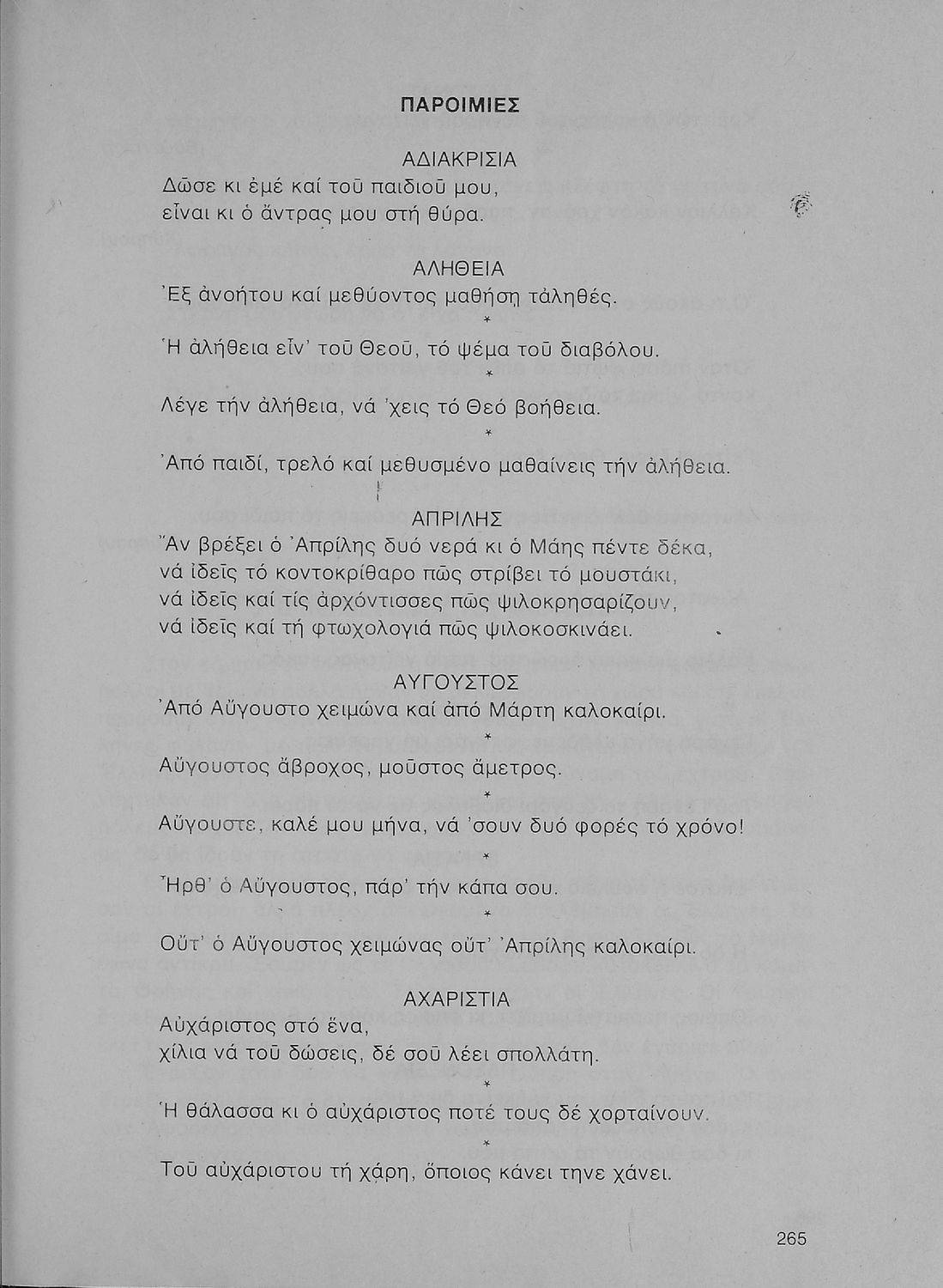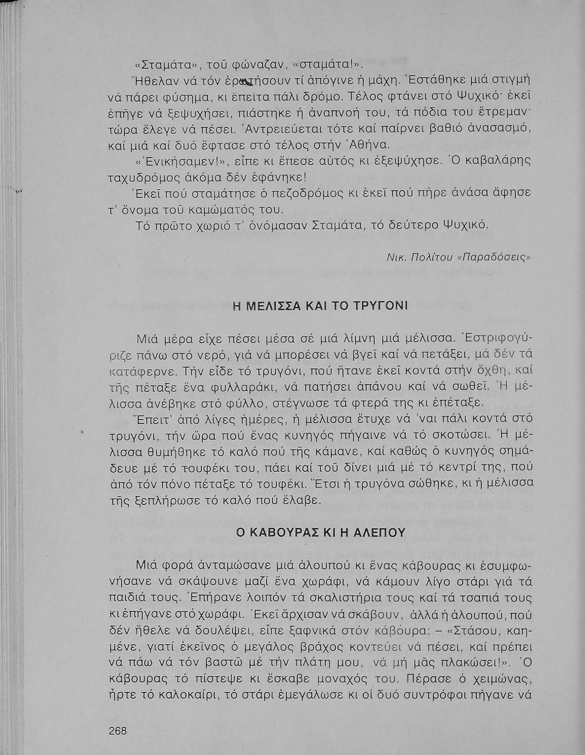 Σχολικό εγχειρίδιο Νέων Ελληνικών Γ΄ Γυμνασίου και Α' Αστικού Σχολείου που περιέχει πεζά και ποιήματα Ελλήνων συγγραφέων εμπνευσμένα από τη θρησκευτική και κοινωνική ζωή, την ελληνική μυθολογία, την αρχαία και