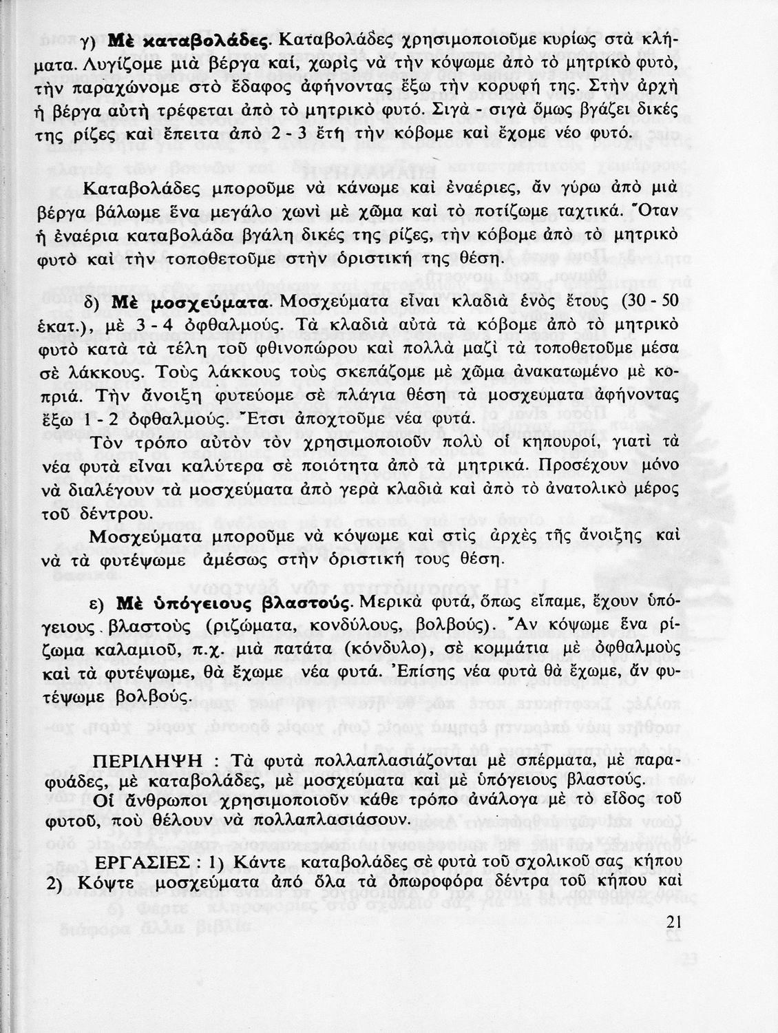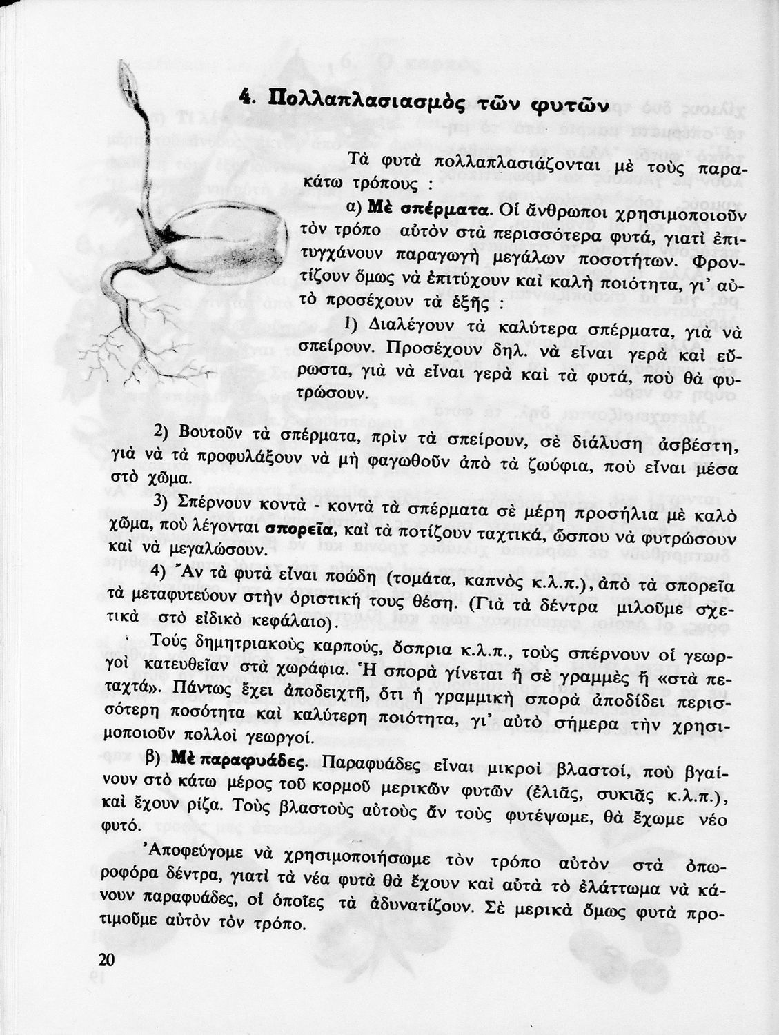 Σχολικό εγχειρίδιο Φυτολογίας Δ΄, Ε΄ και ΣΤ΄ Δημοτικού που παρουσιάζει πλήθος φυτών και εστιάζει στον τρόπο πολλαπλασιασμού τους.