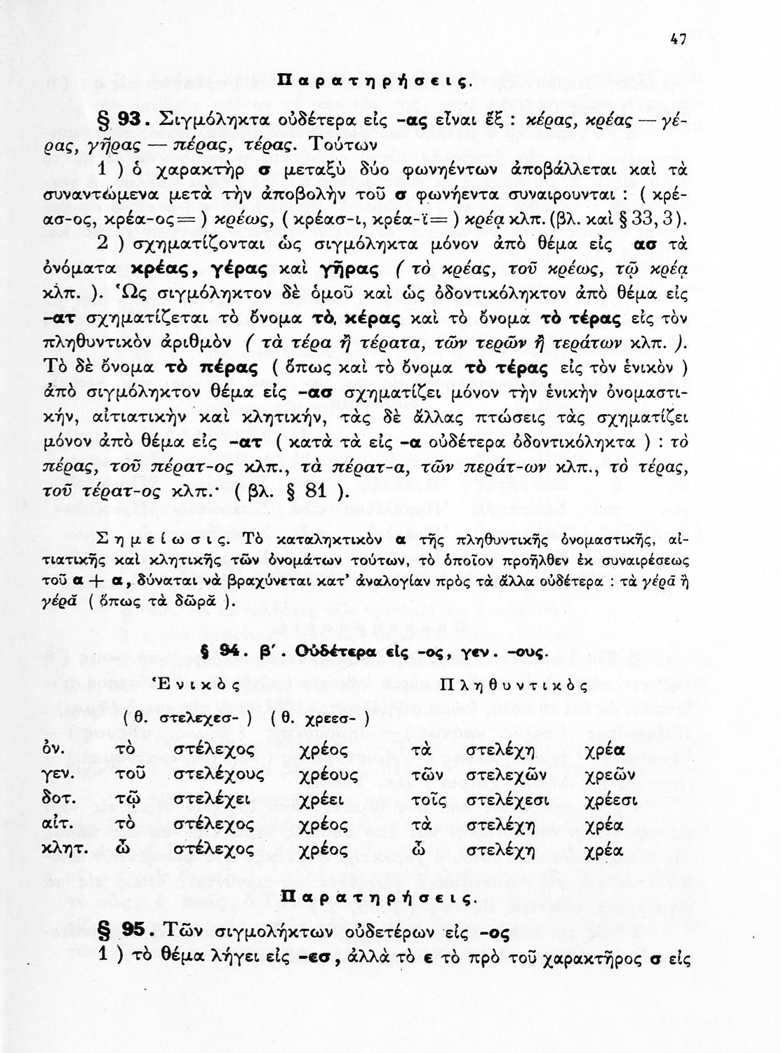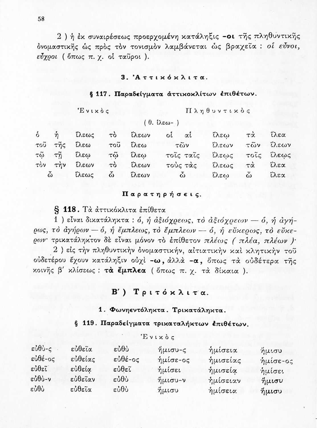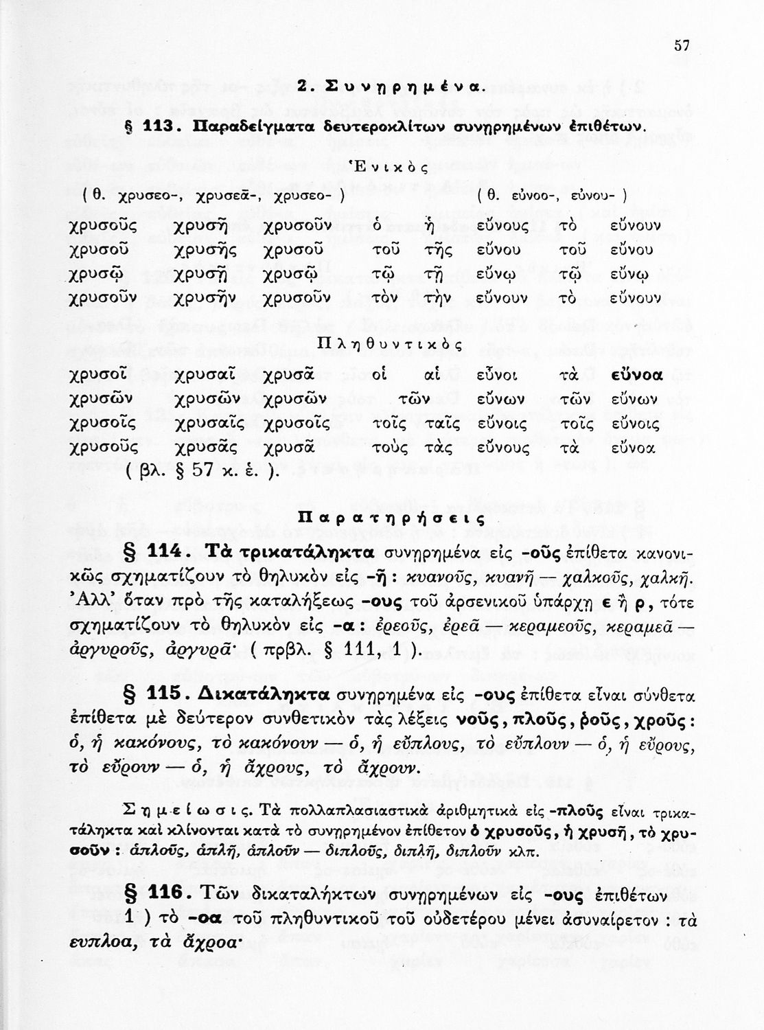 Σχολικό εγχειρίδιο Αρχαίων Ελληνικών Α', Β', και Γ' Γυμνασίου που περιέχει τους κανόνες γραμματικής και είναι χωρισμένο σε φθογγολογικό, τυπολογικό και ετυμολογικό μέρος. Περιέχει και κατάλογο ανωμάλων ρημάτων.
