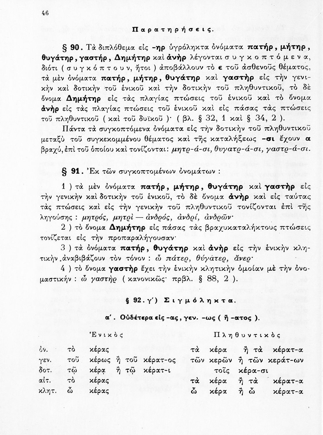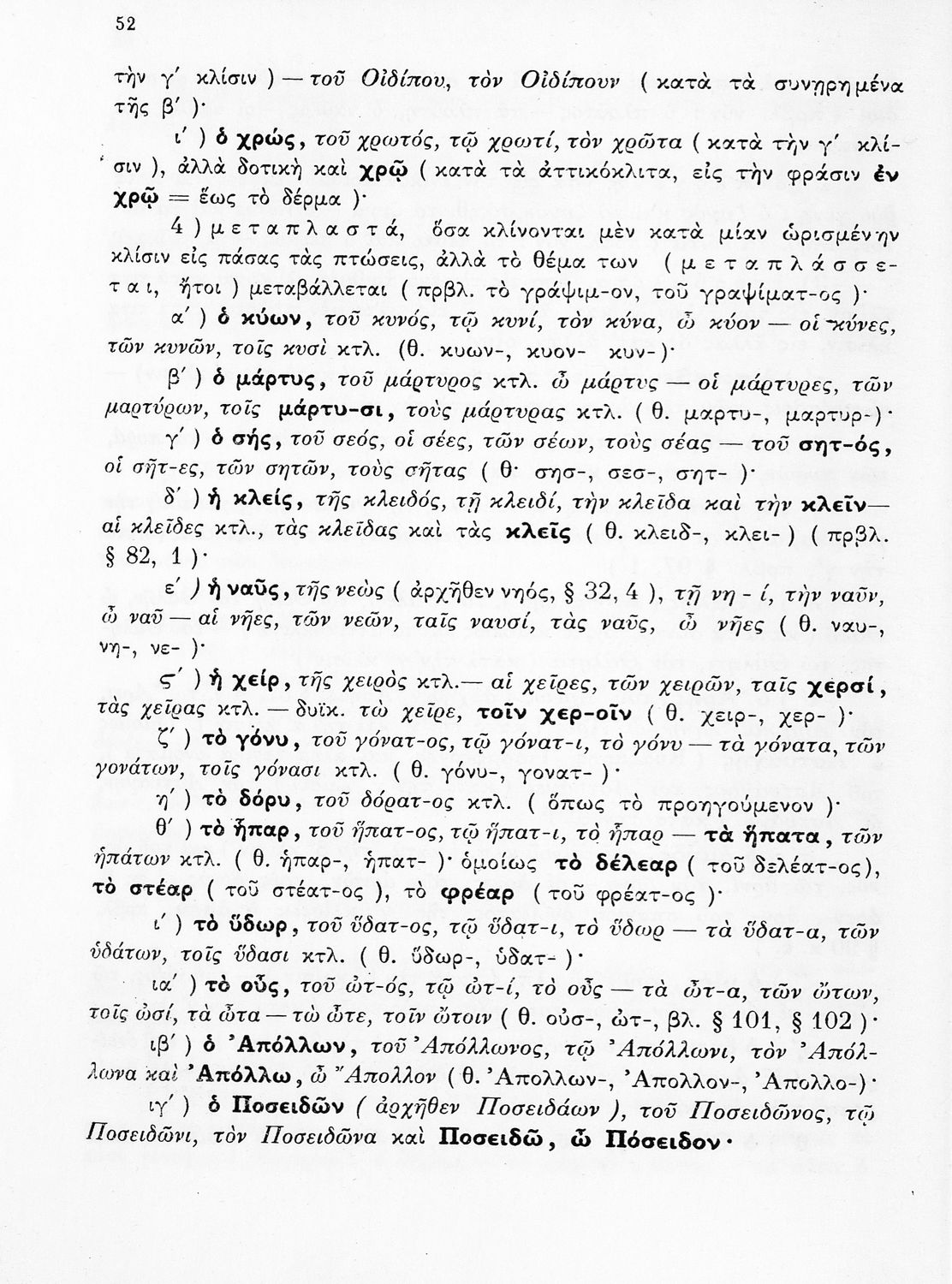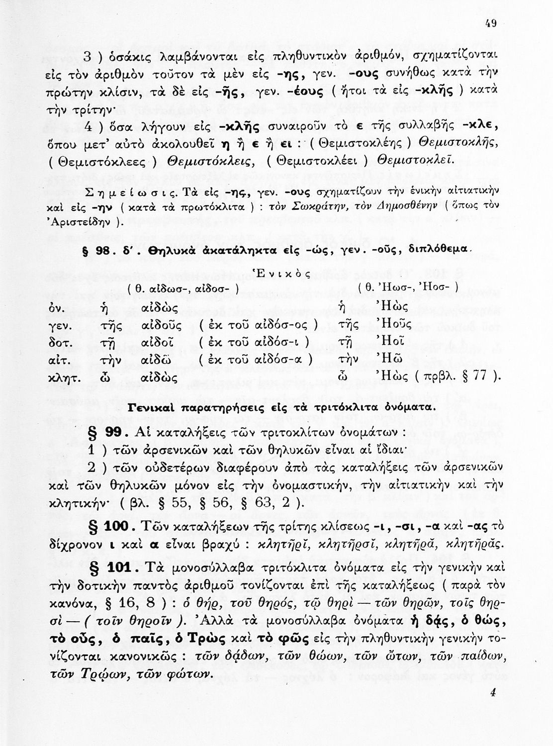 Σχολικό εγχειρίδιο Αρχαίων Ελληνικών Α', Β', Γ' και Δ' Γυμνασίου που περιέχει τους κανόνες γραμματικής και είναι χωρισμένο σε φθογγολογικό, τυπολογικό και ετυμολογικό μέρος. Περιέχει και κατάλογο ανωμάλων ρημάτων.