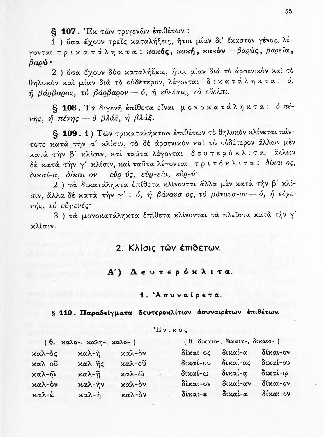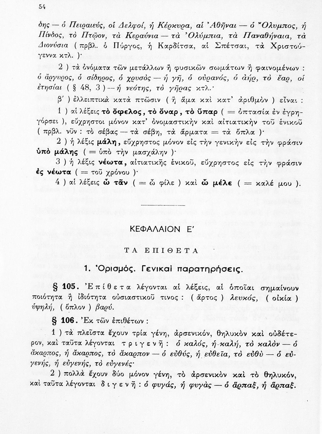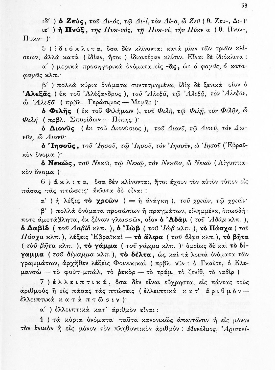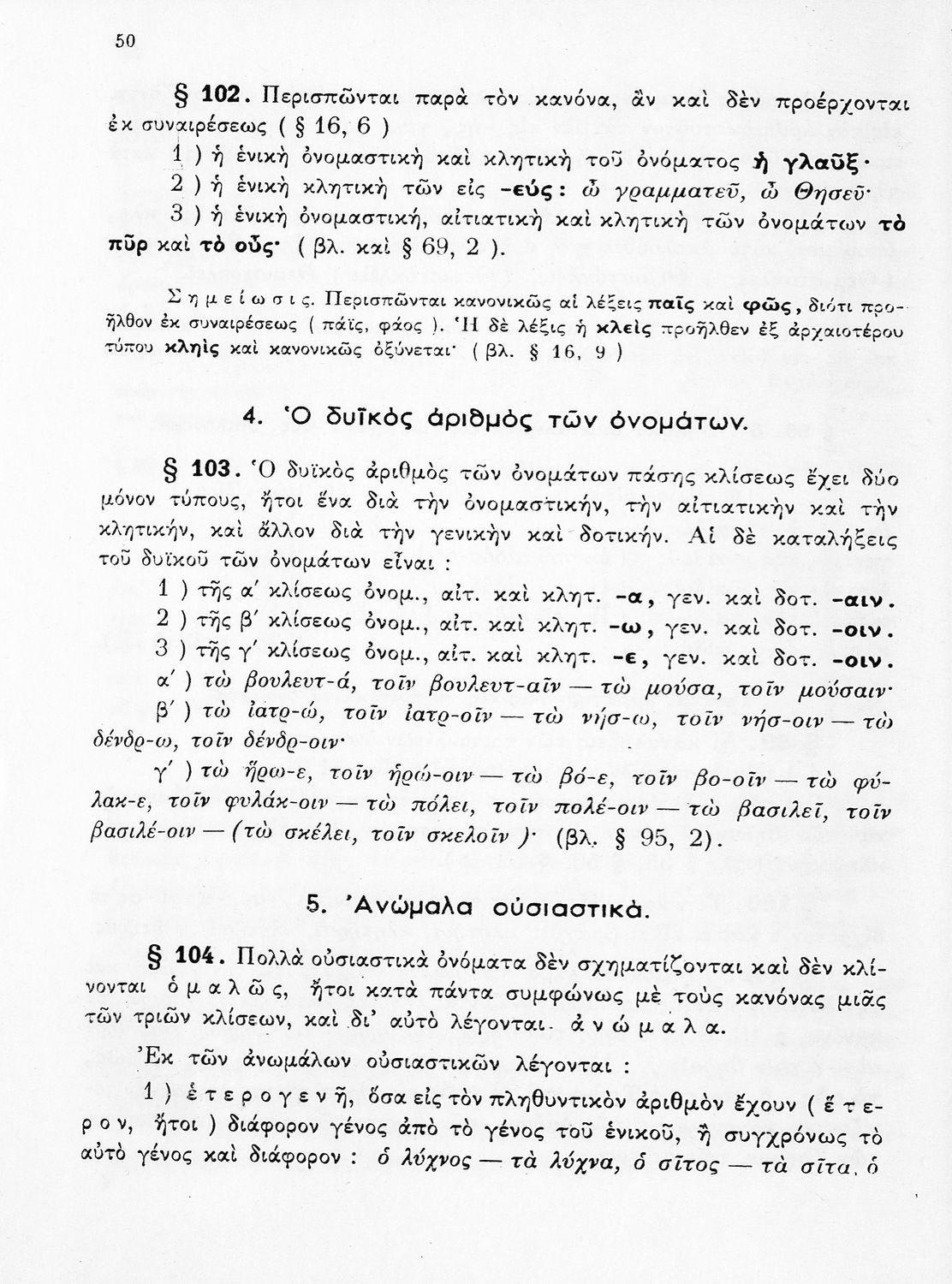 Σχολικό εγχειρίδιο Αρχαίων Ελληνικών Γυμνασίου που περιέχει τους κανόνες γραμματικής και είναι χωρισμένο σε φθογγολογικό, τυπολογικό και ετυμολογικό μέρος. Περιέχει και κατάλογο ανωμάλων ρημάτων.