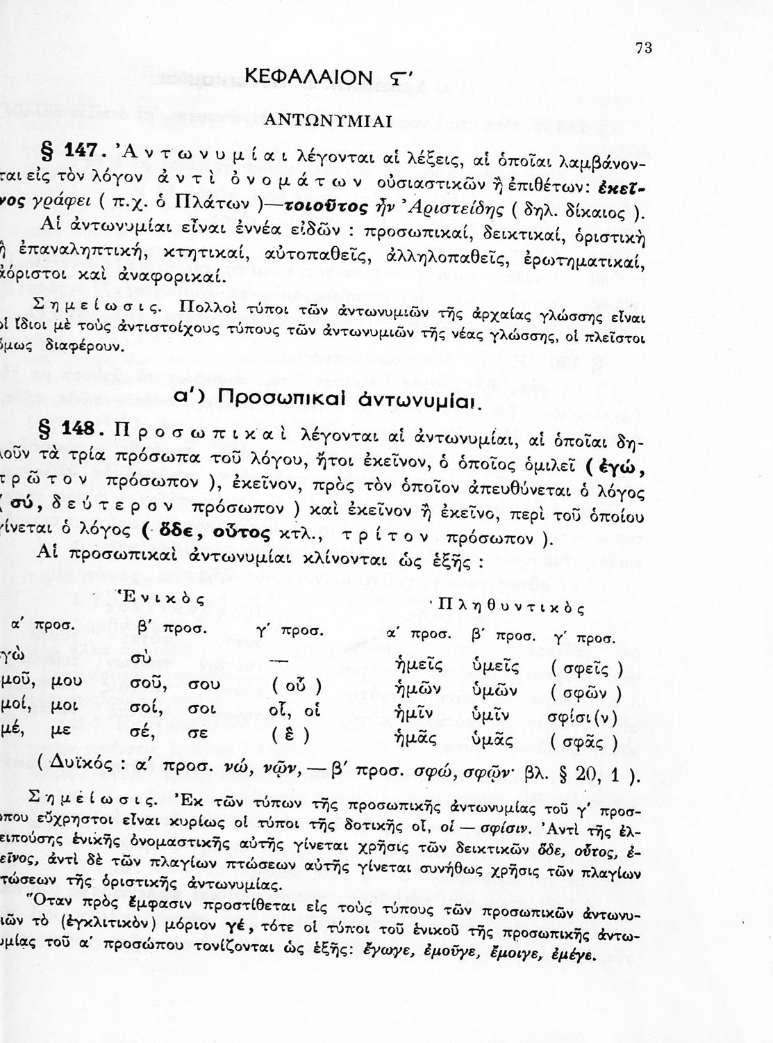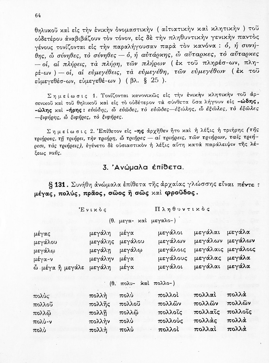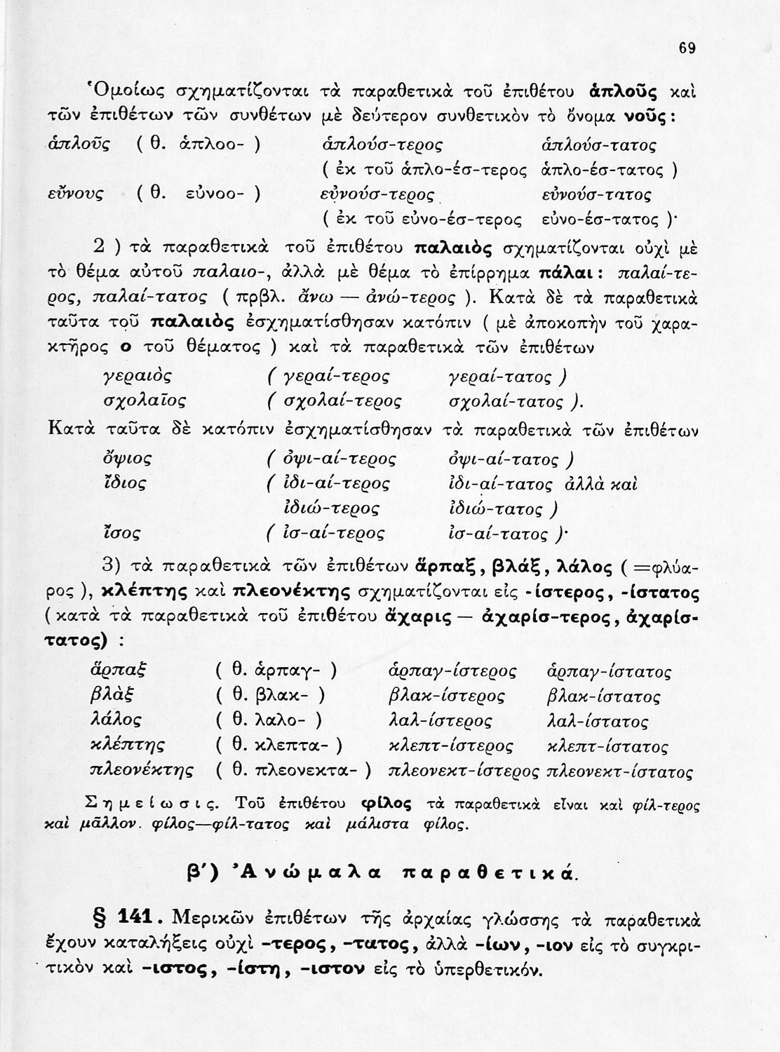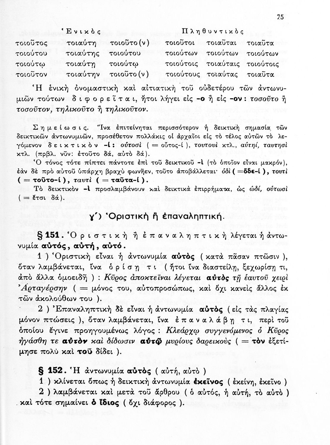 Σχολικό εγχειρίδιο Αρχαίων Ελληνικών Γυμνασίου που περιέχει τους κανόνες γραμματικής και είναι χωρισμένο σε φθογγολογικό, τυπολογικό και ετυμολογικό μέρος. Περιέχει και κατάλογο ανωμάλων ρημάτων.