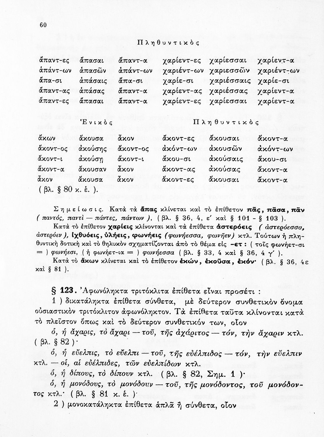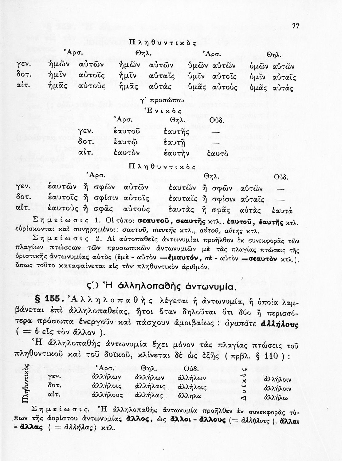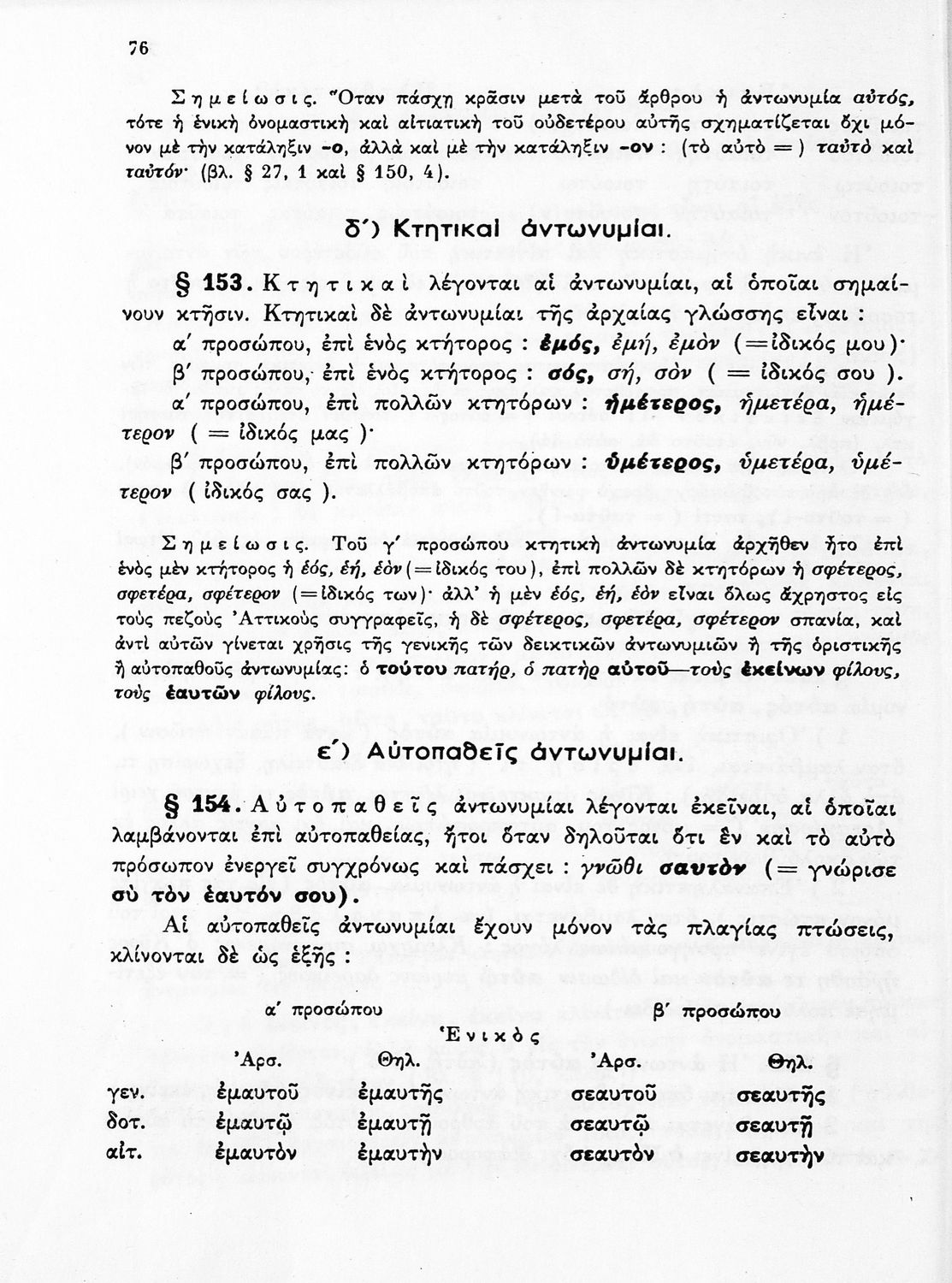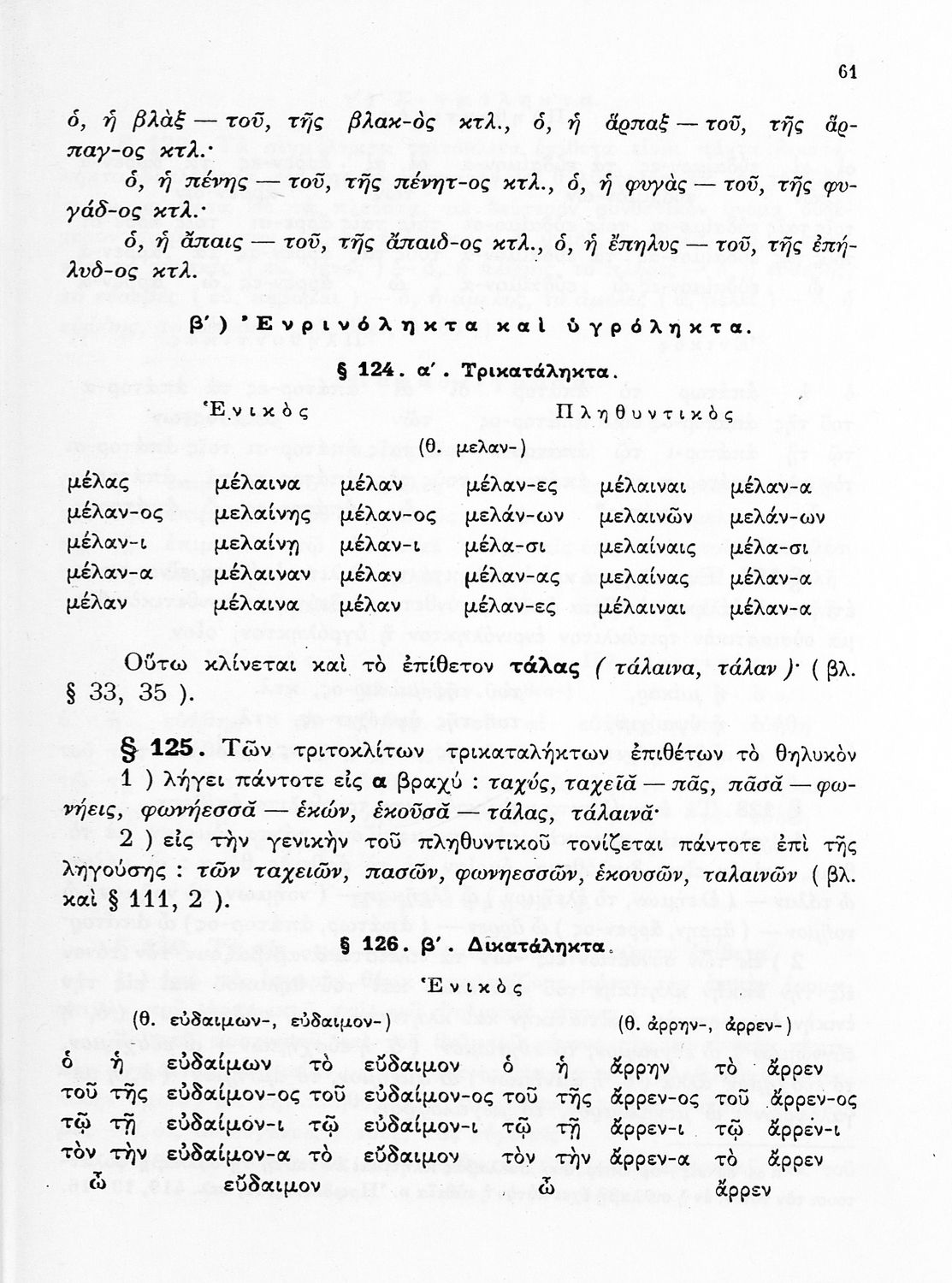 Σχολικό εγχειρίδιο Αρχαίων Ελληνικών Γυμνασίου που περιέχει τους κανόνες γραμματικής και είναι χωρισμένο σε φθογγολογικό, τυπολογικό και ετυμολογικό μέρος. Περιέχει και κατάλογο ανωμάλων ρημάτων.