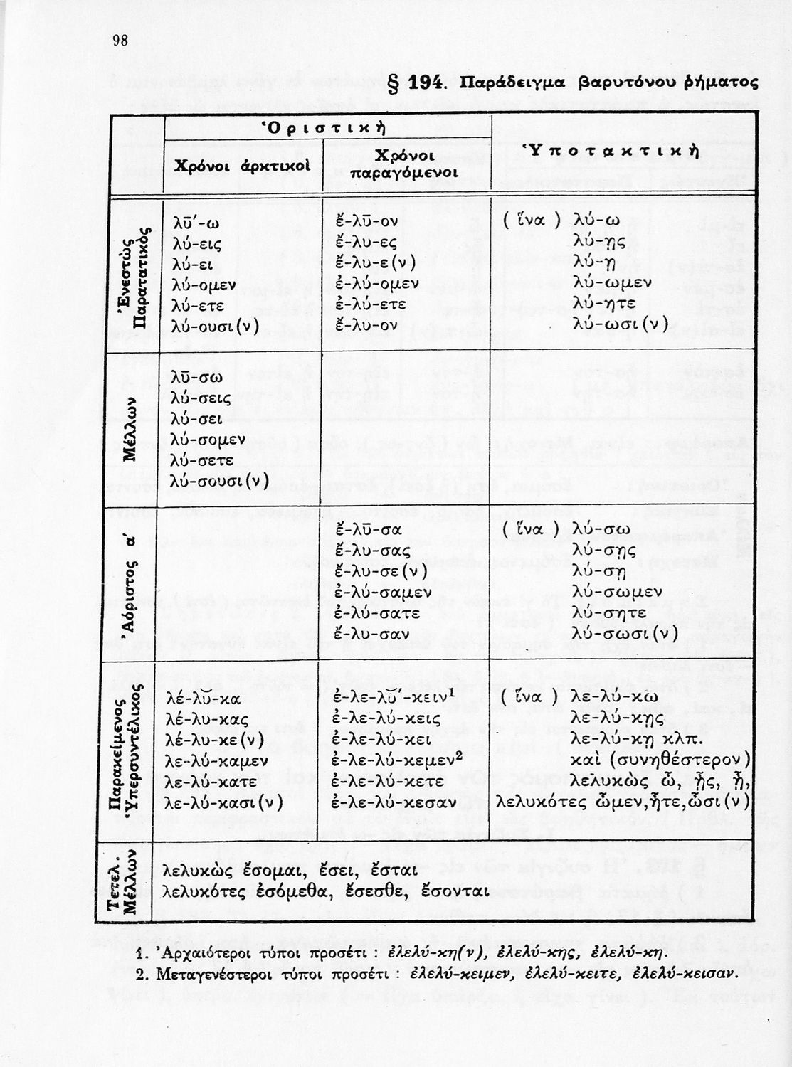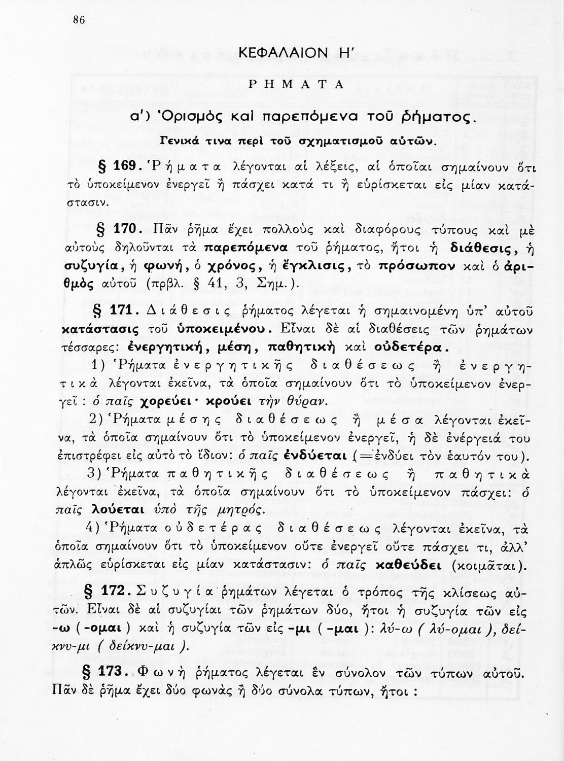 Σχολικό εγχειρίδιο Αρχαίων Ελληνικών Α', Β', Γ' και Δ' Γυμνασίου που περιέχει τους κανόνες γραμματικής και είναι χωρισμένο σε φθογγολογικό, τυπολογικό και ετυμολογικό μέρος. Περιέχει και κατάλογο ανωμάλων ρημάτων.