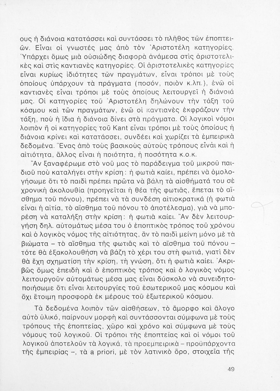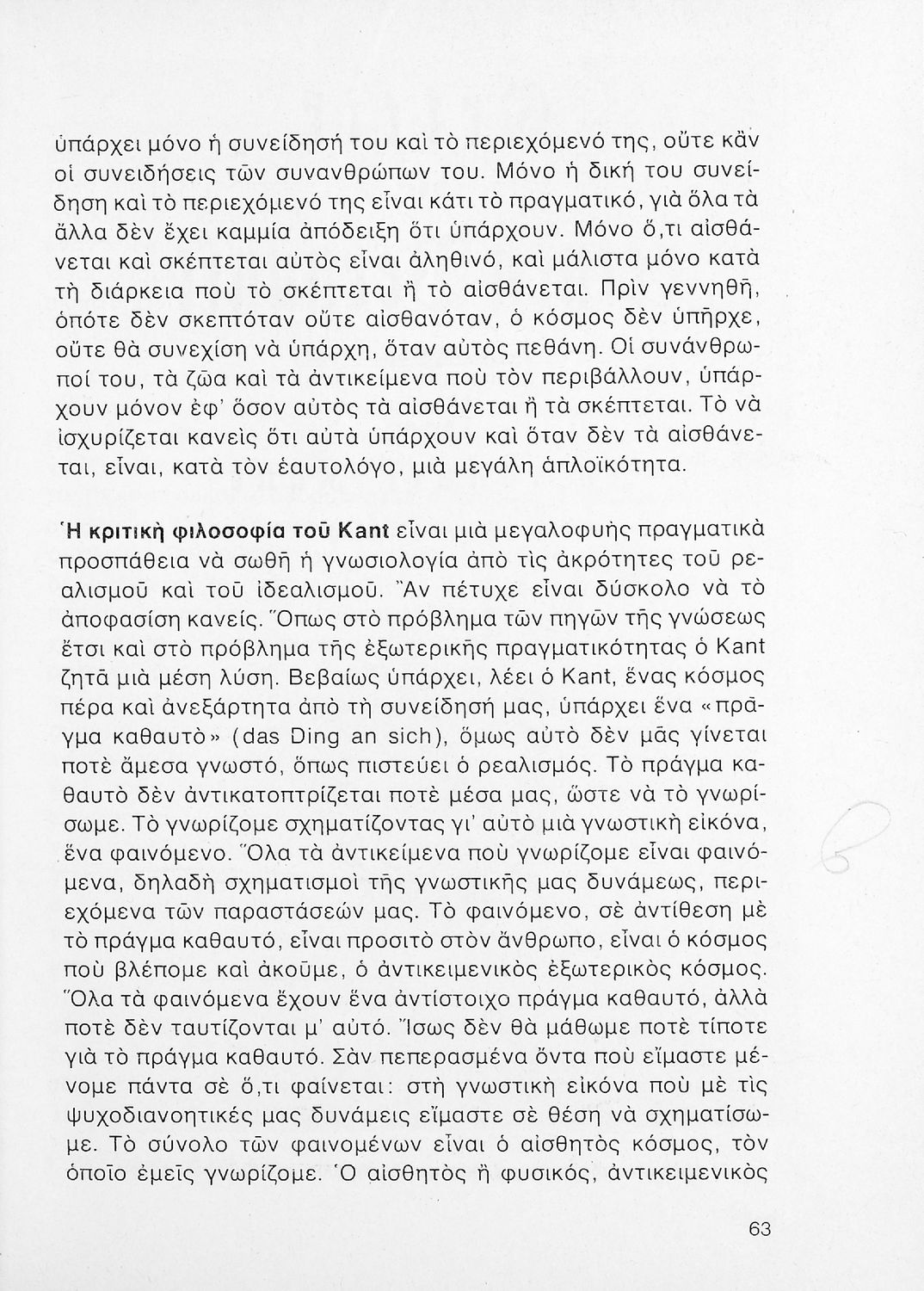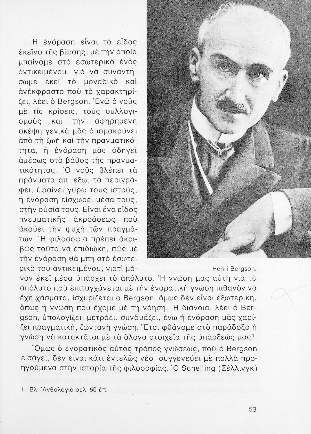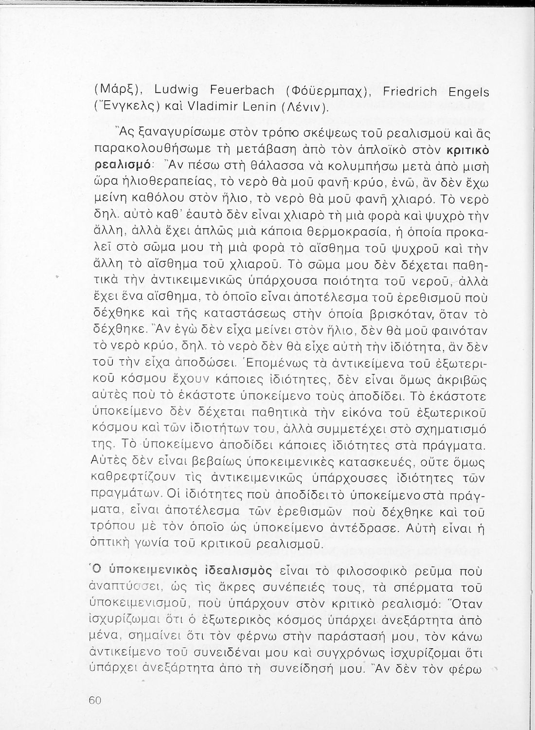 Σχολικό εγχειρίδιο Φιλοσοφίας ΣΤ΄ Γυμνασίου που ακολουθεί μια ιστορική πραγμάτευση επιστημολογικών, ηθικών και αισθητικών ζητημάτων και καλύπτει δύο περιόδους: α) την ελληνική αρχαιότητα και β) την σύγχρονη ευρωπαϊκή σκέψη από τον Descartes και τον Kant στον λογικό θετικισμό και τον νεοκαντιανισμό. Περιέχει εκτενές κεφάλαιο για τους προσωκρατικούς.