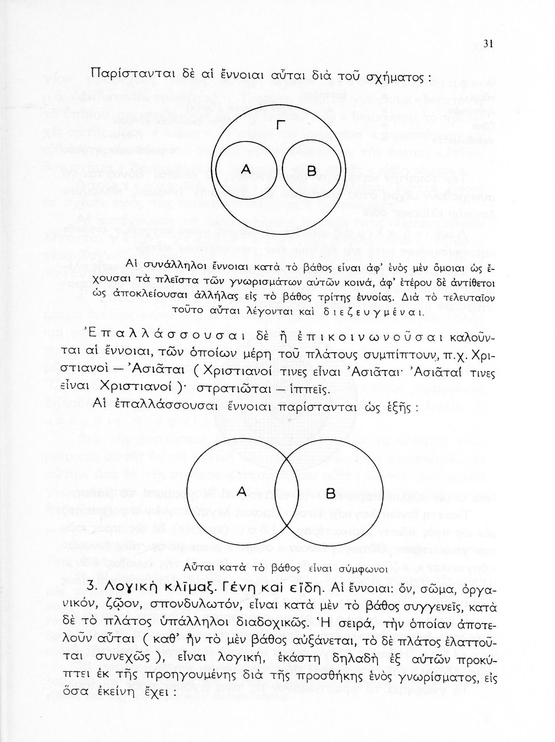 Σχολικό εγχειρίδιο Λογικής που χωρίζεται σε τρία τμήματα: την τυπική λογική, την μεθοδολογία και τη γνωσιολογία. Περιέχει ασκήσεις λογικής.