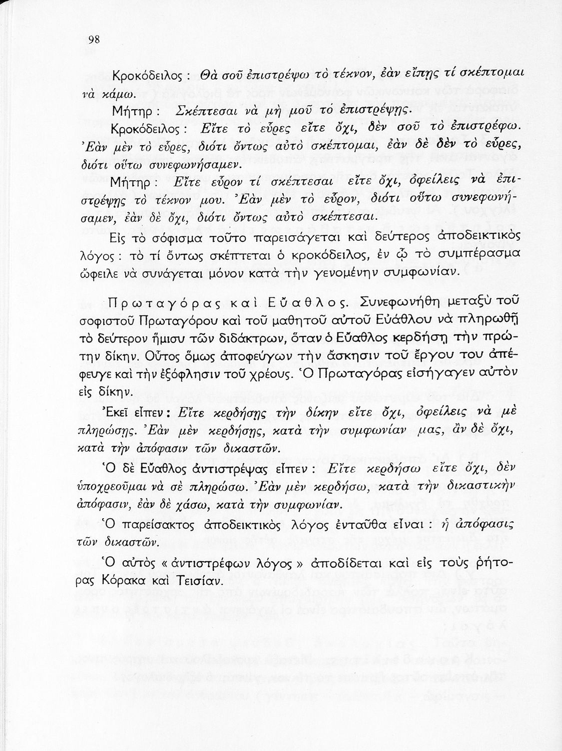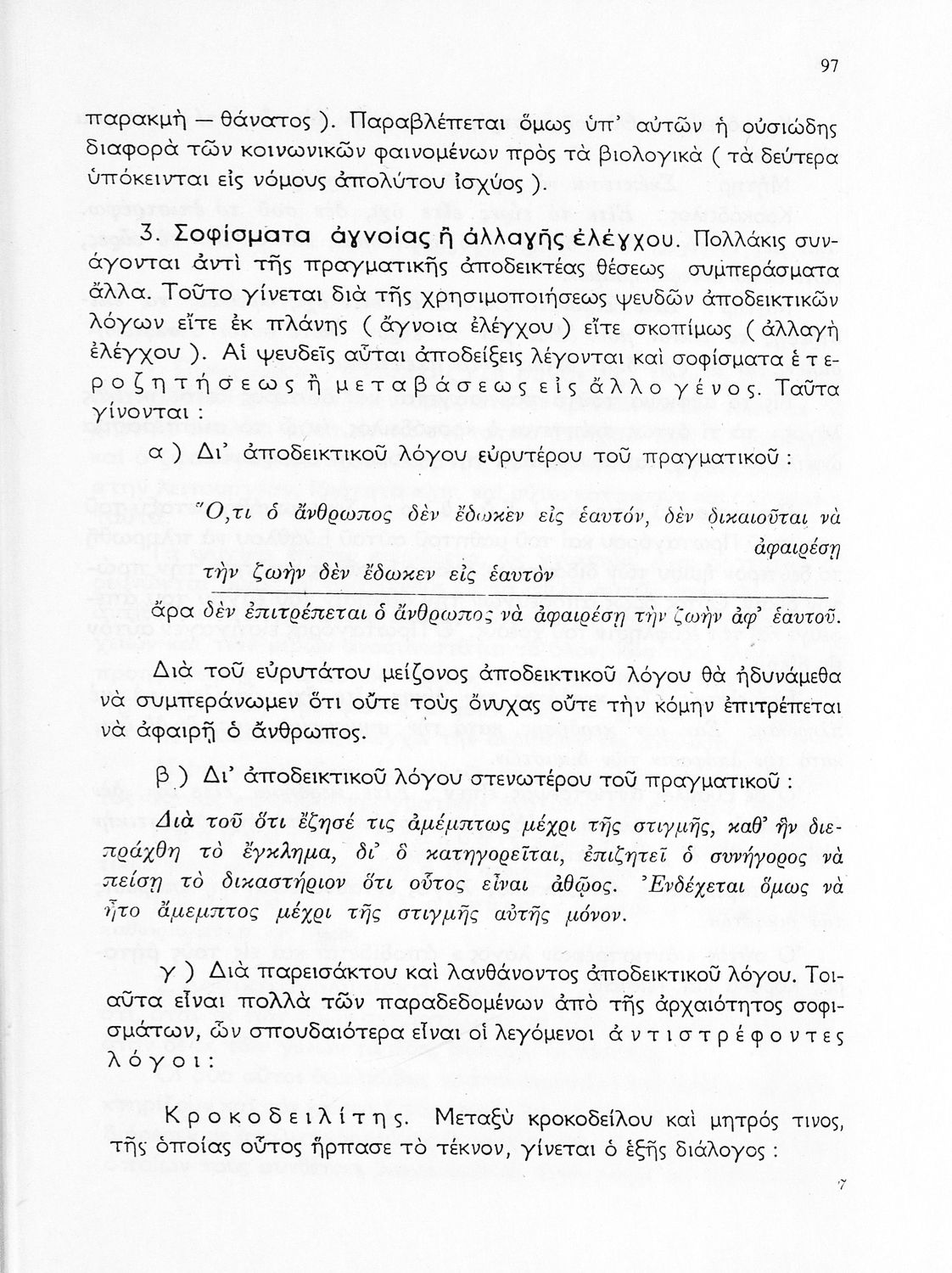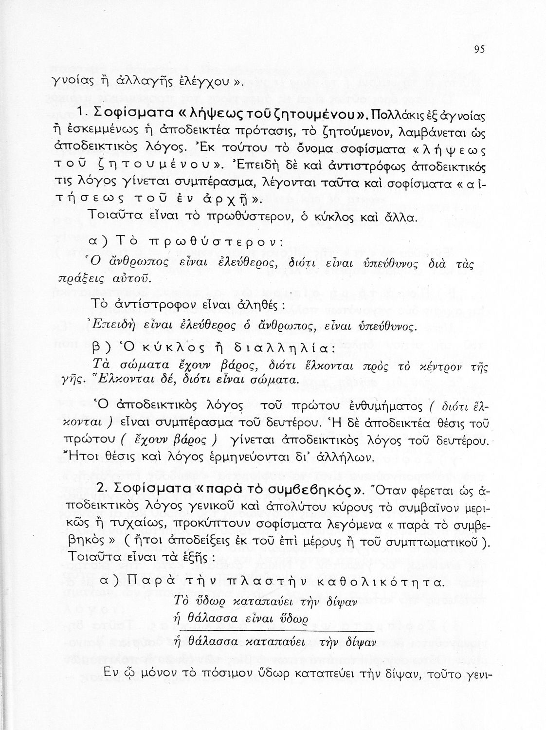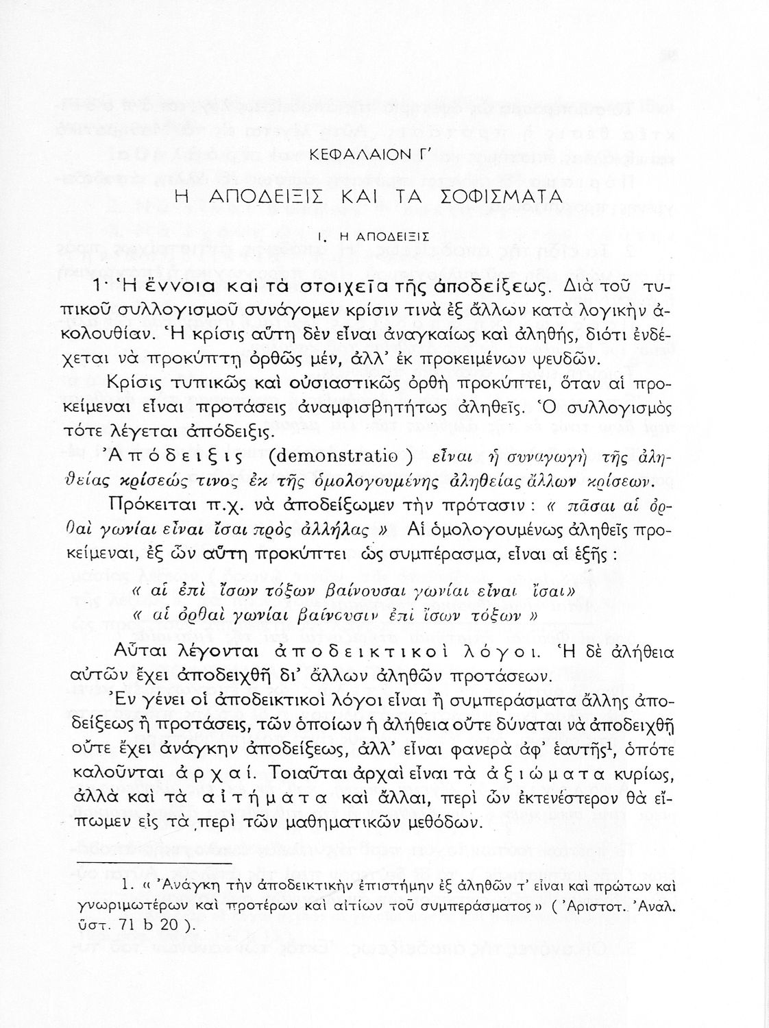 Σχολικό εγχειρίδιο Λογικής που χωρίζεται σε τρία τμήματα: την τυπική λογική, την μεθοδολογία και τη γνωσιολογία. Περιέχει ασκήσεις λογικής.