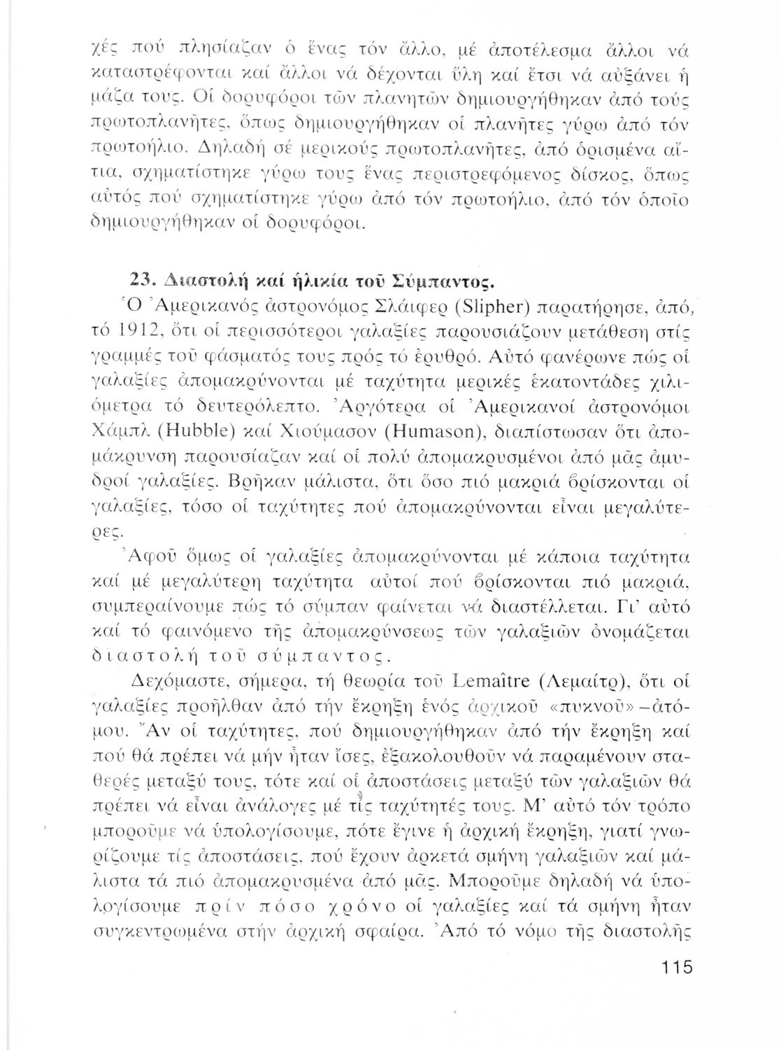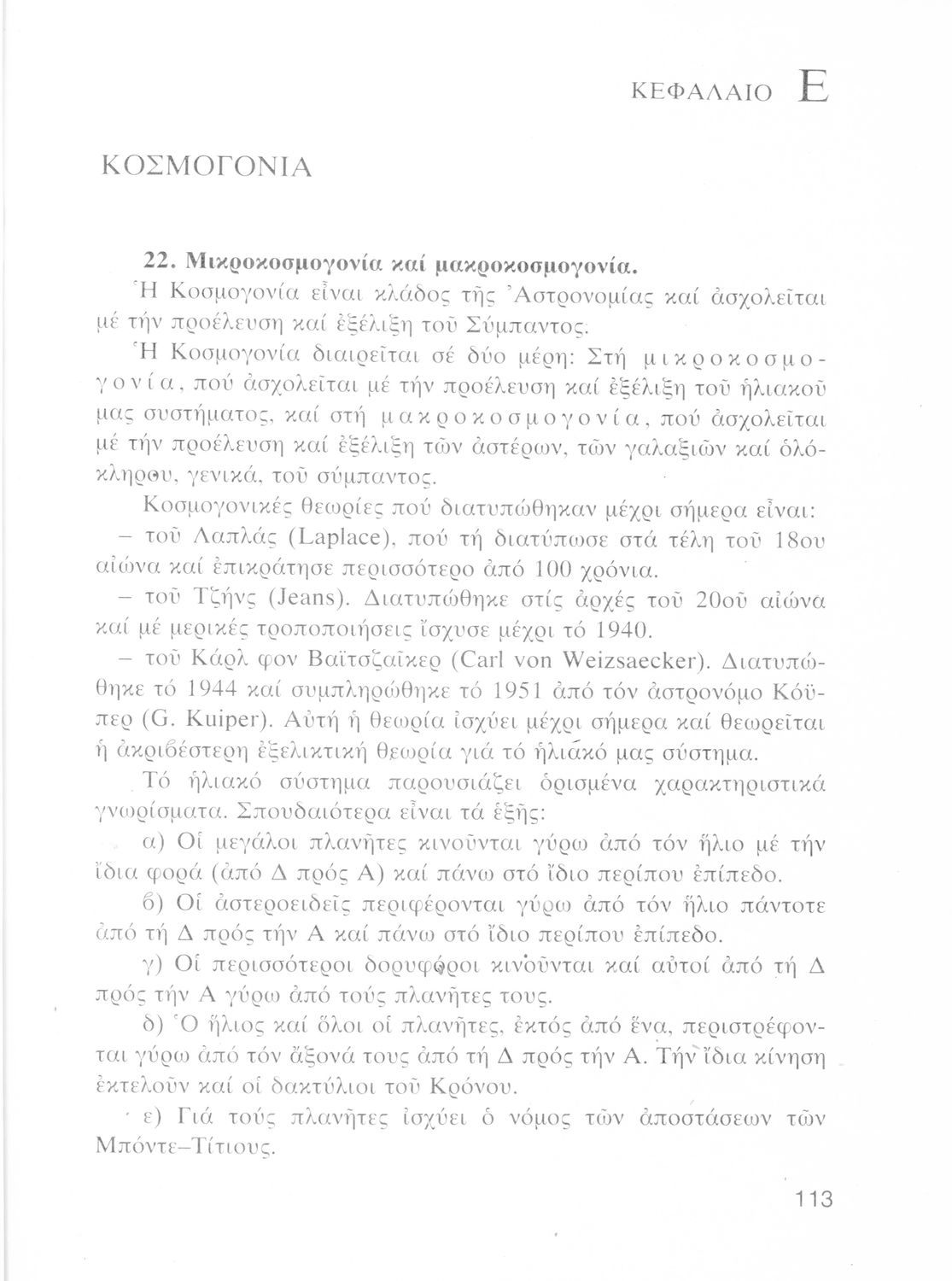 Σχολικό εγχειρίδιο Κοσμογραφίας Γ΄ Λυκείου που πραγματεύεται τη μορφή, σύσταση, μέγεθος και κίνηση των γαλαξιών και των πλανητών. Περιέχει στοιχεία αστροναυτικής και πίνακα με 88 αστερισμούς, τα διεθνή ονόματα και τα σύμβολά τους.