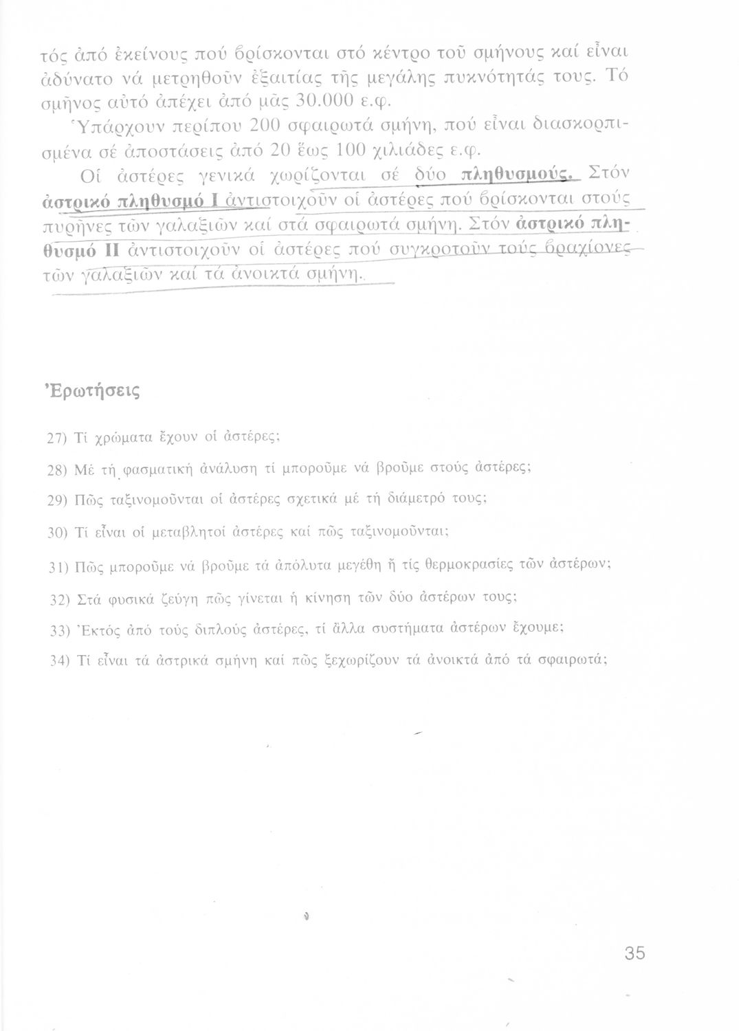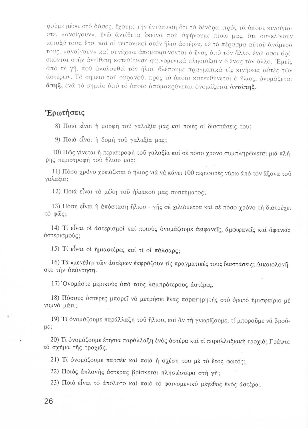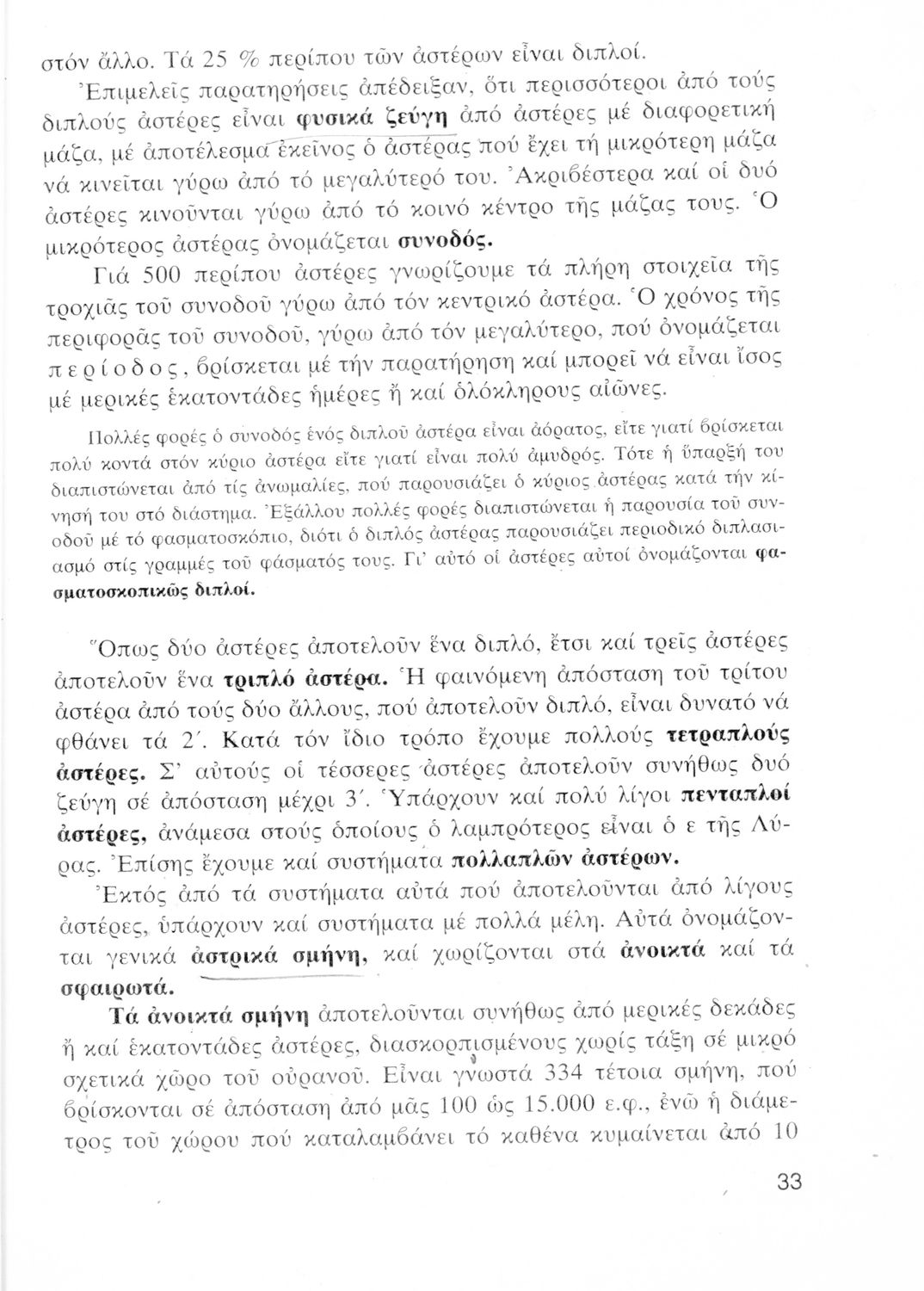 Σχολικό εγχειρίδιο Κοσμογραφίας Γ΄ Λυκείου που πραγματεύεται τη μορφή, σύσταση, μέγεθος και κίνηση των γαλαξιών και των πλανητών. Περιέχει στοιχεία αστροναυτικής και πίνακα με 88 αστερισμούς, τα διεθνή ονόματα και τα σύμβολά τους.
