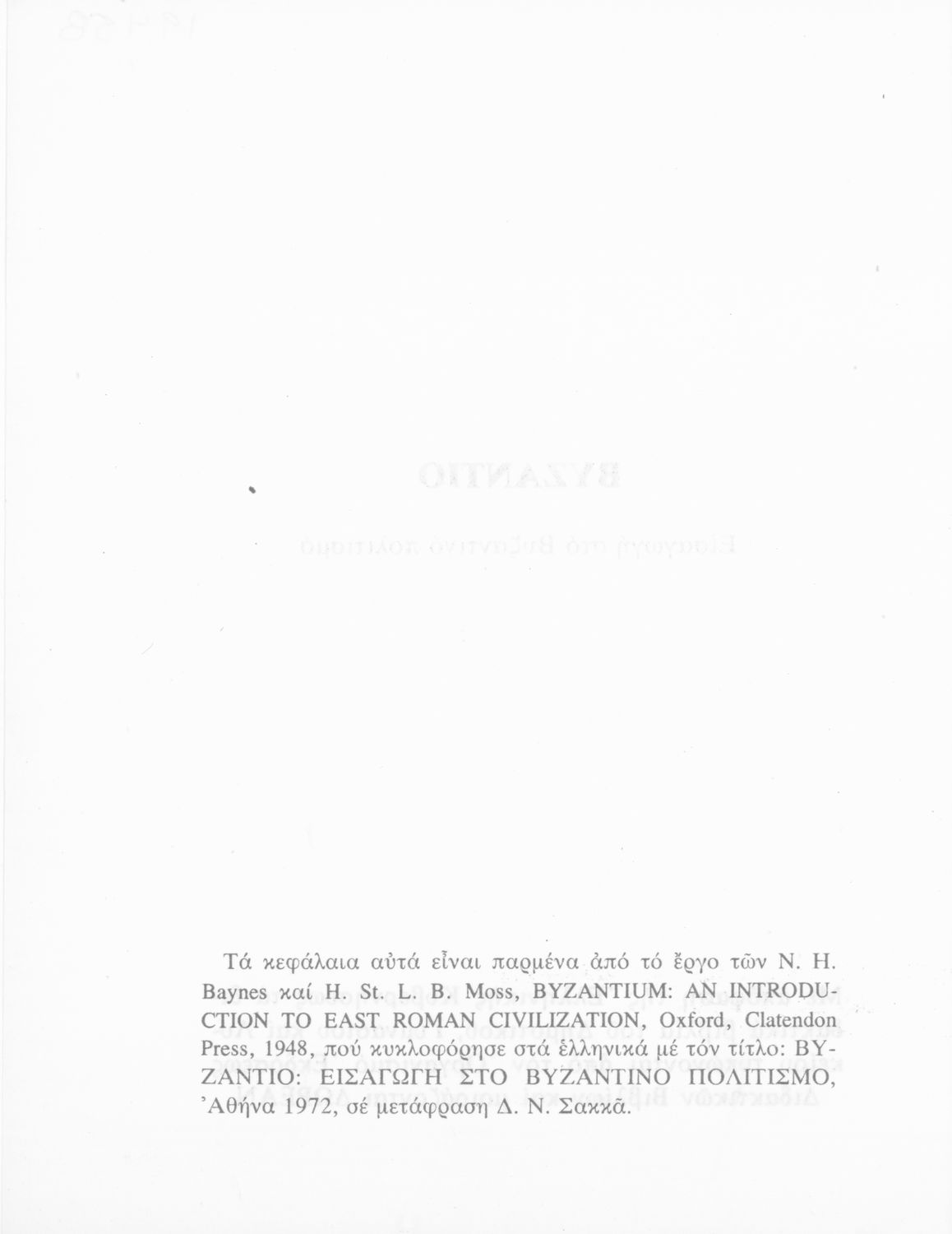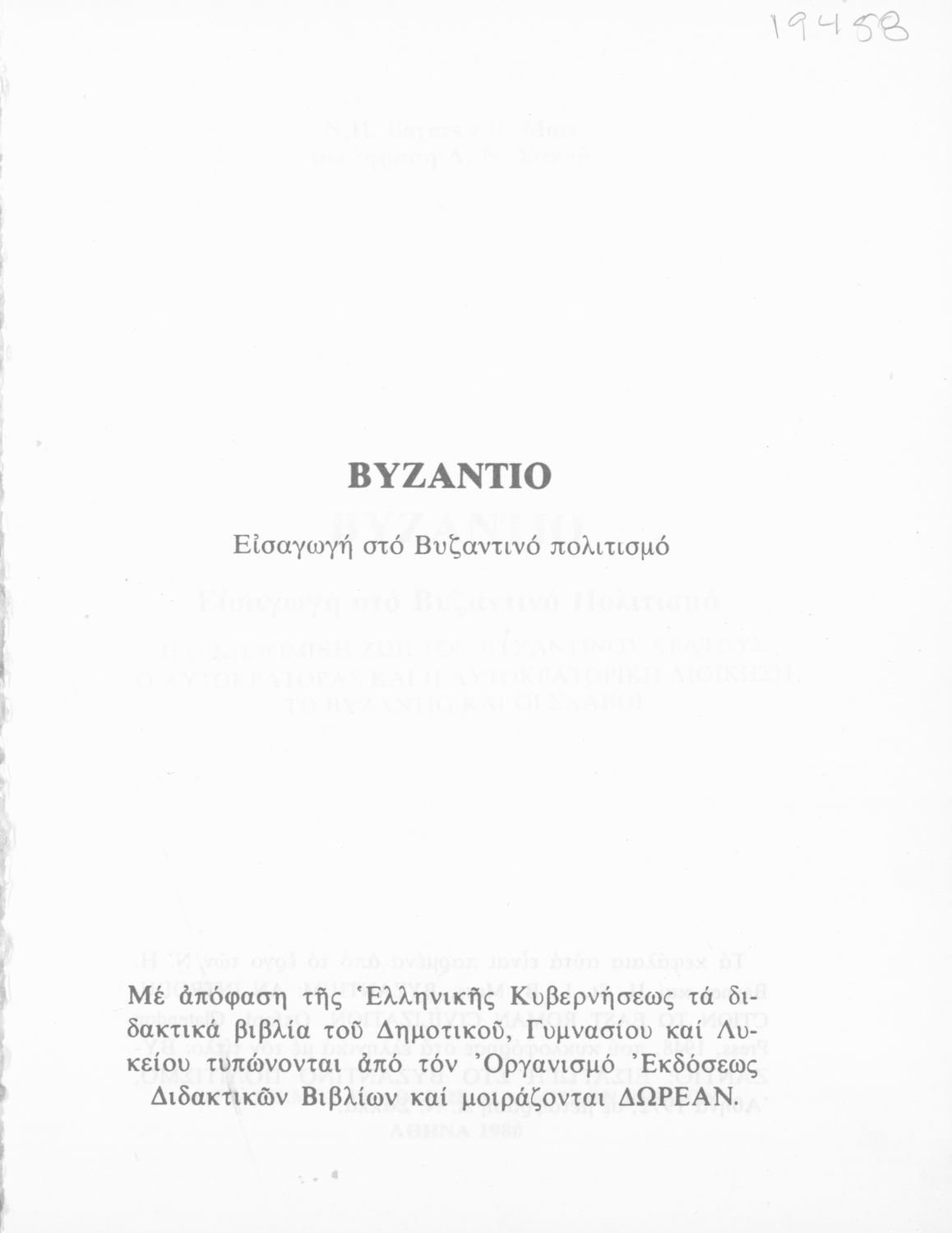LDR 01193 2200217 4500 035 ## _a01-19458 040 ## _aΙνστιτούτο Εκπαιδευτικής Πολιτικής 041 ## _ael 100 ## _aN. H Baynes _aH. Moss _aΔ. Ν. Σακκάς (μετάφραση) 110 ## _a19458 245 0# _aΒυζάντιο εισαγωγή στο Βυζαντινό πολιτισμό 250 ## _a1η Έκδοση 260 ## _aΑθήνα _bΟργανισμός Εκδόσεως Διδακτικών Βιβλίων _c1980 300 ## _a125 520 ## _aΣχολικό εγχειρίδιο Ιστορίας Β΄ Λυκείου που εστιάζει στην περίοδο της Βυζαντινής Αυτοκρατορίας και πραγματεύεται τη διοίκηση, τη θρησκεία, το στρατό, την οικονομική ζωή, την εκπαίδευση και την πνευματική κίνηση. 521 ## _aΒ' Λυκείου 522 ## _aΕλλάδα 546 ## _aΔημοτική 563 ## _aΜαλακό Εξώφυλλο 583 ## _a3316/5-12-1979 _c1979 650 #4 _aΔιοίκηση _aΕμπόριο _aΘρησκεία _aΠαλαιολόγοι