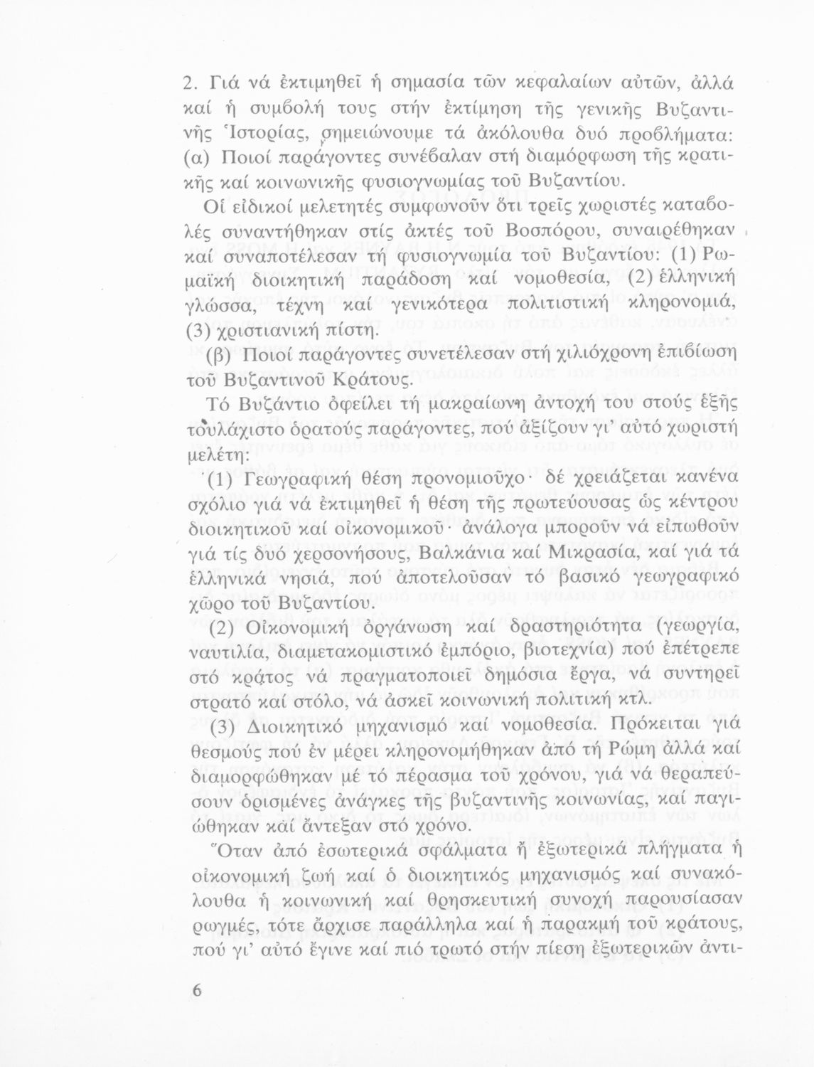 Σχολικό εγχειρίδιο Ιστορίας Β΄ Λυκείου που εστιάζει στην περίοδο της Βυζαντινής Αυτοκρατορίας και πραγματεύεται τη διοίκηση, τη θρησκεία, το στρατό, την οικονομική ζωή, την εκπαίδευση και την πνευματική κίνηση.