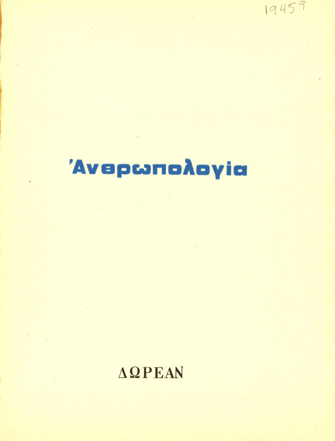 Κωδικός αναγνώρισης: 01-19459 Τίτλος: Ανθρωπολογία δια την Πέμπτη Τάξιν των Γυμνασίων Συγγραφέας: Νικόλαος Ασπιώτης Μέγεθος και υπόστρωμα: Σχολικό εγχειρίδιο, μαλακό εξώφυλλο, 226 σελίδες. Σκίτσα (ασπρόμαυρα και έγχρωμα). |