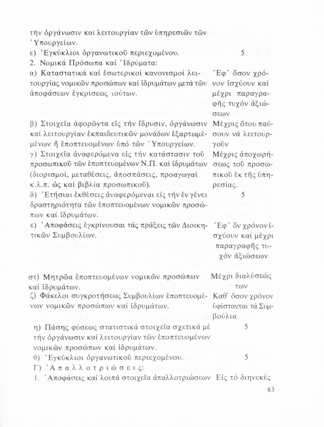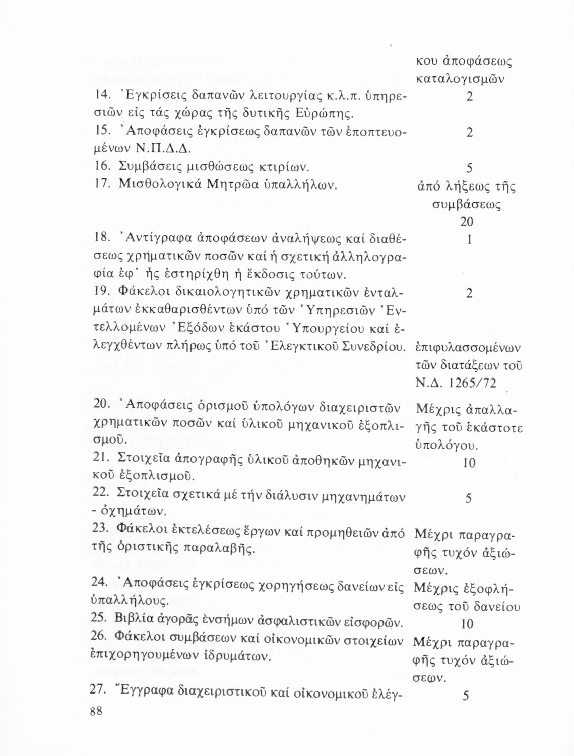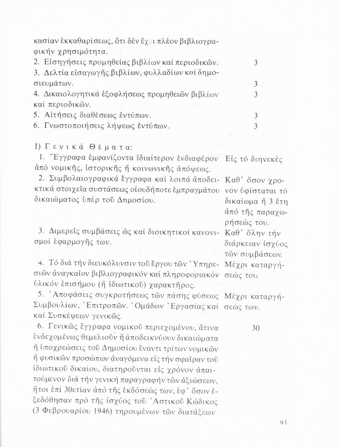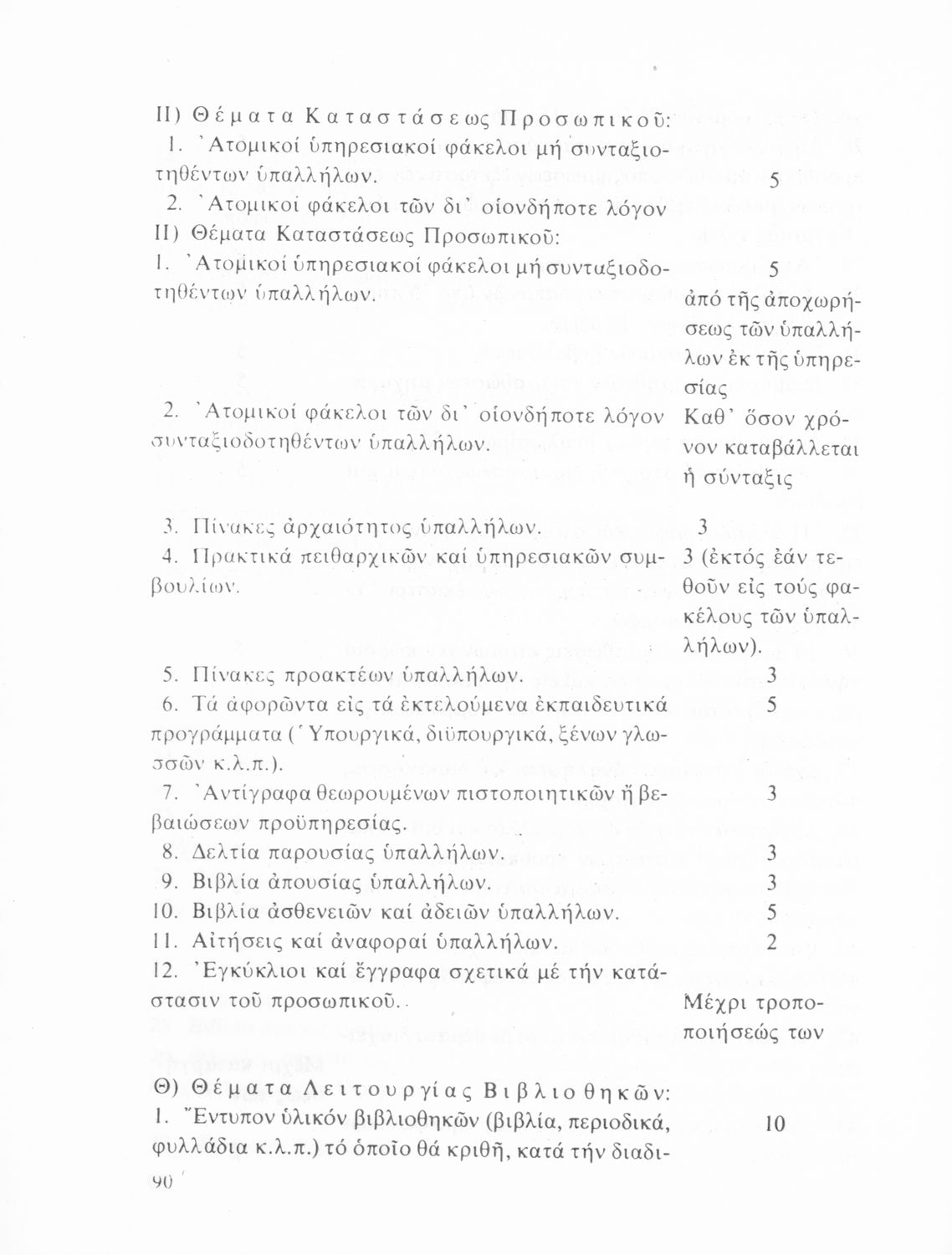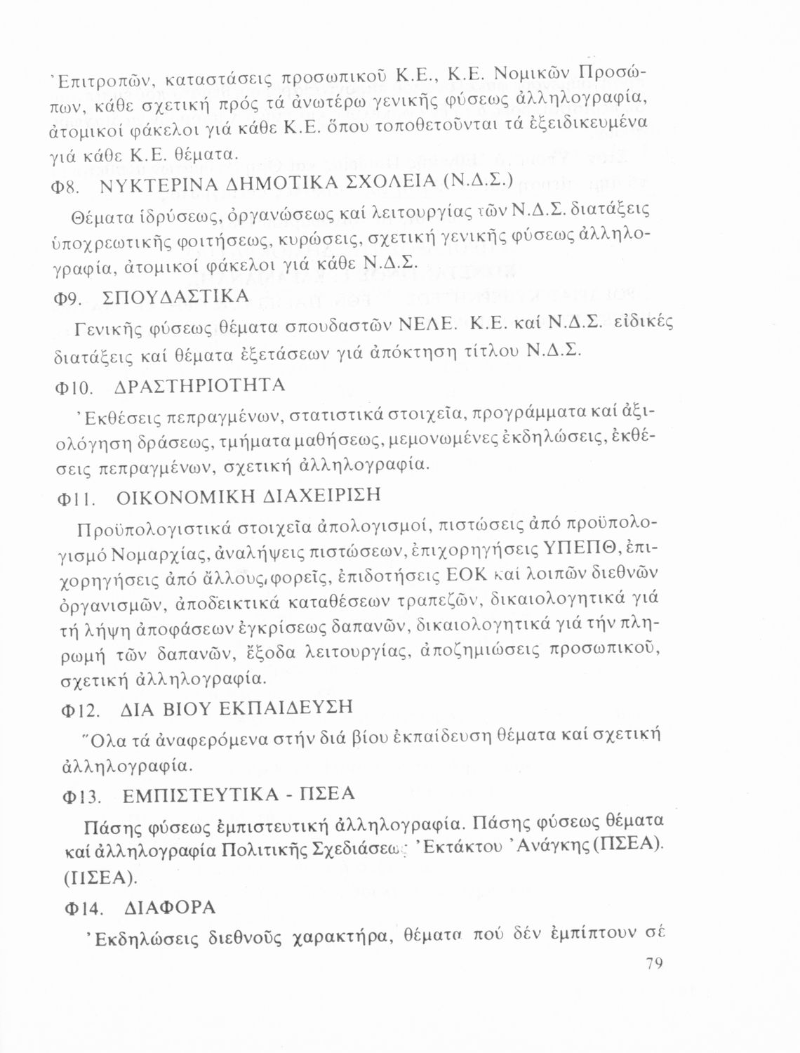 Έκδοση του Υπουργείου Εθνικής Παιδείας και Θρησκευμάτων που περιλαμβάνει διατάξεις και οδηγίες για τους βιβλιοθηκονόμους για την ταξινόμηση και αρχειοθέτηση των εγγράφων του ΥΠΕΠΘ.