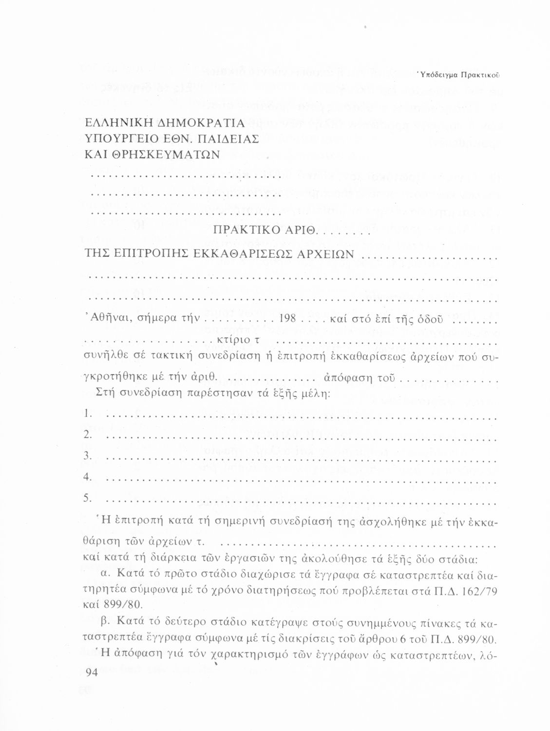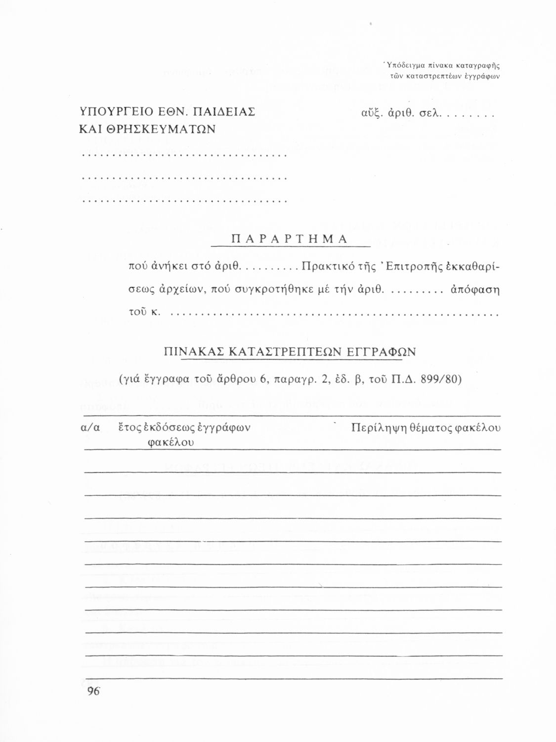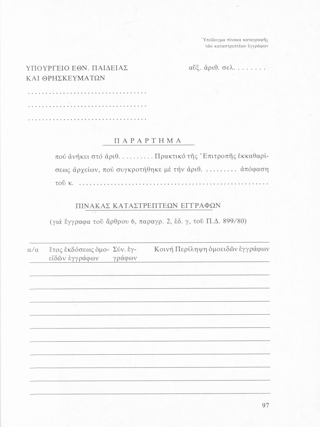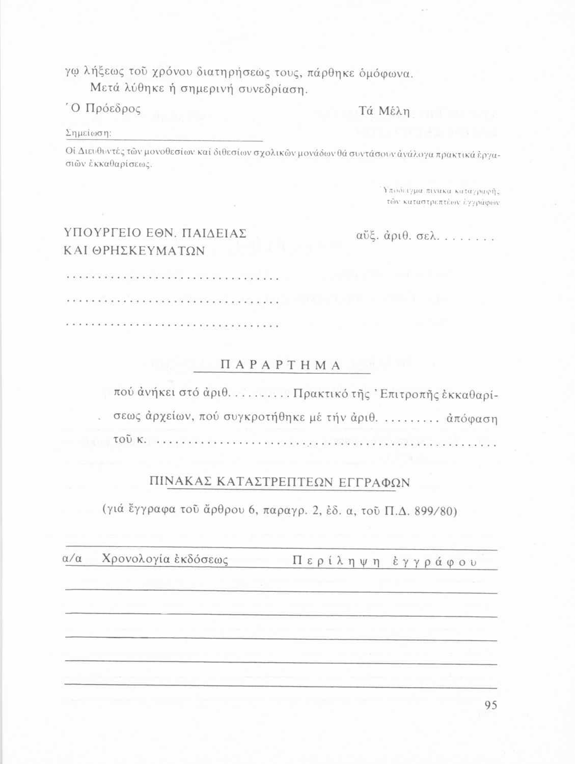 Τίτλος: Διατάξεις και οδηγίες για την εκκαθάριση και αρχειοθέτηση των εγγράφων του ΥΠΕΠΘ