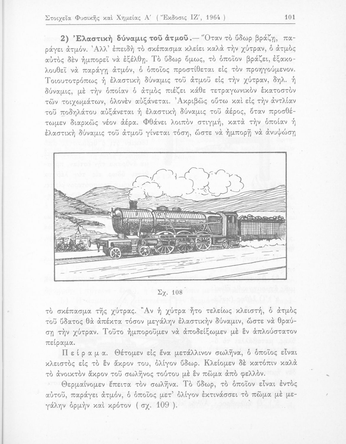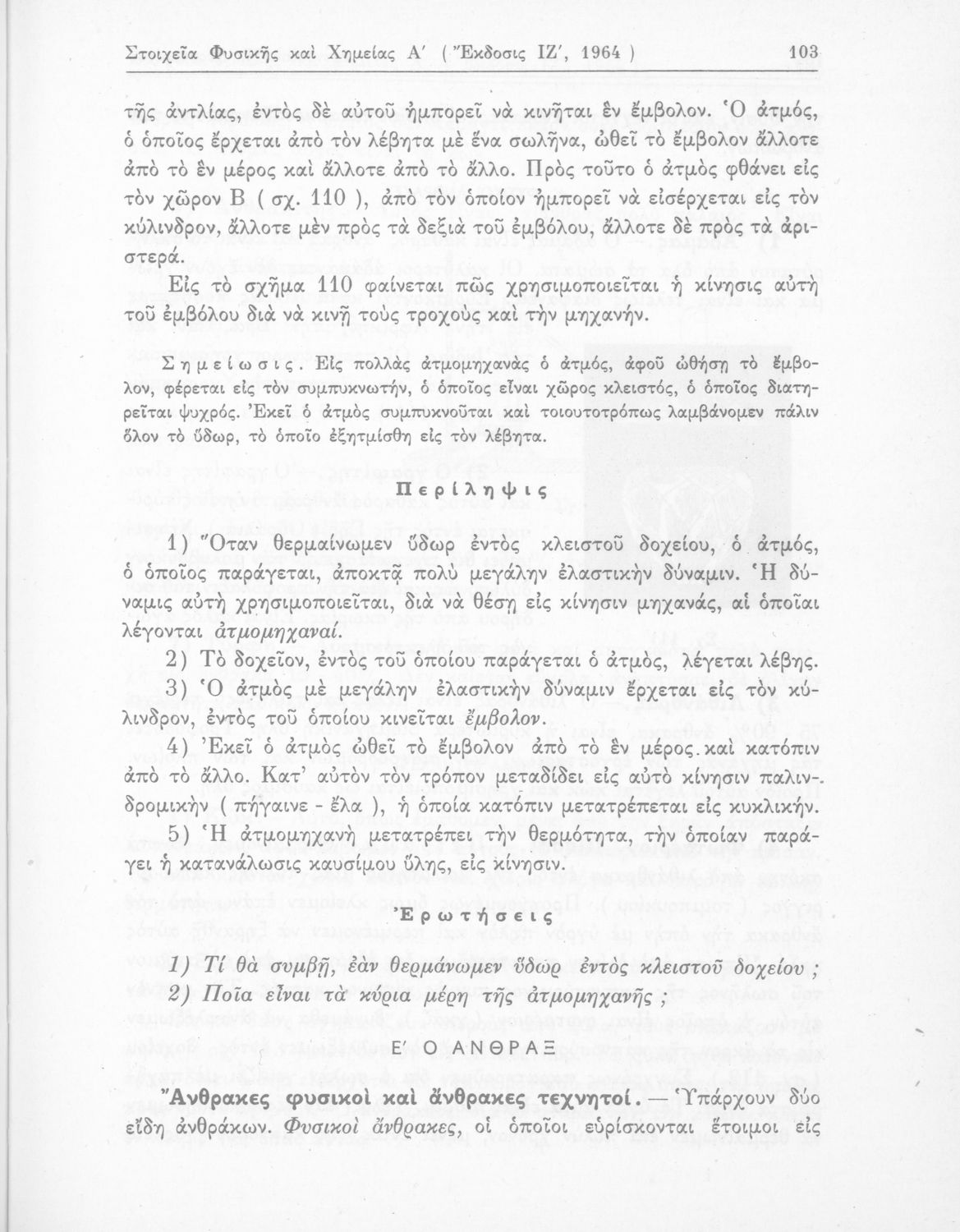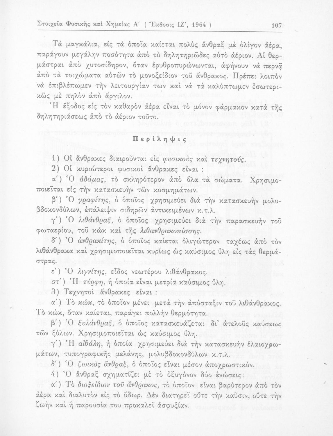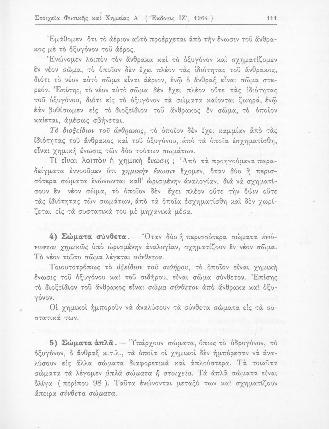 Σχολικό εγχειρίδιο Φυσικής και Χημείας που προσδιορίζει τη μηχανική στερεών σωμάτων, αναφέρει τις ιδιότητες ποικίλων στοιχείων της φύσης (οξυγόνο, υδρογόνο, αέρα, νερό) περιγράφοντας τις χημικές ενώσεις που προκαλούν.