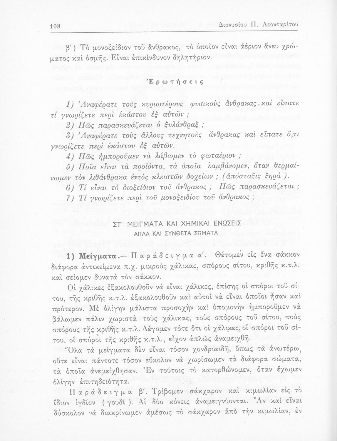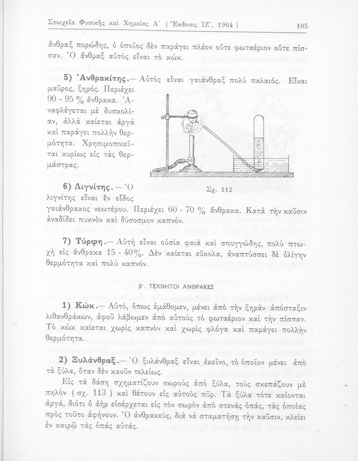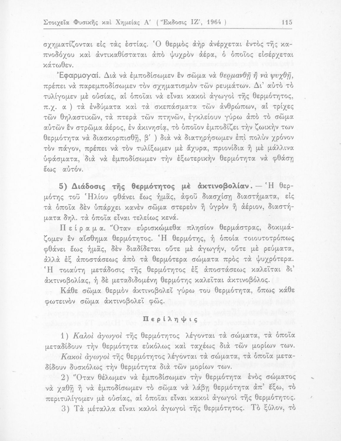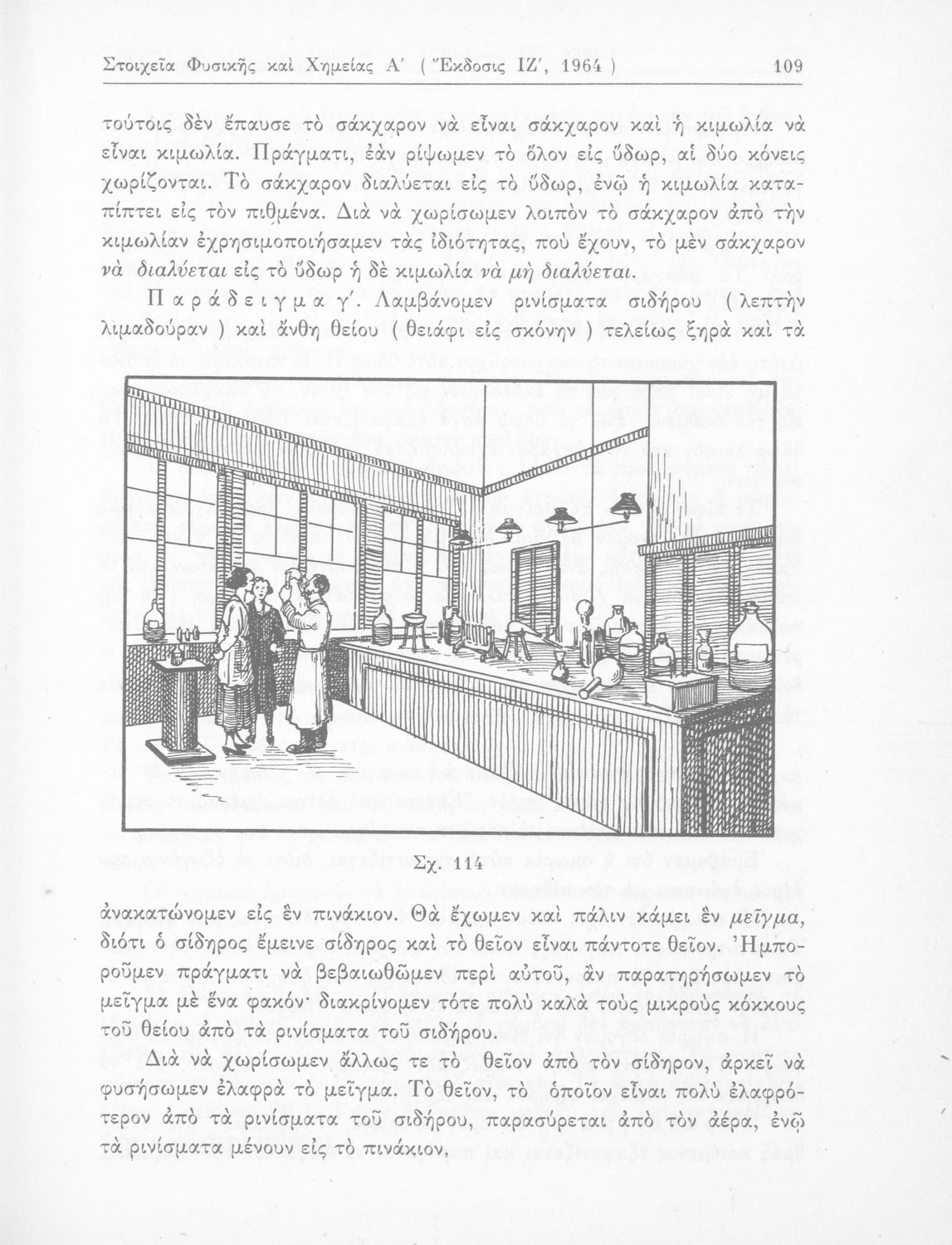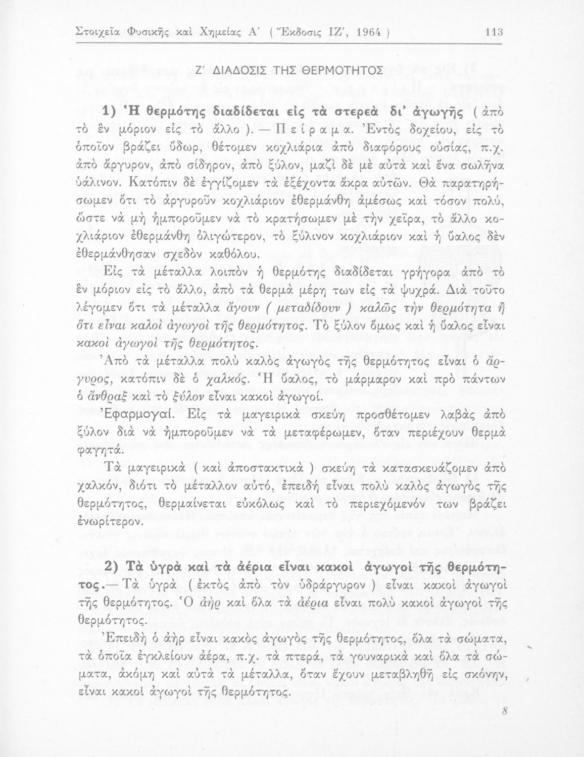 Σχολικό εγχειρίδιο Φυσικής και Χημείας που προσδιορίζει τη μηχανική στερεών σωμάτων, αναφέρει τις ιδιότητες ποικίλων στοιχείων της φύσης (οξυγόνο, υδρογόνο, αέρα, νερό) περιγράφοντας τις χημικές ενώσεις που προκαλούν.