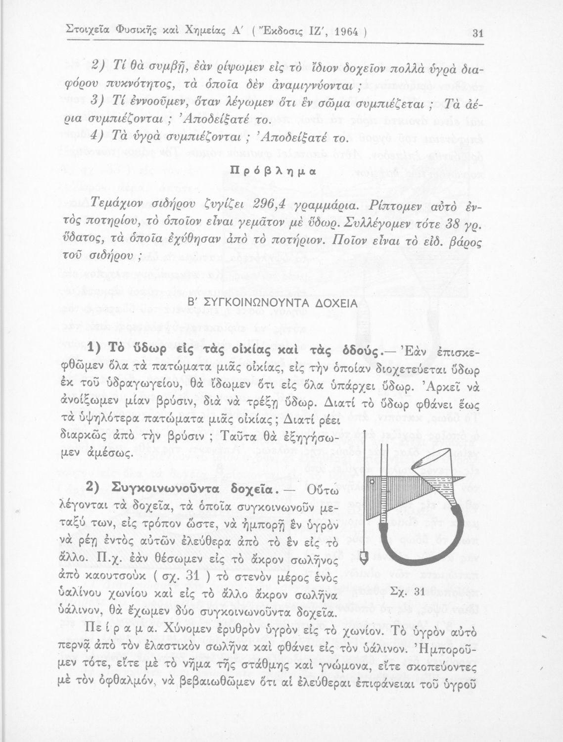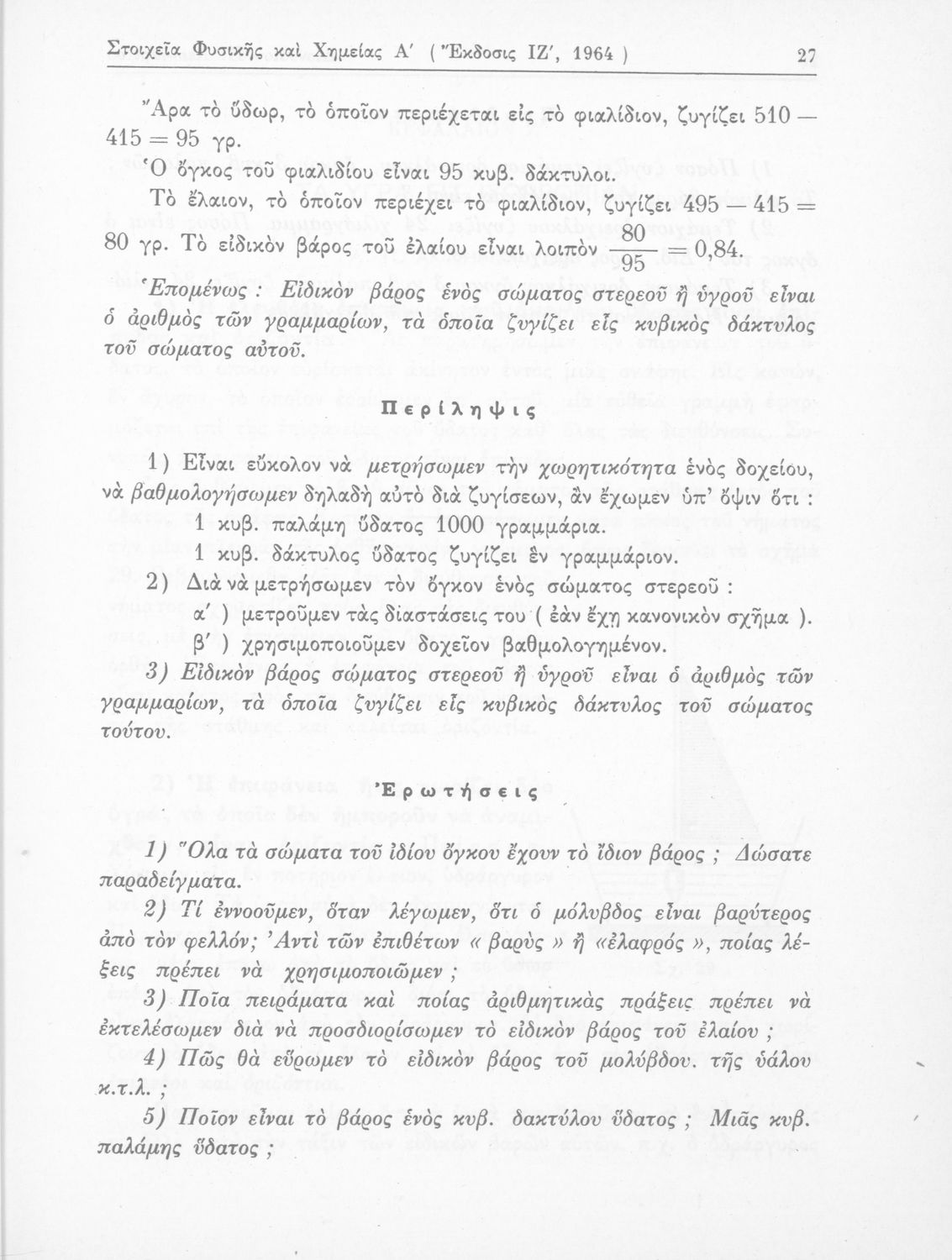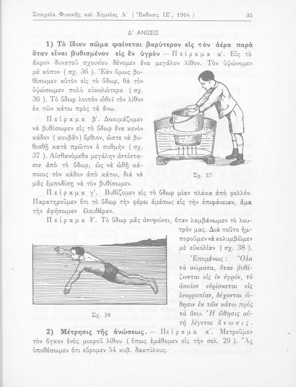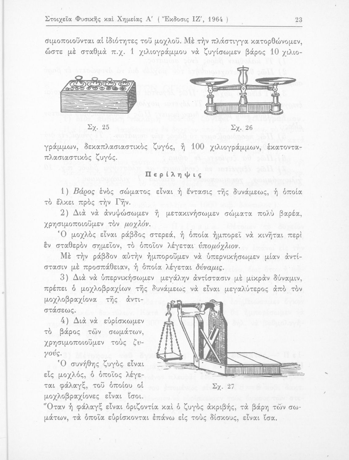 Παρουσίαση περιεχομένου: Σχολικό εγχειρίδιο Φυσικής και Χημείας που προσδιορίζει τη μηχανική στερεών σωμάτων, αναφέρει τις ιδιότητες ποικίλων στοιχείων της φύσης (οξυγόνο, υδρογόνο, αέρα, νερό) περιγράφοντας τις χημικές ενώσεις που προκαλούν.